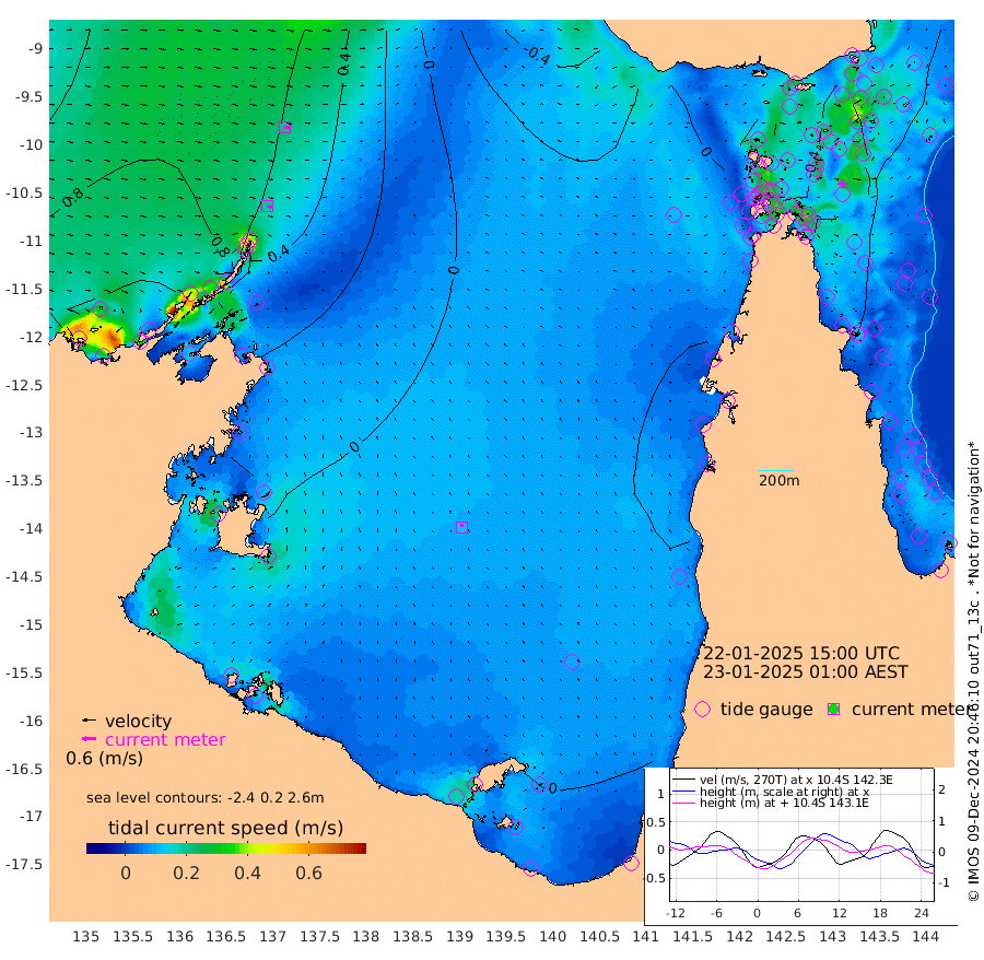 20cm/s 113T +3cm/s rms + 7cm/s -42T. ARA-GOC87 57m 13cm/s -11T +3cm/s rms + 2cm/s -2T. ARA-GOC87 60m 22cm/s 101T +2cm/s rms + 3cm/s 61T. ARA-GOC87 47m -46cm Daru -50cm Bobo Island -42cm Meer Island Barge -50cm Bramble Cay -53cm Unnamed Cay -46cm Pearce Cay -51cm Stephens Island -56cm Merrie England Shoals -55cm Mutacomal Reef -52cm Darnley Island Barge -50cm East Cay -50cm Yorke Island Barge -50cm Rennel Island -52cm Aureed Island -40cm Dungeness Reef -33cm Zagai Island -36cm Yam Island -8cm Dauan Island -26cm Saibai Island -7cm Phipi Reef -34cm Warrior Reef - West -12cm Mabuiag Island Barge -47cm Half Way Island -47cm Coconut Island -50cm Dugong Islet -37cm Poll Island -43cm Kirkcaldie Reef -37cm Suarji Island -42cm Sue Islet 0cm Hawkesbury Island -30cm Alert Patches -33cm Twin Island 4cm Badu Island -24cm St Pauls (Moa Island) -4cm Kubin (Moa Island) -21cm Ince Point -16cm Thursday Island -17cm Nardana Patches -12cm Turtle Head -3cm Round Island -4cm Goods Island -2cm Booby Island -7cm White Rocks Area -29cm Carpentaria -25cm Papou Point -11cm Bampfield Head 4cm Crab Island -9cm Red Wallis Island -11cm Packe Island -53cm Harrington Reef -10cm Herald Camp -9cm Sharp Point -15cm Red Island Point -16cm Possession Island -39cm Alpha Rock -40cm Frederick Point -47cm Wyborn Reef Light -45cm Tetley Island -41cm Triangle Reef -33cm Turtle Head Island -47cm Maclennan Cay -37cm Raine Island -50cm Mcsweeny Reef -51cm Collette Reef -42cm Shadwell Reef -55cm Hannibal Island -49cm Round Point 2cm Vrilya Point -54cm Cape Grenville -46cm Hicks Island -62cm Sir Charles Hardy Island -15cm Harvey Island -56cm Kay Reef -45cm Rocky Island -46cm Chapman Island -47cm Ham Reef -44cm Jubilee Reef -38cm Night Island -49cm Unnamed Reef No. 3 -46cm Morris Island -38cm 1st 3 Mile Opening -45cm Creech Reef -41cm Fife Island -50cm Eden Reef -48cm Stanley Island -52cm Normanby River 115cm Yabooma Island 120cm Hutchison River 109cm Elcho Island 107cm North West Crocodile Island 50cm Cape Wessel 100cm Stevens Island 32cm Guluwuru Island 88cm Hopeful Bay 76cm Auster Point 82cm Two Island Bay 108cm Cadell Strait -25cm Mallison Island 44cm Melville Bay (Gove Harbour) 45cm Truant Island 26cm Cape Arnhem 18cm Cape Grey 19cm Hawk Island 16cm Milner Bay (Groote Eylandt) 6cm Cape Beatrice -11cm West Island -11cm Centre Island -13cm Mornington Island -19cm West Wellesley Islands -10cm Bountiful Island 19cm Albert River Mouth 38cm Sweers Island 21cm Karumba -17cm Nassau River Offshore -29cm Christmas Creek -19cm Archer River -21cm Boyd Point -17cm Weipa (Humbug Point) 4cm Pennefather River -8cm Cullen Point