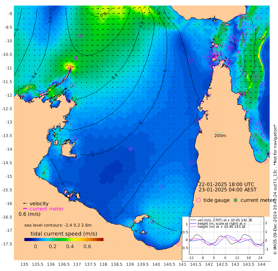 28cm/s 101T +3cm/s rms + 7cm/s -42T. ARA-GOC87 57m 4cm/s 66T +3cm/s rms + 2cm/s -2T. ARA-GOC87 60m 26cm/s 91T +2cm/s rms + 3cm/s 61T. ARA-GOC87 47m -21cm Daru -18cm Bobo Island 3cm Meer Island Barge -4cm Bramble Cay -15cm Unnamed Cay -20cm Pearce Cay -15cm Stephens Island -12cm Merrie England Shoals -27cm Mutacomal Reef -6cm Darnley Island Barge -3cm East Cay -14cm Yorke Island Barge -27cm Rennel Island -24cm Aureed Island -35cm Dungeness Reef -31cm Zagai Island -48cm Yam Island -35cm Dauan Island -26cm Saibai Island -33cm Phipi Reef -38cm Warrior Reef - West -36cm Mabuiag Island Barge -30cm Half Way Island -28cm Coconut Island -40cm Dugong Islet -42cm Poll Island -44cm Kirkcaldie Reef -55cm Suarji Island -31cm Sue Islet -49cm Hawkesbury Island -46cm Alert Patches -50cm Twin Island -37cm Badu Island -51cm St Pauls (Moa Island) -51cm Kubin (Moa Island) -50cm Ince Point -52cm Thursday Island -51cm Nardana Patches -51cm Turtle Head -43cm Round Island -49cm Goods Island -49cm Booby Island -60cm White Rocks Area -37cm Carpentaria -47cm Papou Point -38cm Bampfield Head -36cm Crab Island -57cm Red Wallis Island -57cm Packe Island -41cm Harrington Reef -59cm Herald Camp -15cm Sharp Point -47cm Red Island Point -42cm Possession Island -41cm Alpha Rock -42cm Frederick Point -21cm Wyborn Reef Light -24cm Tetley Island -4cm Triangle Reef -20cm Turtle Head Island -10cm Maclennan Cay 6cm Raine Island -13cm Mcsweeny Reef -6cm Collette Reef 5cm Shadwell Reef -5cm Hannibal Island -4cm Round Point -28cm Vrilya Point -7cm Cape Grenville -5cm Hicks Island -10cm Sir Charles Hardy Island -3cm Harvey Island 1cm Kay Reef 3cm Rocky Island 6cm Chapman Island 5cm Ham Reef 5cm Jubilee Reef 0cm Night Island 3cm Unnamed Reef No. 3 3cm Morris Island 3cm 1st 3 Mile Opening 1cm Creech Reef 6cm Fife Island 8cm Eden Reef 3cm Stanley Island -2cm Normanby River 44cm Yabooma Island 62cm Hutchison River 54cm Elcho Island 43cm North West Crocodile Island 54cm Cape Wessel 68cm Stevens Island 78cm Guluwuru Island 64cm Hopeful Bay 59cm Auster Point 56cm Two Island Bay 83cm Cadell Strait 188cm Mallison Island 70cm Melville Bay (Gove Harbour) 74cm Truant Island 53cm Cape Arnhem 35cm Cape Grey 27cm Hawk Island 5cm Milner Bay (Groote Eylandt) -8cm Cape Beatrice -34cm West Island -33cm Centre Island -31cm Mornington Island -40cm West Wellesley Islands -40cm Bountiful Island -36cm Albert River Mouth -11cm Sweers Island -36cm Karumba -39cm Nassau River Offshore -36cm Christmas Creek -20cm Archer River -22cm Boyd Point -27cm Weipa (Humbug Point) -7cm Pennefather River -33cm Cullen Point