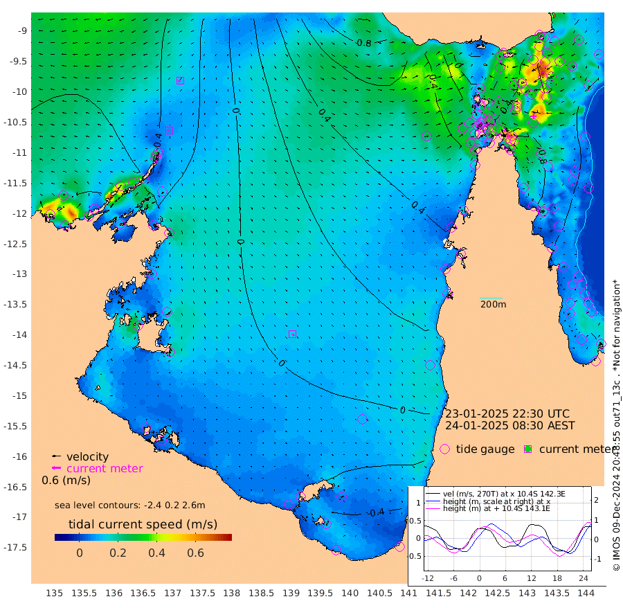 7cm/s -118T +3cm/s rms + 7cm/s -42T. ARA-GOC87 57m 15cm/s 151T +3cm/s rms + 2cm/s -2T. ARA-GOC87 60m 12cm/s -116T +2cm/s rms + 3cm/s 61T. ARA-GOC87 47m 69cm Daru 76cm Bobo Island 59cm Meer Island Barge 73cm Bramble Cay 80cm Unnamed Cay 81cm Pearce Cay 76cm Stephens Island 86cm Merrie England Shoals 82cm Mutacomal Reef 74cm Darnley Island Barge 68cm East Cay 73cm Yorke Island Barge 77cm Rennel Island 78cm Aureed Island 67cm Dungeness Reef 44cm Zagai Island 42cm Yam Island 5cm Dauan Island 18cm Saibai Island 19cm Phipi Reef 38cm Warrior Reef - West 30cm Mabuiag Island Barge 73cm Half Way Island 78cm Coconut Island 75cm Dugong Islet 62cm Poll Island 64cm Kirkcaldie Reef 65cm Suarji Island 62cm Sue Islet 53cm Hawkesbury Island 70cm Alert Patches 65cm Twin Island 40cm Badu Island 52cm St Pauls (Moa Island) 42cm Kubin (Moa Island) 54cm Ince Point 53cm Thursday Island 52cm Nardana Patches 52cm Turtle Head 50cm Round Island 53cm Goods Island 56cm Booby Island 59cm White Rocks Area 71cm Carpentaria 48cm Papou Point 78cm Bampfield Head 39cm Crab Island 55cm Red Wallis Island 53cm Packe Island 87cm Harrington Reef 49cm Herald Camp 11cm Sharp Point 49cm Red Island Point 61cm Possession Island 63cm Alpha Rock 73cm Frederick Point 81cm Wyborn Reef Light 78cm Tetley Island 60cm Triangle Reef 84cm Turtle Head Island 62cm Maclennan Cay 51cm Raine Island 77cm Mcsweeny Reef 76cm Collette Reef 61cm Shadwell Reef 83cm Hannibal Island 79cm Round Point 44cm Vrilya Point 77cm Cape Grenville 64cm Hicks Island 70cm Sir Charles Hardy Island 21cm Harvey Island 76cm Kay Reef 60cm Rocky Island 64cm Chapman Island 60cm Ham Reef 57cm Jubilee Reef 54cm Night Island 63cm Unnamed Reef No. 3 62cm Morris Island 55cm 1st 3 Mile Opening 61cm Creech Reef 55cm Fife Island 68cm Eden Reef 65cm Stanley Island 68cm Normanby River -89cm Yabooma Island -91cm Hutchison River -86cm Elcho Island -89cm North West Crocodile Island -38cm Cape Wessel -74cm Stevens Island -32cm Guluwuru Island -61cm Hopeful Bay -48cm Auster Point -64cm Two Island Bay -89cm Cadell Strait 2cm Mallison Island -35cm Melville Bay (Gove Harbour) -32cm Truant Island -22cm Cape Arnhem -20cm Cape Grey -18cm Hawk Island -30cm Milner Bay (Groote Eylandt) -27cm Cape Beatrice -21cm West Island -15cm Centre Island -34cm Mornington Island -29cm West Wellesley Islands -52cm Bountiful Island -100cm Albert River Mouth -92cm Sweers Island -89cm Karumba -20cm Nassau River Offshore 6cm Christmas Creek 29cm Archer River 37cm Boyd Point 31cm Weipa (Humbug Point) 36cm Pennefather River 39cm Cullen Point