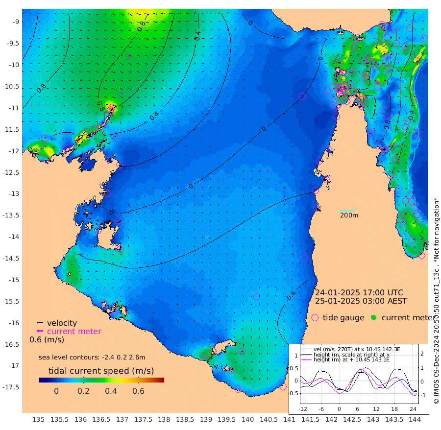 27cm/s 113T +3cm/s rms + 7cm/s -42T. ARA-GOC87 57m 11cm/s 15T +3cm/s rms + 2cm/s -2T. ARA-GOC87 60m 27cm/s 107T +2cm/s rms + 3cm/s 61T. ARA-GOC87 47m -78cm Daru -78cm Bobo Island -40cm Meer Island Barge -62cm Bramble Cay -78cm Unnamed Cay -74cm Pearce Cay -69cm Stephens Island -82cm Merrie England Shoals -92cm Mutacomal Reef -62cm Darnley Island Barge -53cm East Cay -70cm Yorke Island Barge -79cm Rennel Island -77cm Aureed Island -75cm Dungeness Reef -64cm Zagai Island -71cm Yam Island -38cm Dauan Island -49cm Saibai Island -53cm Phipi Reef -70cm Warrior Reef - West -38cm Mabuiag Island Barge -73cm Half Way Island -79cm Coconut Island -81cm Dugong Islet -74cm Poll Island -79cm Kirkcaldie Reef -78cm Suarji Island -73cm Sue Islet -16cm Hawkesbury Island -67cm Alert Patches -69cm Twin Island -13cm Badu Island -61cm St Pauls (Moa Island) -22cm Kubin (Moa Island) -50cm Ince Point -41cm Thursday Island -43cm Nardana Patches -32cm Turtle Head -19cm Round Island -12cm Goods Island 2cm Booby Island -13cm White Rocks Area 3cm Carpentaria -55cm Papou Point 0cm Bampfield Head 7cm Crab Island -9cm Red Wallis Island -26cm Packe Island -89cm Harrington Reef -17cm Herald Camp -22cm Sharp Point -39cm Red Island Point -44cm Possession Island -71cm Alpha Rock -76cm Frederick Point -81cm Wyborn Reef Light -80cm Tetley Island -45cm Triangle Reef -65cm Turtle Head Island -48cm Maclennan Cay -29cm Raine Island -70cm Mcsweeny Reef -67cm Collette Reef -44cm Shadwell Reef -72cm Hannibal Island -65cm Round Point 13cm Vrilya Point -63cm Cape Grenville -51cm Hicks Island -60cm Sir Charles Hardy Island -17cm Harvey Island -58cm Kay Reef -42cm Rocky Island -43cm Chapman Island -39cm Ham Reef -37cm Jubilee Reef -35cm Night Island -42cm Unnamed Reef No. 3 -41cm Morris Island -29cm 1st 3 Mile Opening -38cm Creech Reef -37cm Fife Island -41cm Eden Reef -43cm Stanley Island -51cm Normanby River 104cm Yabooma Island 114cm Hutchison River 106cm Elcho Island 97cm North West Crocodile Island 66cm Cape Wessel 96cm Stevens Island 59cm Guluwuru Island 85cm Hopeful Bay 81cm Auster Point 92cm Two Island Bay 111cm Cadell Strait 35cm Mallison Island 59cm Melville Bay (Gove Harbour) 65cm Truant Island 41cm Cape Arnhem 20cm Cape Grey 10cm Hawk Island 3cm Milner Bay (Groote Eylandt) -12cm Cape Beatrice -35cm West Island -36cm Centre Island -57cm Mornington Island -64cm West Wellesley Islands -70cm Bountiful Island -47cm Albert River Mouth -36cm Sweers Island -53cm Karumba -60cm Nassau River Offshore -55cm Christmas Creek -27cm Archer River -16cm Boyd Point -16cm Weipa (Humbug Point) 7cm Pennefather River 1cm Cullen Point