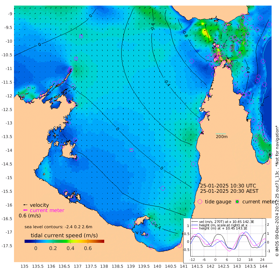13cm/s 9T +3cm/s rms + 7cm/s -42T. ARA-GOC87 57m 15cm/s -13T +3cm/s rms + 2cm/s -2T. ARA-GOC87 60m 14cm/s 21T +2cm/s rms + 3cm/s 61T. ARA-GOC87 47m 17cm Daru 22cm Bobo Island 6cm Meer Island Barge 25cm Bramble Cay 28cm Unnamed Cay 16cm Pearce Cay 19cm Stephens Island 39cm Merrie England Shoals 35cm Mutacomal Reef 16cm Darnley Island Barge 13cm East Cay 15cm Yorke Island Barge 16cm Rennel Island 13cm Aureed Island 0cm Dungeness Reef -16cm Zagai Island -13cm Yam Island -69cm Dauan Island -49cm Saibai Island -55cm Phipi Reef -22cm Warrior Reef - West -61cm Mabuiag Island Barge 19cm Half Way Island 9cm Coconut Island 13cm Dugong Islet -5cm Poll Island 0cm Kirkcaldie Reef -31cm Suarji Island -4cm Sue Islet -112cm Hawkesbury Island -39cm Alert Patches -29cm Twin Island -105cm Badu Island -40cm St Pauls (Moa Island) -92cm Kubin (Moa Island) -55cm Ince Point -68cm Thursday Island -65cm Nardana Patches -88cm Turtle Head -100cm Round Island -113cm Goods Island -128cm Booby Island -110cm White Rocks Area -105cm Carpentaria -32cm Papou Point -144cm Bampfield Head -104cm Crab Island -111cm Red Wallis Island -92cm Packe Island 15cm Harrington Reef -122cm Herald Camp -2cm Sharp Point -66cm Red Island Point -62cm Possession Island -9cm Alpha Rock -10cm Frederick Point 19cm Wyborn Reef Light 14cm Tetley Island 1cm Triangle Reef 1cm Turtle Head Island 2cm Maclennan Cay -3cm Raine Island 18cm Mcsweeny Reef 20cm Collette Reef 7cm Shadwell Reef 28cm Hannibal Island 24cm Round Point -95cm Vrilya Point 22cm Cape Grenville 9cm Hicks Island 7cm Sir Charles Hardy Island 4cm Harvey Island 22cm Kay Reef 5cm Rocky Island 4cm Chapman Island 2cm Ham Reef 3cm Jubilee Reef 3cm Night Island 5cm Unnamed Reef No. 3 6cm Morris Island -10cm 1st 3 Mile Opening 0cm Creech Reef 4cm Fife Island 8cm Eden Reef 10cm Stanley Island 19cm Normanby River -19cm Yabooma Island -23cm Hutchison River -14cm Elcho Island -7cm North West Crocodile Island 2cm Cape Wessel 5cm Stevens Island 4cm Guluwuru Island 1cm Hopeful Bay -9cm Auster Point -10cm Two Island Bay -8cm Cadell Strait 86cm Mallison Island -1cm Melville Bay (Gove Harbour) -6cm Truant Island -1cm Cape Arnhem 12cm Cape Grey 21cm Hawk Island 44cm Milner Bay (Groote Eylandt) 47cm Cape Beatrice 65cm West Island 65cm Centre Island 69cm Mornington Island 72cm West Wellesley Islands 76cm Bountiful Island 105cm Albert River Mouth 106cm Sweers Island 92cm Karumba 40cm Nassau River Offshore 1cm Christmas Creek -39cm Archer River -63cm Boyd Point -69cm Weipa (Humbug Point) -62cm Pennefather River -89cm Cullen Point