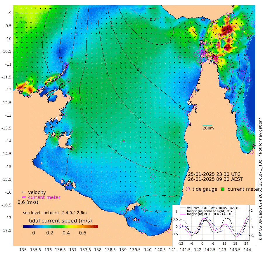 7cm/s -164T +3cm/s rms + 7cm/s -42T. ARA-GOC87 57m 25cm/s 163T +3cm/s rms + 2cm/s -2T. ARA-GOC87 60m 11cm/s -122T +2cm/s rms + 3cm/s 61T. ARA-GOC87 47m 128cm Daru 127cm Bobo Island 85cm Meer Island Barge 113cm Bramble Cay 135cm Unnamed Cay 130cm Pearce Cay 122cm Stephens Island 141cm Merrie England Shoals 146cm Mutacomal Reef 114cm Darnley Island Barge 96cm East Cay 120cm Yorke Island Barge 131cm Rennel Island 124cm Aureed Island 123cm Dungeness Reef 97cm Zagai Island 99cm Yam Island 62cm Dauan Island 64cm Saibai Island 74cm Phipi Reef 97cm Warrior Reef - West 74cm Mabuiag Island Barge 125cm Half Way Island 133cm Coconut Island 131cm Dugong Islet 120cm Poll Island 120cm Kirkcaldie Reef 119cm Suarji Island 115cm Sue Islet 97cm Hawkesbury Island 126cm Alert Patches 121cm Twin Island 83cm Badu Island 109cm St Pauls (Moa Island) 92cm Kubin (Moa Island) 105cm Ince Point 101cm Thursday Island 101cm Nardana Patches 98cm Turtle Head 95cm Round Island 91cm Goods Island 84cm Booby Island 91cm White Rocks Area 77cm Carpentaria 95cm Papou Point 113cm Bampfield Head 60cm Crab Island 87cm Red Wallis Island 101cm Packe Island 144cm Harrington Reef 92cm Herald Camp 26cm Sharp Point 81cm Red Island Point 106cm Possession Island 120cm Alpha Rock 130cm Frederick Point 145cm Wyborn Reef Light 143cm Tetley Island 90cm Triangle Reef 144cm Turtle Head Island 88cm Maclennan Cay 68cm Raine Island 125cm Mcsweeny Reef 120cm Collette Reef 91cm Shadwell Reef 130cm Hannibal Island 122cm Round Point 58cm Vrilya Point 113cm Cape Grenville 96cm Hicks Island 102cm Sir Charles Hardy Island 31cm Harvey Island 105cm Kay Reef 82cm Rocky Island 83cm Chapman Island 76cm Ham Reef 78cm Jubilee Reef 76cm Night Island 81cm Unnamed Reef No. 3 85cm Morris Island 75cm 1st 3 Mile Opening 81cm Creech Reef 79cm Fife Island 89cm Eden Reef 89cm Stanley Island 92cm Normanby River -66cm Yabooma Island -65cm Hutchison River -69cm Elcho Island -75cm North West Crocodile Island -23cm Cape Wessel -47cm Stevens Island -9cm Guluwuru Island -42cm Hopeful Bay -32cm Auster Point -46cm Two Island Bay -62cm Cadell Strait 68cm Mallison Island -14cm Melville Bay (Gove Harbour) -9cm Truant Island -8cm Cape Arnhem -21cm Cape Grey -17cm Hawk Island -48cm Milner Bay (Groote Eylandt) -44cm Cape Beatrice -52cm West Island -49cm Centre Island -51cm Mornington Island -46cm West Wellesley Islands -75cm Bountiful Island -127cm Albert River Mouth -130cm Sweers Island -115cm Karumba -21cm Nassau River Offshore 17cm Christmas Creek 41cm Archer River 51cm Boyd Point 47cm Weipa (Humbug Point) 47cm Pennefather River 55cm Cullen Point
