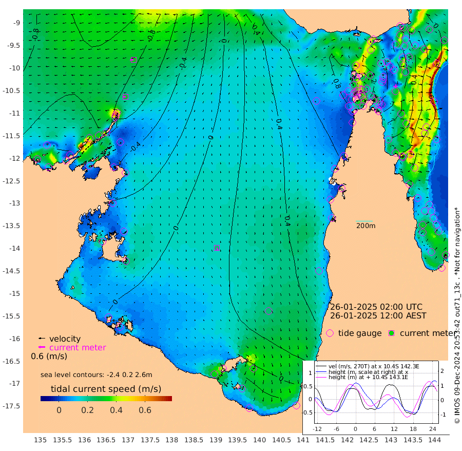 27cm/s -92T +3cm/s rms + 7cm/s -42T. ARA-GOC87 57m 22cm/s 177T +3cm/s rms + 2cm/s -2T. ARA-GOC87 60m 33cm/s -96T +2cm/s rms + 3cm/s 61T. ARA-GOC87 47m 80cm Daru 71cm Bobo Island 14cm Meer Island Barge 27cm Bramble Cay 54cm Unnamed Cay 68cm Pearce Cay 48cm Stephens Island 45cm Merrie England Shoals 77cm Mutacomal Reef 39cm Darnley Island Barge 21cm East Cay 60cm Yorke Island Barge 75cm Rennel Island 77cm Aureed Island 96cm Dungeness Reef 114cm Zagai Island 118cm Yam Island 145cm Dauan Island 132cm Saibai Island 144cm Phipi Reef 131cm Warrior Reef - West 130cm Mabuiag Island Barge 65cm Half Way Island 95cm Coconut Island 85cm Dugong Islet 111cm Poll Island 103cm Kirkcaldie Reef 150cm Suarji Island 105cm Sue Islet 134cm Hawkesbury Island 142cm Alert Patches 135cm Twin Island 131cm Badu Island 143cm St Pauls (Moa Island) 130cm Kubin (Moa Island) 136cm Ince Point 135cm Thursday Island 137cm Nardana Patches 137cm Turtle Head 131cm Round Island 126cm Goods Island 120cm Booby Island 124cm White Rocks Area 93cm Carpentaria 119cm Papou Point 138cm Bampfield Head 93cm Crab Island 123cm Red Wallis Island 133cm Packe Island 97cm Harrington Reef 139cm Herald Camp 40cm Sharp Point 117cm Red Island Point 131cm Possession Island 115cm Alpha Rock 119cm Frederick Point 86cm Wyborn Reef Light 95cm Tetley Island 37cm Triangle Reef 81cm Turtle Head Island 28cm Maclennan Cay 7cm Raine Island 57cm Mcsweeny Reef 46cm Collette Reef 22cm Shadwell Reef 41cm Hannibal Island 33cm Round Point 76cm Vrilya Point 28cm Cape Grenville 25cm Hicks Island 32cm Sir Charles Hardy Island 9cm Harvey Island 14cm Kay Reef 13cm Rocky Island 15cm Chapman Island 11cm Ham Reef 9cm Jubilee Reef 13cm Night Island 13cm Unnamed Reef No. 3 10cm Morris Island 10cm 1st 3 Mile Opening 12cm Creech Reef 14cm Fife Island -3cm Eden Reef 5cm Stanley Island 4cm Normanby River -107cm Yabooma Island -121cm Hutchison River -116cm Elcho Island -111cm North West Crocodile Island -79cm Cape Wessel -114cm Stevens Island -85cm Guluwuru Island -101cm Hopeful Bay -85cm Auster Point -98cm Two Island Bay -124cm Cadell Strait -133cm Mallison Island -71cm Melville Bay (Gove Harbour) -72cm Truant Island -47cm Cape Arnhem -39cm Cape Grey -29cm Hawk Island -40cm Milner Bay (Groote Eylandt) -29cm Cape Beatrice -15cm West Island -14cm Centre Island 0cm Mornington Island 4cm West Wellesley Islands -2cm Bountiful Island -50cm Albert River Mouth -55cm Sweers Island -28cm Karumba 26cm Nassau River Offshore 52cm Christmas Creek 57cm Archer River 70cm Boyd Point 72cm Weipa (Humbug Point) 51cm Pennefather River 83cm Cullen Point