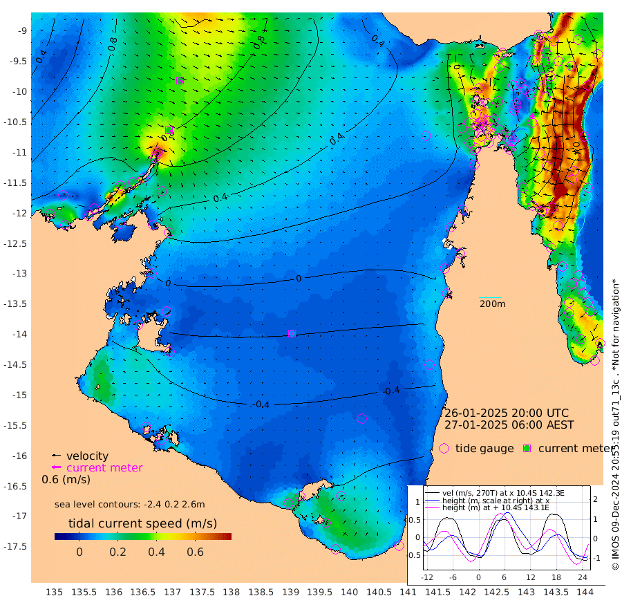 32cm/s 120T +3cm/s rms + 7cm/s -42T. ARA-GOC87 57m 7cm/s 119T +3cm/s rms + 2cm/s -2T. ARA-GOC87 60m 30cm/s 119T +2cm/s rms + 3cm/s 61T. ARA-GOC87 47m -33cm Daru -26cm Bobo Island 41cm Meer Island Barge 24cm Bramble Cay -2cm Unnamed Cay -12cm Pearce Cay 7cm Stephens Island 4cm Merrie England Shoals -32cm Mutacomal Reef 15cm Darnley Island Barge 33cm East Cay -9cm Yorke Island Barge -19cm Rennel Island -26cm Aureed Island -40cm Dungeness Reef -71cm Zagai Island -73cm Yam Island -86cm Dauan Island -87cm Saibai Island -93cm Phipi Reef -85cm Warrior Reef - West -63cm Mabuiag Island Barge -13cm Half Way Island -41cm Coconut Island -29cm Dugong Islet -58cm Poll Island -50cm Kirkcaldie Reef -86cm Suarji Island -56cm Sue Islet 11cm Hawkesbury Island -61cm Alert Patches -64cm Twin Island -7cm Badu Island -74cm St Pauls (Moa Island) -9cm Kubin (Moa Island) -50cm Ince Point -37cm Thursday Island -41cm Nardana Patches -18cm Turtle Head -2cm Round Island 21cm Goods Island 42cm Booby Island 25cm White Rocks Area 53cm Carpentaria -57cm Papou Point 49cm Bampfield Head 34cm Crab Island 26cm Red Wallis Island -1cm Packe Island -40cm Harrington Reef 13cm Herald Camp -35cm Sharp Point -26cm Red Island Point -38cm Possession Island -58cm Alpha Rock -55cm Frederick Point -32cm Wyborn Reef Light -40cm Tetley Island 18cm Triangle Reef -10cm Turtle Head Island 30cm Maclennan Cay 49cm Raine Island -3cm Mcsweeny Reef 5cm Collette Reef 31cm Shadwell Reef 12cm Hannibal Island 23cm Round Point 45cm Vrilya Point 27cm Cape Grenville 30cm Hicks Island 33cm Sir Charles Hardy Island 8cm Harvey Island 41cm Kay Reef 42cm Rocky Island 42cm Chapman Island 46cm Ham Reef 47cm Jubilee Reef 38cm Night Island 44cm Unnamed Reef No. 3 49cm Morris Island 56cm 1st 3 Mile Opening 48cm Creech Reef 38cm Fife Island 67cm Eden Reef 53cm Stanley Island 51cm Normanby River 106cm Yabooma Island 126cm Hutchison River 110cm Elcho Island 94cm North West Crocodile Island 80cm Cape Wessel 100cm Stevens Island 89cm Guluwuru Island 92cm Hopeful Bay 88cm Auster Point 98cm Two Island Bay 114cm Cadell Strait 113cm Mallison Island 71cm Melville Bay (Gove Harbour) 80cm Truant Island 47cm Cape Arnhem 14cm Cape Grey -6cm Hawk Island -33cm Milner Bay (Groote Eylandt) -44cm Cape Beatrice -82cm West Island -81cm Centre Island -106cm Mornington Island -108cm West Wellesley Islands -129cm Bountiful Island -133cm Albert River Mouth -141cm Sweers Island -142cm Karumba -85cm Nassau River Offshore -50cm Christmas Creek -1cm Archer River 15cm Boyd Point 16cm Weipa (Humbug Point) 32cm Pennefather River 30cm Cullen Point