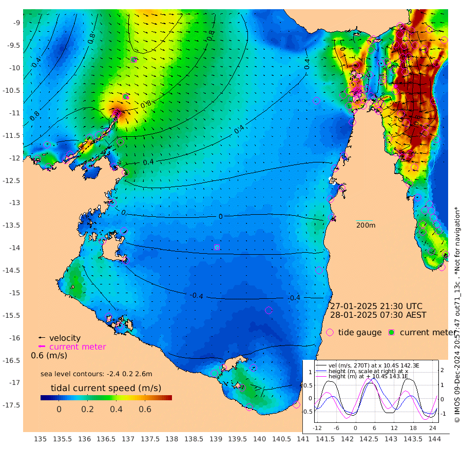 34cm/s 122T +3cm/s rms + 7cm/s -42T. ARA-GOC87 57m 14cm/s 152T +3cm/s rms + 2cm/s -2T. ARA-GOC87 60m 30cm/s 121T +2cm/s rms + 3cm/s 61T. ARA-GOC87 47m 35cm Daru 43cm Bobo Island 91cm Meer Island Barge 90cm Bramble Cay 74cm Unnamed Cay 62cm Pearce Cay 78cm Stephens Island 83cm Merrie England Shoals 46cm Mutacomal Reef 79cm Darnley Island Barge 91cm East Cay 56cm Yorke Island Barge 53cm Rennel Island 40cm Aureed Island 24cm Dungeness Reef -30cm Zagai Island -25cm Yam Island -67cm Dauan Island -70cm Saibai Island -67cm Phipi Reef -42cm Warrior Reef - West -41cm Mabuiag Island Barge 58cm Half Way Island 25cm Coconut Island 44cm Dugong Islet 1cm Poll Island 12cm Kirkcaldie Reef -36cm Suarji Island -3cm Sue Islet 47cm Hawkesbury Island -11cm Alert Patches -11cm Twin Island 20cm Badu Island -29cm St Pauls (Moa Island) 26cm Kubin (Moa Island) -9cm Ince Point 1cm Thursday Island -4cm Nardana Patches 18cm Turtle Head 27cm Round Island 53cm Goods Island 66cm Booby Island 59cm White Rocks Area 65cm Carpentaria -16cm Papou Point 76cm Bampfield Head 49cm Crab Island 54cm Red Wallis Island 36cm Packe Island 36cm Harrington Reef 41cm Herald Camp -26cm Sharp Point 6cm Red Island Point 0cm Possession Island -7cm Alpha Rock 6cm Frederick Point 41cm Wyborn Reef Light 29cm Tetley Island 66cm Triangle Reef 65cm Turtle Head Island 82cm Maclennan Cay 90cm Raine Island 65cm Mcsweeny Reef 70cm Collette Reef 81cm Shadwell Reef 84cm Hannibal Island 93cm Round Point 56cm Vrilya Point 90cm Cape Grenville 88cm Hicks Island 93cm Sir Charles Hardy Island 26cm Harvey Island 101cm Kay Reef 91cm Rocky Island 90cm Chapman Island 89cm Ham Reef 93cm Jubilee Reef 82cm Night Island 90cm Unnamed Reef No. 3 99cm Morris Island 100cm 1st 3 Mile Opening 96cm Creech Reef 85cm Fife Island 123cm Eden Reef 106cm Stanley Island 111cm Normanby River 119cm Yabooma Island 144cm Hutchison River 118cm Elcho Island 102cm North West Crocodile Island 91cm Cape Wessel 112cm Stevens Island 104cm Guluwuru Island 101cm Hopeful Bay 98cm Auster Point 105cm Two Island Bay 126cm Cadell Strait 137cm Mallison Island 81cm Melville Bay (Gove Harbour) 92cm Truant Island 51cm Cape Arnhem 13cm Cape Grey -10cm Hawk Island -50cm Milner Bay (Groote Eylandt) -57cm Cape Beatrice -103cm West Island -104cm Centre Island -121cm Mornington Island -117cm West Wellesley Islands -143cm Bountiful Island -162cm Albert River Mouth -180cm Sweers Island -171cm Karumba -84cm Nassau River Offshore -39cm Christmas Creek 13cm Archer River 29cm Boyd Point 31cm Weipa (Humbug Point) 40cm Pennefather River 40cm Cullen Point
