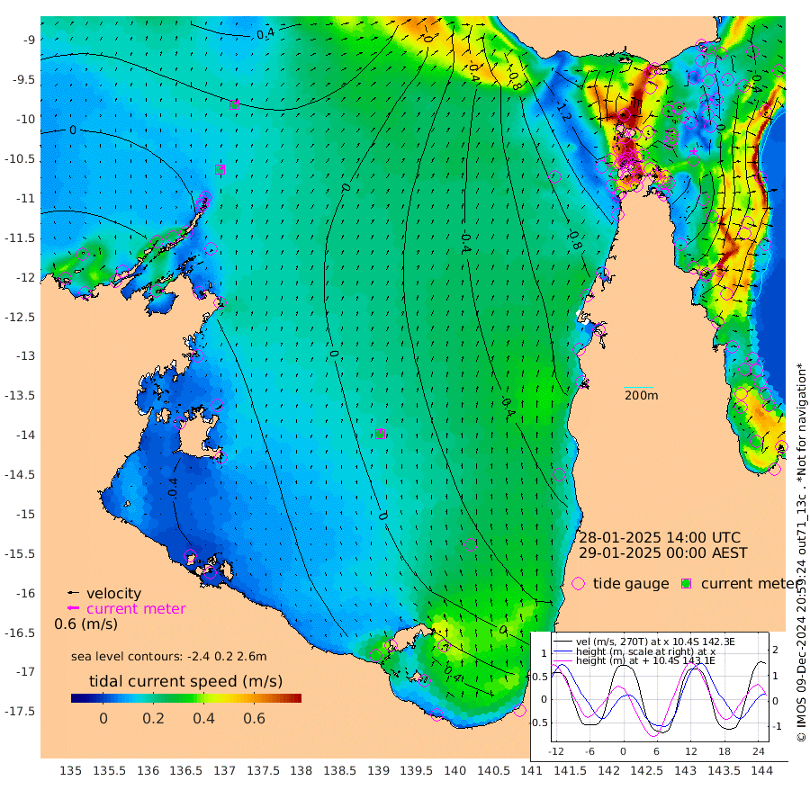 21cm/s 47T +3cm/s rms + 7cm/s -42T. ARA-GOC87 57m 29cm/s 5T +3cm/s rms + 2cm/s -2T. ARA-GOC87 60m 25cm/s 51T +2cm/s rms + 3cm/s 61T. ARA-GOC87 47m 24cm Daru 24cm Bobo Island -44cm Meer Island Barge -20cm Bramble Cay 4cm Unnamed Cay 6cm Pearce Cay -9cm Stephens Island 6cm Merrie England Shoals 29cm Mutacomal Reef -14cm Darnley Island Barge -42cm East Cay 6cm Yorke Island Barge 6cm Rennel Island 14cm Aureed Island 12cm Dungeness Reef 34cm Zagai Island 23cm Yam Island -9cm Dauan Island 9cm Saibai Island -4cm Phipi Reef 24cm Warrior Reef - West -7cm Mabuiag Island Barge 7cm Half Way Island 26cm Coconut Island 12cm Dugong Islet 26cm Poll Island 16cm Kirkcaldie Reef 26cm Suarji Island 29cm Sue Islet -121cm Hawkesbury Island 4cm Alert Patches 13cm Twin Island -91cm Badu Island 18cm St Pauls (Moa Island) -84cm Kubin (Moa Island) -19cm Ince Point -39cm Thursday Island -34cm Nardana Patches -79cm Turtle Head -96cm Round Island -129cm Goods Island -152cm Booby Island -130cm White Rocks Area -125cm Carpentaria 10cm Papou Point -158cm Bampfield Head -127cm Crab Island -136cm Red Wallis Island -106cm Packe Island 28cm Harrington Reef -149cm Herald Camp 19cm Sharp Point -61cm Red Island Point -30cm Possession Island 26cm Alpha Rock 21cm Frederick Point 33cm Wyborn Reef Light 35cm Tetley Island -32cm Triangle Reef 16cm Turtle Head Island -46cm Maclennan Cay -60cm Raine Island 2cm Mcsweeny Reef -6cm Collette Reef -37cm Shadwell Reef -7cm Hannibal Island -21cm Round Point -119cm Vrilya Point -30cm Cape Grenville -39cm Hicks Island -54cm Sir Charles Hardy Island -10cm Harvey Island -42cm Kay Reef -54cm Rocky Island -57cm Chapman Island -59cm Ham Reef -55cm Jubilee Reef -49cm Night Island -57cm Unnamed Reef No. 3 -57cm Morris Island -67cm 1st 3 Mile Opening -61cm Creech Reef -47cm Fife Island -73cm Eden Reef -60cm Stanley Island -54cm Normanby River -16cm Yabooma Island -19cm Hutchison River -11cm Elcho Island -6cm North West Crocodile Island 22cm Cape Wessel 22cm Stevens Island 19cm Guluwuru Island 7cm Hopeful Bay 14cm Auster Point 6cm Two Island Bay 9cm Cadell Strait 76cm Mallison Island 23cm Melville Bay (Gove Harbour) 23cm Truant Island 22cm Cape Arnhem 39cm Cape Grey 42cm Hawk Island 72cm Milner Bay (Groote Eylandt) 61cm Cape Beatrice 83cm West Island 79cm Centre Island 52cm Mornington Island 56cm West Wellesley Islands 57cm Bountiful Island 81cm Albert River Mouth 115cm Sweers Island 69cm Karumba -3cm Nassau River Offshore -53cm Christmas Creek -87cm Archer River -98cm Boyd Point -116cm Weipa (Humbug Point) -85cm Pennefather River -120cm Cullen Point