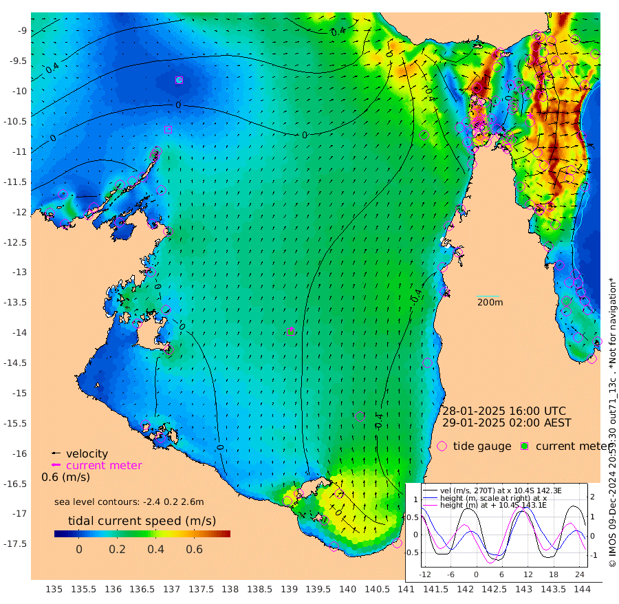 11cm/s 47T +3cm/s rms + 7cm/s -42T. ARA-GOC87 57m 32cm/s 15T +3cm/s rms + 2cm/s -2T. ARA-GOC87 60m 14cm/s 72T +2cm/s rms + 3cm/s 61T. ARA-GOC87 47m -87cm Daru -84cm Bobo Island -111cm Meer Island Barge -119cm Bramble Cay -113cm Unnamed Cay -102cm Pearce Cay -114cm Stephens Island -118cm Merrie England Shoals -94cm Mutacomal Reef -110cm Darnley Island Barge -119cm East Cay -94cm Yorke Island Barge -99cm Rennel Island -83cm Aureed Island -83cm Dungeness Reef -26cm Zagai Island -40cm Yam Island -19cm Dauan Island 0cm Saibai Island -44cm Phipi Reef -37cm Warrior Reef - West -4cm Mabuiag Island Barge -97cm Half Way Island -69cm Coconut Island -90cm Dugong Islet -52cm Poll Island -69cm Kirkcaldie Reef -30cm Suarji Island -45cm Sue Islet -80cm Hawkesbury Island -43cm Alert Patches -37cm Twin Island -53cm Badu Island -23cm St Pauls (Moa Island) -63cm Kubin (Moa Island) -37cm Ince Point -39cm Thursday Island -38cm Nardana Patches -64cm Turtle Head -70cm Round Island -81cm Goods Island -74cm Booby Island -69cm White Rocks Area -28cm Carpentaria -24cm Papou Point -85cm Bampfield Head -58cm Crab Island -66cm Red Wallis Island -77cm Packe Island -80cm Harrington Reef -97cm Herald Camp 5cm Sharp Point -51cm Red Island Point -48cm Possession Island -32cm Alpha Rock -53cm Frederick Point -78cm Wyborn Reef Light -67cm Tetley Island -90cm Triangle Reef -91cm Turtle Head Island -108cm Maclennan Cay -107cm Raine Island -100cm Mcsweeny Reef -105cm Collette Reef -106cm Shadwell Reef -118cm Hannibal Island -123cm Round Point -45cm Vrilya Point -120cm Cape Grenville -118cm Hicks Island -127cm Sir Charles Hardy Island -37cm Harvey Island -123cm Kay Reef -115cm Rocky Island -111cm Chapman Island -107cm Ham Reef -110cm Jubilee Reef -103cm Night Island -108cm Unnamed Reef No. 3 -120cm Morris Island -116cm 1st 3 Mile Opening -116cm Creech Reef -108cm Fife Island -141cm Eden Reef -126cm Stanley Island -132cm Normanby River -35cm Yabooma Island -48cm Hutchison River -27cm Elcho Island -23cm North West Crocodile Island 7cm Cape Wessel -11cm Stevens Island -19cm Guluwuru Island -21cm Hopeful Bay -6cm Auster Point -10cm Two Island Bay -29cm Cadell Strait -28cm Mallison Island -11cm Melville Bay (Gove Harbour) -7cm Truant Island 0cm Cape Arnhem 13cm Cape Grey 10cm Hawk Island 50cm Milner Bay (Groote Eylandt) 35cm Cape Beatrice 61cm West Island 59cm Centre Island -6cm Mornington Island -3cm West Wellesley Islands -17cm Bountiful Island 2cm Albert River Mouth 29cm Sweers Island -12cm Karumba -52cm Nassau River Offshore -79cm Christmas Creek -77cm Archer River -66cm Boyd Point -83cm Weipa (Humbug Point) -47cm Pennefather River -54cm Cullen Point