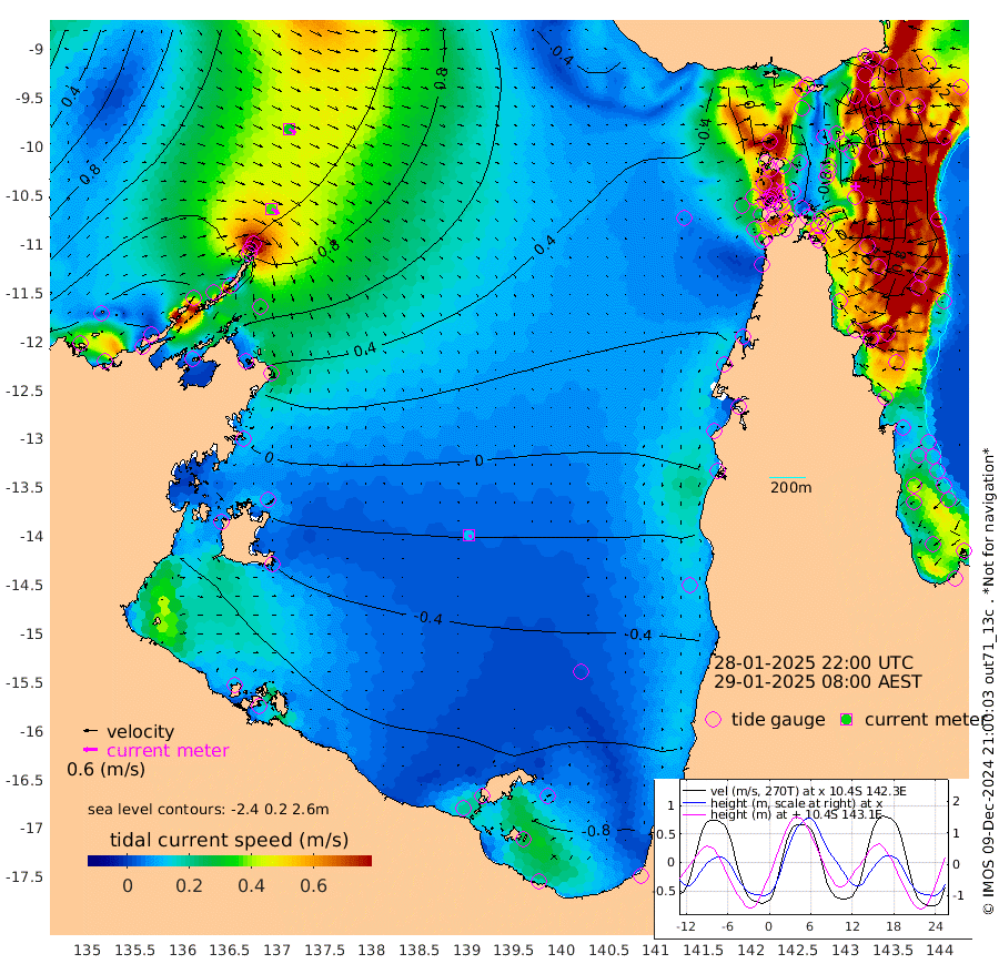 36cm/s 123T +3cm/s rms + 7cm/s -42T. ARA-GOC87 57m 13cm/s 153T +3cm/s rms + 2cm/s -2T. ARA-GOC87 60m 33cm/s 122T +2cm/s rms + 3cm/s 61T. ARA-GOC87 47m 35cm Daru 46cm Bobo Island 97cm Meer Island Barge 95cm Bramble Cay 76cm Unnamed Cay 69cm Pearce Cay 83cm Stephens Island 84cm Merrie England Shoals 47cm Mutacomal Reef 82cm Darnley Island Barge 98cm East Cay 58cm Yorke Island Barge 58cm Rennel Island 44cm Aureed Island 27cm Dungeness Reef -32cm Zagai Island -24cm Yam Island -70cm Dauan Island -75cm Saibai Island -72cm Phipi Reef -44cm Warrior Reef - West -41cm Mabuiag Island Barge 63cm Half Way Island 26cm Coconut Island 48cm Dugong Islet 3cm Poll Island 14cm Kirkcaldie Reef -35cm Suarji Island -4cm Sue Islet 59cm Hawkesbury Island -10cm Alert Patches -9cm Twin Island 29cm Badu Island -29cm St Pauls (Moa Island) 34cm Kubin (Moa Island) -6cm Ince Point 5cm Thursday Island 0cm Nardana Patches 25cm Turtle Head 32cm Round Island 65cm Goods Island 78cm Booby Island 74cm White Rocks Area 70cm Carpentaria -13cm Papou Point 84cm Bampfield Head 57cm Crab Island 66cm Red Wallis Island 45cm Packe Island 40cm Harrington Reef 49cm Herald Camp -29cm Sharp Point 14cm Red Island Point 2cm Possession Island -8cm Alpha Rock 8cm Frederick Point 41cm Wyborn Reef Light 29cm Tetley Island 70cm Triangle Reef 69cm Turtle Head Island 88cm Maclennan Cay 96cm Raine Island 68cm Mcsweeny Reef 72cm Collette Reef 83cm Shadwell Reef 86cm Hannibal Island 98cm Round Point 61cm Vrilya Point 94cm Cape Grenville 94cm Hicks Island 99cm Sir Charles Hardy Island 28cm Harvey Island 106cm Kay Reef 96cm Rocky Island 96cm Chapman Island 95cm Ham Reef 99cm Jubilee Reef 86cm Night Island 96cm Unnamed Reef No. 3 106cm Morris Island 107cm 1st 3 Mile Opening 102cm Creech Reef 91cm Fife Island 131cm Eden Reef 112cm Stanley Island 120cm Normanby River 154cm Yabooma Island 182cm Hutchison River 150cm Elcho Island 135cm North West Crocodile Island 110cm Cape Wessel 137cm Stevens Island 115cm Guluwuru Island 122cm Hopeful Bay 119cm Auster Point 127cm Two Island Bay 155cm Cadell Strait 111cm Mallison Island 92cm Melville Bay (Gove Harbour) 103cm Truant Island 55cm Cape Arnhem 15cm Cape Grey -13cm Hawk Island -54cm Milner Bay (Groote Eylandt) -60cm Cape Beatrice -112cm West Island -114cm Centre Island -132cm Mornington Island -125cm West Wellesley Islands -149cm Bountiful Island -169cm Albert River Mouth -192cm Sweers Island -180cm Karumba -90cm Nassau River Offshore -42cm Christmas Creek 12cm Archer River 30cm Boyd Point 35cm Weipa (Humbug Point) 39cm Pennefather River 43cm Cullen Point