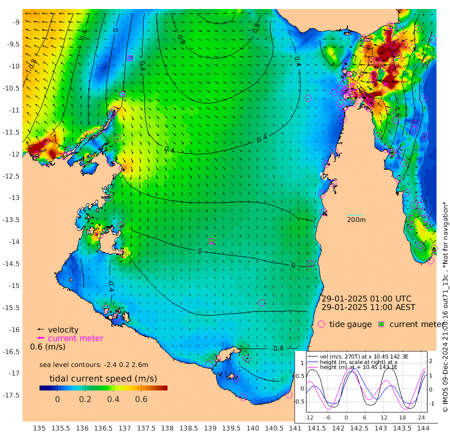 17cm/s 128T +3cm/s rms + 7cm/s -42T. ARA-GOC87 57m 34cm/s 166T +3cm/s rms + 2cm/s -2T. ARA-GOC87 60m 7cm/s 163T +2cm/s rms + 3cm/s 61T. ARA-GOC87 47m 192cm Daru 182cm Bobo Island 111cm Meer Island Barge 151cm Bramble Cay 188cm Unnamed Cay 182cm Pearce Cay 171cm Stephens Island 190cm Merrie England Shoals 206cm Mutacomal Reef 156cm Darnley Island Barge 122cm East Cay 170cm Yorke Island Barge 187cm Rennel Island 172cm Aureed Island 181cm Dungeness Reef 156cm Zagai Island 163cm Yam Island 126cm Dauan Island 114cm Saibai Island 126cm Phipi Reef 164cm Warrior Reef - West 113cm Mabuiag Island Barge 181cm Half Way Island 187cm Coconut Island 192cm Dugong Islet 179cm Poll Island 180cm Kirkcaldie Reef 166cm Suarji Island 169cm Sue Islet 119cm Hawkesbury Island 171cm Alert Patches 172cm Twin Island 112cm Badu Island 166cm St Pauls (Moa Island) 129cm Kubin (Moa Island) 149cm Ince Point 137cm Thursday Island 140cm Nardana Patches 130cm Turtle Head 113cm Round Island 109cm Goods Island 87cm Booby Island 99cm White Rocks Area 61cm Carpentaria 142cm Papou Point 107cm Bampfield Head 64cm Crab Island 95cm Red Wallis Island 128cm Packe Island 203cm Harrington Reef 104cm Herald Camp 41cm Sharp Point 101cm Red Island Point 133cm Possession Island 169cm Alpha Rock 185cm Frederick Point 206cm Wyborn Reef Light 204cm Tetley Island 115cm Triangle Reef 207cm Turtle Head Island 114cm Maclennan Cay 84cm Raine Island 173cm Mcsweeny Reef 160cm Collette Reef 116cm Shadwell Reef 172cm Hannibal Island 159cm Round Point 53cm Vrilya Point 141cm Cape Grenville 126cm Hicks Island 133cm Sir Charles Hardy Island 42cm Harvey Island 124cm Kay Reef 99cm Rocky Island 93cm Chapman Island 87cm Ham Reef 96cm Jubilee Reef 93cm Night Island 92cm Unnamed Reef No. 3 103cm Morris Island 94cm 1st 3 Mile Opening 98cm Creech Reef 103cm Fife Island 105cm Eden Reef 106cm Stanley Island 113cm Normanby River -12cm Yabooma Island 0cm Hutchison River -22cm Elcho Island -28cm North West Crocodile Island 21cm Cape Wessel 9cm Stevens Island 54cm Guluwuru Island -6cm Hopeful Bay 11cm Auster Point 7cm Two Island Bay 19cm Cadell Strait 161cm Mallison Island 37cm Melville Bay (Gove Harbour) 46cm Truant Island 28cm Cape Arnhem -5cm Cape Grey -15cm Hawk Island -64cm Milner Bay (Groote Eylandt) -59cm Cape Beatrice -90cm West Island -96cm Centre Island -79cm Mornington Island -70cm West Wellesley Islands -107cm Bountiful Island -154cm Albert River Mouth -181cm Sweers Island -149cm Karumba -32cm Nassau River Offshore 16cm Christmas Creek 33cm Archer River 50cm Boyd Point 44cm Weipa (Humbug Point) 41cm Pennefather River 50cm Cullen Point