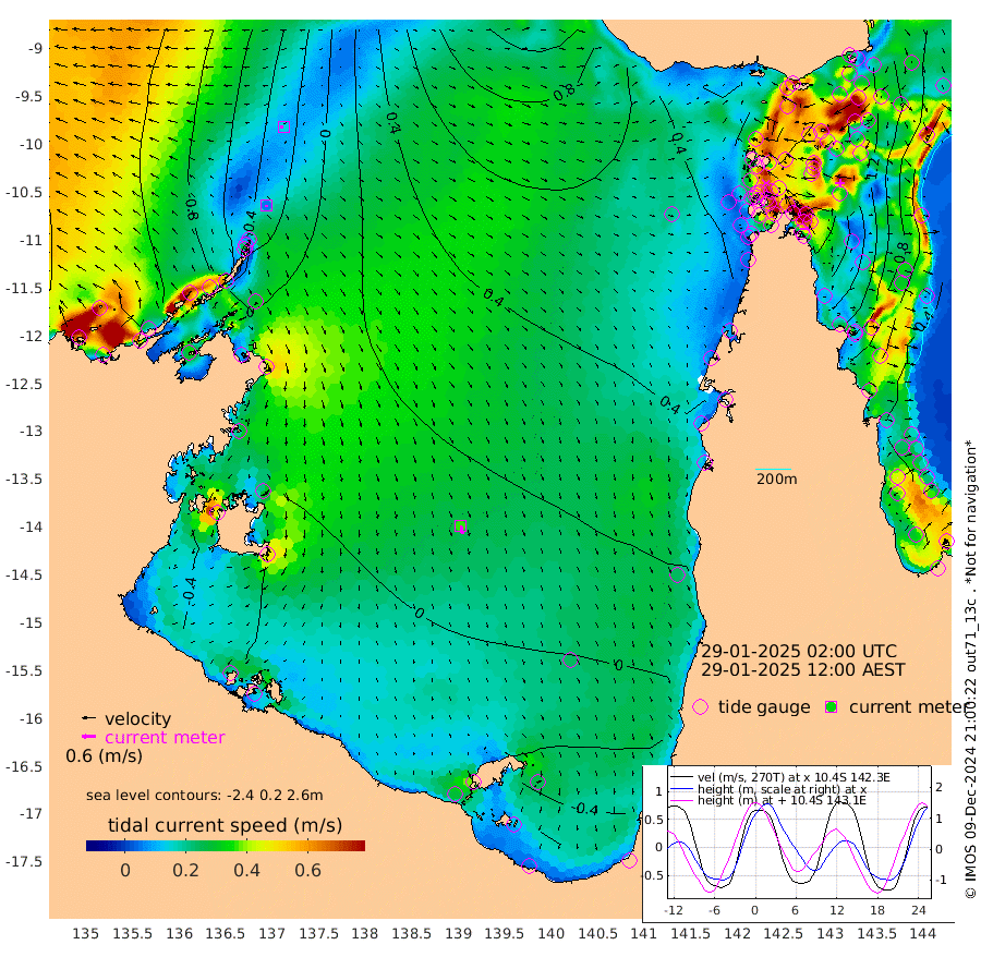 6cm/s -163T +3cm/s rms + 7cm/s -42T. ARA-GOC87 57m 36cm/s 167T +3cm/s rms + 2cm/s -2T. ARA-GOC87 60m 15cm/s -105T +2cm/s rms + 3cm/s 61T. ARA-GOC87 47m 178cm Daru 162cm Bobo Island 72cm Meer Island Barge 110cm Bramble Cay 155cm Unnamed Cay 152cm Pearce Cay 136cm Stephens Island 152cm Merrie England Shoals 186cm Mutacomal Reef 122cm Darnley Island Barge 81cm East Cay 147cm Yorke Island Barge 164cm Rennel Island 155cm Aureed Island 173cm Dungeness Reef 177cm Zagai Island 183cm Yam Island 175cm Dauan Island 162cm Saibai Island 168cm Phipi Reef 193cm Warrior Reef - West 149cm Mabuiag Island Barge 156cm Half Way Island 180cm Coconut Island 174cm Dugong Islet 184cm Poll Island 181cm Kirkcaldie Reef 192cm Suarji Island 177cm Sue Islet 130cm Hawkesbury Island 190cm Alert Patches 190cm Twin Island 131cm Badu Island 193cm St Pauls (Moa Island) 145cm Kubin (Moa Island) 171cm Ince Point 159cm Thursday Island 163cm Nardana Patches 148cm Turtle Head 130cm Round Island 117cm Goods Island 96cm Booby Island 105cm White Rocks Area 71cm Carpentaria 161cm Papou Point 115cm Bampfield Head 74cm Crab Island 107cm Red Wallis Island 143cm Packe Island 188cm Harrington Reef 122cm Herald Camp 55cm Sharp Point 117cm Red Island Point 151cm Possession Island 183cm Alpha Rock 191cm Frederick Point 190cm Wyborn Reef Light 195cm Tetley Island 90cm Triangle Reef 180cm Turtle Head Island 80cm Maclennan Cay 47cm Raine Island 145cm Mcsweeny Reef 130cm Collette Reef 83cm Shadwell Reef 135cm Hannibal Island 117cm Round Point 61cm Vrilya Point 102cm Cape Grenville 88cm Hicks Island 96cm Sir Charles Hardy Island 30cm Harvey Island 80cm Kay Reef 60cm Rocky Island 56cm Chapman Island 51cm Ham Reef 58cm Jubilee Reef 60cm Night Island 56cm Unnamed Reef No. 3 61cm Morris Island 54cm 1st 3 Mile Opening 58cm Creech Reef 67cm Fife Island 52cm Eden Reef 61cm Stanley Island 63cm Normanby River -90cm Yabooma Island -91cm Hutchison River -99cm Elcho Island -100cm North West Crocodile Island -33cm Cape Wessel -64cm Stevens Island -2cm Guluwuru Island -71cm Hopeful Bay -50cm Auster Point -56cm Two Island Bay -61cm Cadell Strait 106cm Mallison Island -11cm Melville Bay (Gove Harbour) -4cm Truant Island -2cm Cape Arnhem -23cm Cape Grey -24cm Hawk Island -61cm Milner Bay (Groote Eylandt) -52cm Cape Beatrice -64cm West Island -69cm Centre Island -49cm Mornington Island -42cm West Wellesley Islands -78cm Bountiful Island -126cm Albert River Mouth -151cm Sweers Island -114cm Karumba -6cm Nassau River Offshore 36cm Christmas Creek 42cm Archer River 60cm Boyd Point 52cm Weipa (Humbug Point) 46cm Pennefather River 63cm Cullen Point