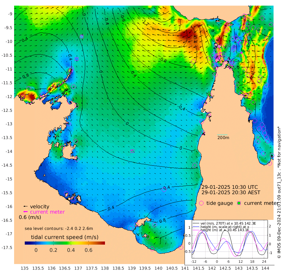8cm/s 5T +3cm/s rms + 7cm/s -42T. ARA-GOC87 57m 20cm/s -55T +3cm/s rms + 2cm/s -2T. ARA-GOC87 60m 15cm/s 32T +2cm/s rms + 3cm/s 61T. ARA-GOC87 47m 1cm Daru 9cm Bobo Island 43cm Meer Island Barge 46cm Bramble Cay 28cm Unnamed Cay 23cm Pearce Cay 33cm Stephens Island 36cm Merrie England Shoals 6cm Mutacomal Reef 32cm Darnley Island Barge 49cm East Cay 14cm Yorke Island Barge 10cm Rennel Island 5cm Aureed Island -8cm Dungeness Reef -60cm Zagai Island -57cm Yam Island -95cm Dauan Island -100cm Saibai Island -50cm Phipi Reef -61cm Warrior Reef - West -103cm Mabuiag Island Barge 12cm Half Way Island -20cm Coconut Island -4cm Dugong Islet -41cm Poll Island -29cm Kirkcaldie Reef -70cm Suarji Island -46cm Sue Islet -100cm Hawkesbury Island -75cm Alert Patches -75cm Twin Island -106cm Badu Island -88cm St Pauls (Moa Island) -95cm Kubin (Moa Island) -90cm Ince Point -96cm Thursday Island -95cm Nardana Patches -91cm Turtle Head -86cm Round Island -96cm Goods Island -113cm Booby Island -105cm White Rocks Area -138cm Carpentaria -75cm Papou Point -118cm Bampfield Head -93cm Crab Island -115cm Red Wallis Island -96cm Packe Island -12cm Harrington Reef -93cm Herald Camp -27cm Sharp Point -72cm Red Island Point -70cm Possession Island -69cm Alpha Rock -50cm Frederick Point -14cm Wyborn Reef Light -27cm Tetley Island 18cm Triangle Reef -5cm Turtle Head Island 32cm Maclennan Cay 41cm Raine Island 18cm Mcsweeny Reef 28cm Collette Reef 35cm Shadwell Reef 39cm Hannibal Island 46cm Round Point -97cm Vrilya Point 43cm Cape Grenville 45cm Hicks Island 35cm Sir Charles Hardy Island 14cm Harvey Island 50cm Kay Reef 47cm Rocky Island 43cm Chapman Island 38cm Ham Reef 41cm Jubilee Reef 39cm Night Island 38cm Unnamed Reef No. 3 50cm Morris Island 42cm 1st 3 Mile Opening 43cm Creech Reef 42cm Fife Island 67cm Eden Reef 54cm Stanley Island 65cm Normanby River 91cm Yabooma Island 103cm Hutchison River 90cm Elcho Island 92cm North West Crocodile Island 24cm Cape Wessel 72cm Stevens Island 30cm Guluwuru Island 78cm Hopeful Bay 48cm Auster Point 51cm Two Island Bay 83cm Cadell Strait -1cm Mallison Island 35cm Melville Bay (Gove Harbour) 24cm Truant Island 16cm Cape Arnhem 33cm Cape Grey 45cm Hawk Island 49cm Milner Bay (Groote Eylandt) 53cm Cape Beatrice 50cm West Island 54cm Centre Island 111cm Mornington Island 105cm West Wellesley Islands 155cm Bountiful Island 192cm Albert River Mouth 209cm Sweers Island 194cm Karumba 89cm Nassau River Offshore 42cm Christmas Creek -4cm Archer River -45cm Boyd Point -30cm Weipa (Humbug Point) -50cm Pennefather River -84cm Cullen Point