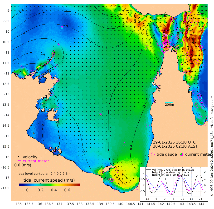 12cm/s 27T +3cm/s rms + 7cm/s -42T. ARA-GOC87 57m 32cm/s 16T +3cm/s rms + 2cm/s -2T. ARA-GOC87 60m 12cm/s 54T +2cm/s rms + 3cm/s 61T. ARA-GOC87 47m -83cm Daru -83cm Bobo Island -111cm Meer Island Barge -119cm Bramble Cay -109cm Unnamed Cay -104cm Pearce Cay -113cm Stephens Island -115cm Merrie England Shoals -90cm Mutacomal Reef -107cm Darnley Island Barge -120cm East Cay -90cm Yorke Island Barge -99cm Rennel Island -83cm Aureed Island -82cm Dungeness Reef -22cm Zagai Island -38cm Yam Island -18cm Dauan Island 6cm Saibai Island -41cm Phipi Reef -35cm Warrior Reef - West -3cm Mabuiag Island Barge -97cm Half Way Island -67cm Coconut Island -90cm Dugong Islet -52cm Poll Island -67cm Kirkcaldie Reef -28cm Suarji Island -39cm Sue Islet -91cm Hawkesbury Island -41cm Alert Patches -38cm Twin Island -62cm Badu Island -23cm St Pauls (Moa Island) -73cm Kubin (Moa Island) -39cm Ince Point -44cm Thursday Island -42cm Nardana Patches -72cm Turtle Head -74cm Round Island -94cm Goods Island -87cm Booby Island -85cm White Rocks Area -33cm Carpentaria -24cm Papou Point -90cm Bampfield Head -69cm Crab Island -81cm Red Wallis Island -89cm Packe Island -79cm Harrington Reef -104cm Herald Camp 8cm Sharp Point -57cm Red Island Point -47cm Possession Island -29cm Alpha Rock -52cm Frederick Point -74cm Wyborn Reef Light -64cm Tetley Island -91cm Triangle Reef -90cm Turtle Head Island -109cm Maclennan Cay -108cm Raine Island -98cm Mcsweeny Reef -101cm Collette Reef -104cm Shadwell Reef -114cm Hannibal Island -124cm Round Point -54cm Vrilya Point -118cm Cape Grenville -119cm Hicks Island -126cm Sir Charles Hardy Island -37cm Harvey Island -122cm Kay Reef -115cm Rocky Island -113cm Chapman Island -107cm Ham Reef -111cm Jubilee Reef -104cm Night Island -109cm Unnamed Reef No. 3 -121cm Morris Island -117cm 1st 3 Mile Opening -117cm Creech Reef -111cm Fife Island -143cm Eden Reef -127cm Stanley Island -134cm Normanby River -66cm Yabooma Island -81cm Hutchison River -56cm Elcho Island -52cm North West Crocodile Island -8cm Cape Wessel -35cm Stevens Island -26cm Guluwuru Island -41cm Hopeful Bay -23cm Auster Point -30cm Two Island Bay -56cm Cadell Strait -10cm Mallison Island -19cm Melville Bay (Gove Harbour) -16cm Truant Island -3cm Cape Arnhem 15cm Cape Grey 14cm Hawk Island 55cm Milner Bay (Groote Eylandt) 40cm Cape Beatrice 71cm West Island 70cm Centre Island 3cm Mornington Island 4cm West Wellesley Islands -8cm Bountiful Island 5cm Albert River Mouth 40cm Sweers Island -6cm Karumba -51cm Nassau River Offshore -80cm Christmas Creek -80cm Archer River -69cm Boyd Point -90cm Weipa (Humbug Point) -51cm Pennefather River -61cm Cullen Point