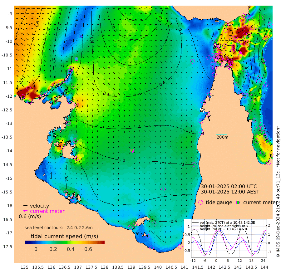 15cm/s 123T +3cm/s rms + 7cm/s -42T. ARA-GOC87 57m 36cm/s 166T +3cm/s rms + 2cm/s -2T. ARA-GOC87 60m 4cm/s -179T +2cm/s rms + 3cm/s 61T. ARA-GOC87 47m 195cm Daru 181cm Bobo Island 96cm Meer Island Barge 135cm Bramble Cay 177cm Unnamed Cay 174cm Pearce Cay 160cm Stephens Island 175cm Merrie England Shoals 202cm Mutacomal Reef 146cm Darnley Island Barge 105cm East Cay 167cm Yorke Island Barge 182cm Rennel Island 170cm Aureed Island 184cm Dungeness Reef 176cm Zagai Island 182cm Yam Island 159cm Dauan Island 145cm Saibai Island 151cm Phipi Reef 188cm Warrior Reef - West 132cm Mabuiag Island Barge 177cm Half Way Island 189cm Coconut Island 191cm Dugong Islet 188cm Poll Island 189cm Kirkcaldie Reef 180cm Suarji Island 180cm Sue Islet 115cm Hawkesbury Island 180cm Alert Patches 183cm Twin Island 115cm Badu Island 184cm St Pauls (Moa Island) 133cm Kubin (Moa Island) 159cm Ince Point 145cm Thursday Island 149cm Nardana Patches 133cm Turtle Head 111cm Round Island 102cm Goods Island 76cm Booby Island 87cm White Rocks Area 50cm Carpentaria 156cm Papou Point 91cm Bampfield Head 57cm Crab Island 87cm Red Wallis Island 125cm Packe Island 203cm Harrington Reef 99cm Herald Camp 49cm Sharp Point 104cm Red Island Point 137cm Possession Island 179cm Alpha Rock 193cm Frederick Point 204cm Wyborn Reef Light 206cm Tetley Island 104cm Triangle Reef 202cm Turtle Head Island 100cm Maclennan Cay 66cm Raine Island 165cm Mcsweeny Reef 149cm Collette Reef 101cm Shadwell Reef 158cm Hannibal Island 141cm Round Point 45cm Vrilya Point 123cm Cape Grenville 111cm Hicks Island 118cm Sir Charles Hardy Island 37cm Harvey Island 102cm Kay Reef 80cm Rocky Island 73cm Chapman Island 69cm Ham Reef 79cm Jubilee Reef 77cm Night Island 73cm Unnamed Reef No. 3 83cm Morris Island 75cm 1st 3 Mile Opening 79cm Creech Reef 88cm Fife Island 80cm Eden Reef 84cm Stanley Island 90cm Normanby River -32cm Yabooma Island -22cm Hutchison River -43cm Elcho Island -46cm North West Crocodile Island 12cm Cape Wessel -9cm Stevens Island 52cm Guluwuru Island -25cm Hopeful Bay -3cm Auster Point -4cm Two Island Bay 11cm Cadell Strait 167cm Mallison Island 33cm Melville Bay (Gove Harbour) 42cm Truant Island 27cm Cape Arnhem -5cm Cape Grey -17cm Hawk Island -63cm Milner Bay (Groote Eylandt) -57cm Cape Beatrice -84cm West Island -93cm Centre Island -71cm Mornington Island -63cm West Wellesley Islands -99cm Bountiful Island -144cm Albert River Mouth -175cm Sweers Island -138cm Karumba -25cm Nassau River Offshore 20cm Christmas Creek 27cm Archer River 46cm Boyd Point 38cm Weipa (Humbug Point) 34cm Pennefather River 44cm Cullen Point