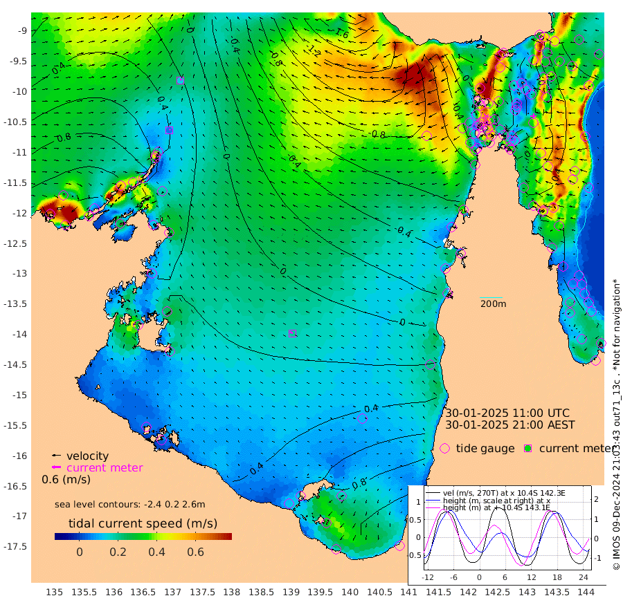 5cm/s 24T +3cm/s rms + 7cm/s -42T. ARA-GOC87 57m 20cm/s -59T +3cm/s rms + 2cm/s -2T. ARA-GOC87 60m 14cm/s 43T +2cm/s rms + 3cm/s 61T. ARA-GOC87 47m -1cm Daru 9cm Bobo Island 44cm Meer Island Barge 46cm Bramble Cay 25cm Unnamed Cay 26cm Pearce Cay 33cm Stephens Island 33cm Merrie England Shoals 3cm Mutacomal Reef 31cm Darnley Island Barge 49cm East Cay 11cm Yorke Island Barge 11cm Rennel Island 7cm Aureed Island -6cm Dungeness Reef -60cm Zagai Island -58cm Yam Island -90cm Dauan Island -101cm Saibai Island -45cm Phipi Reef -60cm Warrior Reef - West -100cm Mabuiag Island Barge 12cm Half Way Island -19cm Coconut Island -4cm Dugong Islet -39cm Poll Island -30cm Kirkcaldie Reef -65cm Suarji Island -49cm Sue Islet -87cm Hawkesbury Island -71cm Alert Patches -71cm Twin Island -92cm Badu Island -84cm St Pauls (Moa Island) -82cm Kubin (Moa Island) -83cm Ince Point -87cm Thursday Island -86cm Nardana Patches -78cm Turtle Head -74cm Round Island -78cm Goods Island -95cm Booby Island -87cm White Rocks Area -129cm Carpentaria -72cm Papou Point -101cm Bampfield Head -78cm Crab Island -97cm Red Wallis Island -79cm Packe Island -11cm Harrington Reef -79cm Herald Camp -28cm Sharp Point -65cm Red Island Point -62cm Possession Island -70cm Alpha Rock -48cm Frederick Point -15cm Wyborn Reef Light -28cm Tetley Island 20cm Triangle Reef -4cm Turtle Head Island 34cm Maclennan Cay 44cm Raine Island 18cm Mcsweeny Reef 26cm Collette Reef 35cm Shadwell Reef 37cm Hannibal Island 47cm Round Point -85cm Vrilya Point 43cm Cape Grenville 46cm Hicks Island 34cm Sir Charles Hardy Island 14cm Harvey Island 49cm Kay Reef 48cm Rocky Island 46cm Chapman Island 39cm Ham Reef 42cm Jubilee Reef 42cm Night Island 39cm Unnamed Reef No. 3 51cm Morris Island 45cm 1st 3 Mile Opening 45cm Creech Reef 46cm Fife Island 69cm Eden Reef 55cm Stanley Island 65cm Normanby River 110cm Yabooma Island 125cm Hutchison River 109cm Elcho Island 108cm North West Crocodile Island 31cm Cape Wessel 86cm Stevens Island 31cm Guluwuru Island 92cm Hopeful Bay 59cm Auster Point 61cm Two Island Bay 97cm Cadell Strait -21cm Mallison Island 39cm Melville Bay (Gove Harbour) 29cm Truant Island 19cm Cape Arnhem 31cm Cape Grey 44cm Hawk Island 46cm Milner Bay (Groote Eylandt) 49cm Cape Beatrice 42cm West Island 47cm Centre Island 108cm Mornington Island 101cm West Wellesley Islands 150cm Bountiful Island 191cm Albert River Mouth 207cm Sweers Island 192cm Karumba 90cm Nassau River Offshore 47cm Christmas Creek 4cm Archer River -37cm Boyd Point -20cm Weipa (Humbug Point) -41cm Pennefather River -73cm Cullen Point