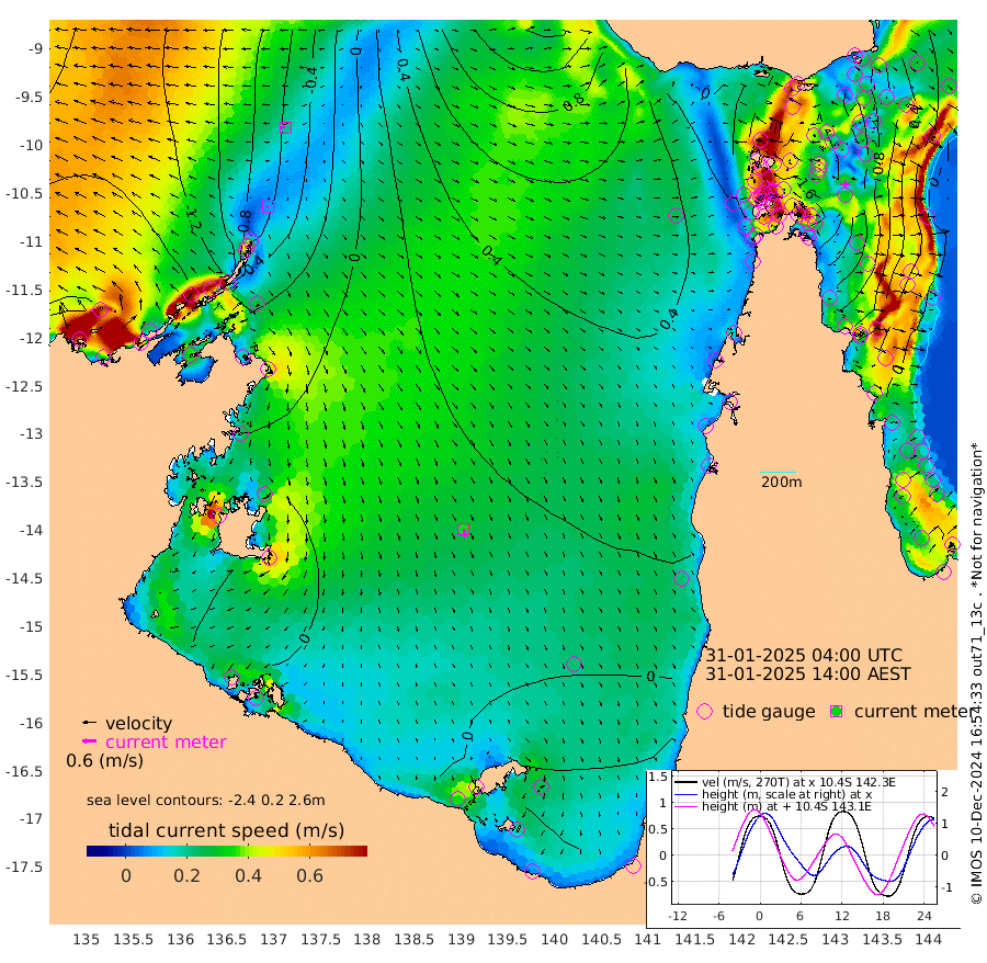 8cm/s -91T +3cm/s rms + 7cm/s -42T. ARA-GOC87 57m 35cm/s 166T +3cm/s rms + 2cm/s -2T. ARA-GOC87 60m 21cm/s -89T +2cm/s rms + 3cm/s 61T. ARA-GOC87 47m 133cm Daru 111cm Bobo Island 26cm Meer Island Barge 51cm Bramble Cay 94cm Unnamed Cay 90cm Pearce Cay 78cm Stephens Island 87cm Merrie England Shoals 129cm Mutacomal Reef 71cm Darnley Island Barge 29cm East Cay 99cm Yorke Island Barge 109cm Rennel Island 104cm Aureed Island 128cm Dungeness Reef 162cm Zagai Island 167cm Yam Island 184cm Dauan Island 177cm Saibai Island 164cm Phipi Reef 181cm Warrior Reef - West 145cm Mabuiag Island Barge 104cm Half Way Island 132cm Coconut Island 125cm Dugong Islet 148cm Poll Island 147cm Kirkcaldie Reef 159cm Suarji Island 150cm Sue Islet 96cm Hawkesbury Island 155cm Alert Patches 158cm Twin Island 107cm Badu Island 171cm St Pauls (Moa Island) 117cm Kubin (Moa Island) 146cm Ince Point 134cm Thursday Island 138cm Nardana Patches 118cm Turtle Head 97cm Round Island 82cm Goods Island 64cm Booby Island 64cm White Rocks Area 57cm Carpentaria 142cm Papou Point 68cm Bampfield Head 57cm Crab Island 77cm Red Wallis Island 109cm Packe Island 133cm Harrington Reef 94cm Herald Camp 58cm Sharp Point 96cm Red Island Point 118cm Possession Island 153cm Alpha Rock 151cm Frederick Point 135cm Wyborn Reef Light 145cm Tetley Island 47cm Triangle Reef 118cm Turtle Head Island 35cm Maclennan Cay 5cm Raine Island 90cm Mcsweeny Reef 75cm Collette Reef 37cm Shadwell Reef 73cm Hannibal Island 52cm Round Point 50cm Vrilya Point 44cm Cape Grenville 37cm Hicks Island 46cm Sir Charles Hardy Island 14cm Harvey Island 23cm Kay Reef 13cm Rocky Island 6cm Chapman Island 9cm Ham Reef 14cm Jubilee Reef 17cm Night Island 10cm Unnamed Reef No. 3 11cm Morris Island 7cm 1st 3 Mile Opening 12cm Creech Reef 22cm Fife Island -5cm Eden Reef 9cm Stanley Island 5cm Normanby River -153cm Yabooma Island -164cm Hutchison River -158cm Elcho Island -153cm North West Crocodile Island -70cm Cape Wessel -120cm Stevens Island -29cm Guluwuru Island -125cm Hopeful Bay -98cm Auster Point -95cm Two Island Bay -107cm Cadell Strait 101cm Mallison Island -41cm Melville Bay (Gove Harbour) -37cm Truant Island -18cm Cape Arnhem -32cm Cape Grey -32cm Hawk Island -54cm Milner Bay (Groote Eylandt) -42cm Cape Beatrice -39cm West Island -46cm Centre Island -25cm Mornington Island -23cm West Wellesley Islands -58cm Bountiful Island -95cm Albert River Mouth -128cm Sweers Island -83cm Karumba 8cm Nassau River Offshore 42cm Christmas Creek 33cm Archer River 51cm Boyd Point 39cm Weipa (Humbug Point) 36cm Pennefather River 54cm Cullen Point
