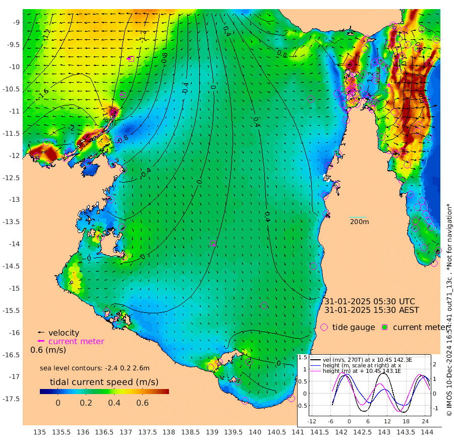 34cm/s -84T +3cm/s rms + 7cm/s -42T. ARA-GOC87 57m 29cm/s 171T +3cm/s rms + 2cm/s -2T. ARA-GOC87 60m 44cm/s -92T +2cm/s rms + 3cm/s 61T. ARA-GOC87 47m 27cm Daru 4cm Bobo Island -40cm Meer Island Barge -38cm Bramble Cay -11cm Unnamed Cay -17cm Pearce Cay -22cm Stephens Island -19cm Merrie England Shoals 20cm Mutacomal Reef -21cm Darnley Island Barge -42cm East Cay 1cm Yorke Island Barge 7cm Rennel Island 7cm Aureed Island 34cm Dungeness Reef 88cm Zagai Island 94cm Yam Island 147cm Dauan Island 143cm Saibai Island 125cm Phipi Reef 109cm Warrior Reef - West 117cm Mabuiag Island Barge 4cm Half Way Island 35cm Coconut Island 22cm Dugong Islet 61cm Poll Island 61cm Kirkcaldie Reef 90cm Suarji Island 69cm Sue Islet 91cm Hawkesbury Island 92cm Alert Patches 89cm Twin Island 99cm Badu Island 106cm St Pauls (Moa Island) 95cm Kubin (Moa Island) 101cm Ince Point 101cm Thursday Island 102cm Nardana Patches 97cm Turtle Head 88cm Round Island 82cm Goods Island 85cm Booby Island 73cm White Rocks Area 90cm Carpentaria 84cm Papou Point 79cm Bampfield Head 83cm Crab Island 95cm Red Wallis Island 101cm Packe Island 25cm Harrington Reef 108cm Herald Camp 44cm Sharp Point 83cm Red Island Point 79cm Possession Island 83cm Alpha Rock 65cm Frederick Point 24cm Wyborn Reef Light 38cm Tetley Island -13cm Triangle Reef 0cm Turtle Head Island -27cm Maclennan Cay -40cm Raine Island -7cm Mcsweeny Reef -13cm Collette Reef -25cm Shadwell Reef -25cm Hannibal Island -39cm Round Point 81cm Vrilya Point -32cm Cape Grenville -36cm Hicks Island -24cm Sir Charles Hardy Island -9cm Harvey Island -44cm Kay Reef -42cm Rocky Island -42cm Chapman Island -37cm Ham Reef -40cm Jubilee Reef -32cm Night Island -36cm Unnamed Reef No. 3 -47cm Morris Island -44cm 1st 3 Mile Opening -41cm Creech Reef -38cm Fife Island -67cm Eden Reef -49cm Stanley Island -63cm Normanby River -228cm Yabooma Island -259cm Hutchison River -227cm Elcho Island -215cm North West Crocodile Island -148cm Cape Wessel -206cm Stevens Island -128cm Guluwuru Island -192cm Hopeful Bay -174cm Auster Point -172cm Two Island Bay -215cm Cadell Strait -43cm Mallison Island -124cm Melville Bay (Gove Harbour) -127cm Truant Island -77cm Cape Arnhem -68cm Cape Grey -51cm Hawk Island -45cm Milner Bay (Groote Eylandt) -27cm Cape Beatrice 5cm West Island 5cm Centre Island 21cm Mornington Island 18cm West Wellesley Islands -9cm Bountiful Island -30cm Albert River Mouth -61cm Sweers Island -13cm Karumba 48cm Nassau River Offshore 71cm Christmas Creek 59cm Archer River 70cm Boyd Point 65cm Weipa (Humbug Point) 59cm Pennefather River 87cm Cullen Point