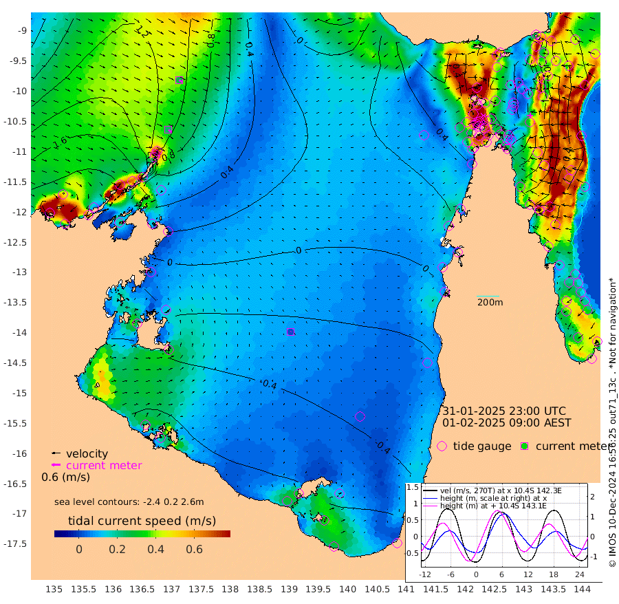 23cm/s 133T +3cm/s rms + 7cm/s -42T. ARA-GOC87 57m 2cm/s 37T +3cm/s rms + 2cm/s -2T. ARA-GOC87 60m 27cm/s 127T +2cm/s rms + 3cm/s 61T. ARA-GOC87 47m -26cm Daru -9cm Bobo Island 51cm Meer Island Barge 41cm Bramble Cay 12cm Unnamed Cay 19cm Pearce Cay 24cm Stephens Island 15cm Merrie England Shoals -16cm Mutacomal Reef 23cm Darnley Island Barge 55cm East Cay 0cm Yorke Island Barge 3cm Rennel Island -5cm Aureed Island -21cm Dungeness Reef -65cm Zagai Island -56cm Yam Island -79cm Dauan Island -81cm Saibai Island -87cm Phipi Reef -76cm Warrior Reef - West -39cm Mabuiag Island Barge 4cm Half Way Island -24cm Coconut Island -7cm Dugong Islet -37cm Poll Island -34cm Kirkcaldie Reef -52cm Suarji Island -45cm Sue Islet 76cm Hawkesbury Island -35cm Alert Patches -35cm Twin Island 42cm Badu Island -52cm St Pauls (Moa Island) 35cm Kubin (Moa Island) -20cm Ince Point -3cm Thursday Island -9cm Nardana Patches 25cm Turtle Head 39cm Round Island 78cm Goods Island 96cm Booby Island 99cm White Rocks Area 77cm Carpentaria -30cm Papou Point 100cm Bampfield Head 66cm Crab Island 83cm Red Wallis Island 45cm Packe Island -15cm Harrington Reef 62cm Herald Camp -38cm Sharp Point 24cm Red Island Point -8cm Possession Island -40cm Alpha Rock -30cm Frederick Point -17cm Wyborn Reef Light -26cm Tetley Island 34cm Triangle Reef 8cm Turtle Head Island 50cm Maclennan Cay 62cm Raine Island 11cm Mcsweeny Reef 15cm Collette Reef 37cm Shadwell Reef 22cm Hannibal Island 44cm Round Point 60cm Vrilya Point 42cm Cape Grenville 48cm Hicks Island 55cm Sir Charles Hardy Island 12cm Harvey Island 58cm Kay Reef 60cm Rocky Island 66cm Chapman Island 64cm Ham Reef 61cm Jubilee Reef 47cm Night Island 63cm Unnamed Reef No. 3 65cm Morris Island 67cm 1st 3 Mile Opening 63cm Creech Reef 52cm Fife Island 86cm Eden Reef 67cm Stanley Island 78cm Normanby River 213cm Yabooma Island 234cm Hutchison River 202cm Elcho Island 192cm North West Crocodile Island 128cm Cape Wessel 165cm Stevens Island 91cm Guluwuru Island 155cm Hopeful Bay 144cm Auster Point 145cm Two Island Bay 172cm Cadell Strait -34cm Mallison Island 82cm Melville Bay (Gove Harbour) 91cm Truant Island 42cm Cape Arnhem 16cm Cape Grey -11cm Hawk Island -39cm Milner Bay (Groote Eylandt) -47cm Cape Beatrice -91cm West Island -94cm Centre Island -121cm Mornington Island -111cm West Wellesley Islands -110cm Bountiful Island -128cm Albert River Mouth -144cm Sweers Island -138cm Karumba -88cm Nassau River Offshore -51cm Christmas Creek 8cm Archer River 25cm Boyd Point 37cm Weipa (Humbug Point) 24cm Pennefather River 47cm Cullen Point