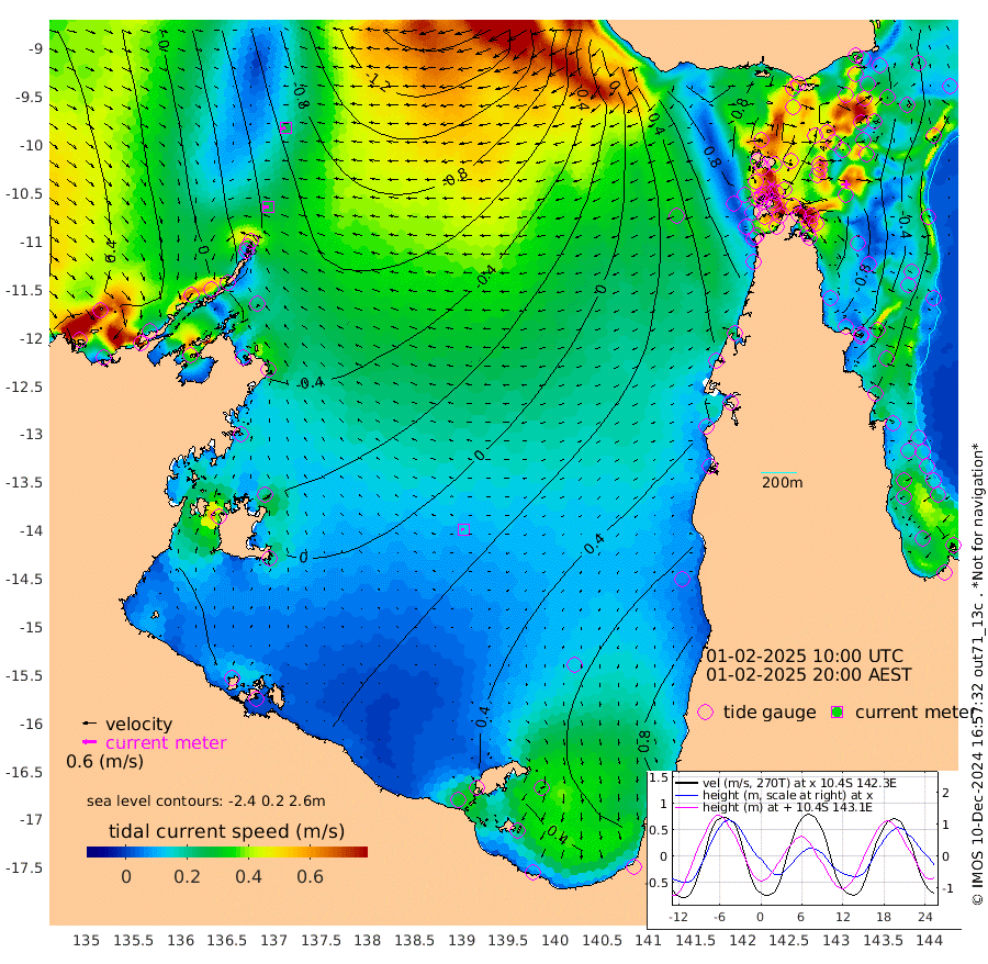 28cm/s -98T +3cm/s rms + 7cm/s -42T. ARA-GOC87 57m 14cm/s -92T +3cm/s rms + 2cm/s -2T. ARA-GOC87 60m 25cm/s -107T +2cm/s rms + 3cm/s 61T. ARA-GOC87 47m -97cm Daru -95cm Bobo Island -32cm Meer Island Barge -50cm Bramble Cay -81cm Unnamed Cay -77cm Pearce Cay -70cm Stephens Island -73cm Merrie England Shoals -93cm Mutacomal Reef -69cm Darnley Island Barge -30cm East Cay -86cm Yorke Island Barge -81cm Rennel Island -85cm Aureed Island -82cm Dungeness Reef -100cm Zagai Island -88cm Yam Island -62cm Dauan Island -76cm Saibai Island -45cm Phipi Reef -91cm Warrior Reef - West -54cm Mabuiag Island Barge -79cm Half Way Island -93cm Coconut Island -89cm Dugong Islet -90cm Poll Island -84cm Kirkcaldie Reef -86cm Suarji Island -100cm Sue Islet 28cm Hawkesbury Island -71cm Alert Patches -78cm Twin Island 13cm Badu Island -84cm St Pauls (Moa Island) -2cm Kubin (Moa Island) -49cm Ince Point -31cm Thursday Island -36cm Nardana Patches 1cm Turtle Head 12cm Round Island 41cm Goods Island 61cm Booby Island 53cm White Rocks Area 29cm Carpentaria -72cm Papou Point 34cm Bampfield Head 61cm Crab Island 57cm Red Wallis Island 30cm Packe Island -100cm Harrington Reef 46cm Herald Camp -28cm Sharp Point 5cm Red Island Point -40cm Possession Island -88cm Alpha Rock -90cm Frederick Point -106cm Wyborn Reef Light -108cm Tetley Island -35cm Triangle Reef -106cm Turtle Head Island -29cm Maclennan Cay -5cm Raine Island -77cm Mcsweeny Reef -65cm Collette Reef -32cm Shadwell Reef -68cm Hannibal Island -48cm Round Point 58cm Vrilya Point -39cm Cape Grenville -35cm Hicks Island -36cm Sir Charles Hardy Island -13cm Harvey Island -26cm Kay Reef -15cm Rocky Island -5cm Chapman Island -10cm Ham Reef -17cm Jubilee Reef -12cm Night Island -7cm Unnamed Reef No. 3 -14cm Morris Island -11cm 1st 3 Mile Opening -12cm Creech Reef -19cm Fife Island -6cm Eden Reef -12cm Stanley Island -16cm Normanby River 8cm Yabooma Island -7cm Hutchison River 7cm Elcho Island 14cm North West Crocodile Island -64cm Cape Wessel -30cm Stevens Island -101cm Guluwuru Island -11cm Hopeful Bay -44cm Auster Point -44cm Two Island Bay -51cm Cadell Strait -201cm Mallison Island -78cm Melville Bay (Gove Harbour) -90cm Truant Island -65cm Cape Arnhem -48cm Cape Grey -22cm Hawk Island -3cm Milner Bay (Groote Eylandt) 12cm Cape Beatrice 26cm West Island 36cm Centre Island 71cm Mornington Island 65cm West Wellesley Islands 87cm Bountiful Island 122cm Albert River Mouth 108cm Sweers Island 131cm Karumba 90cm Nassau River Offshore 79cm Christmas Creek 70cm Archer River 45cm Boyd Point 69cm Weipa (Humbug Point) 50cm Pennefather River 59cm Cullen Point