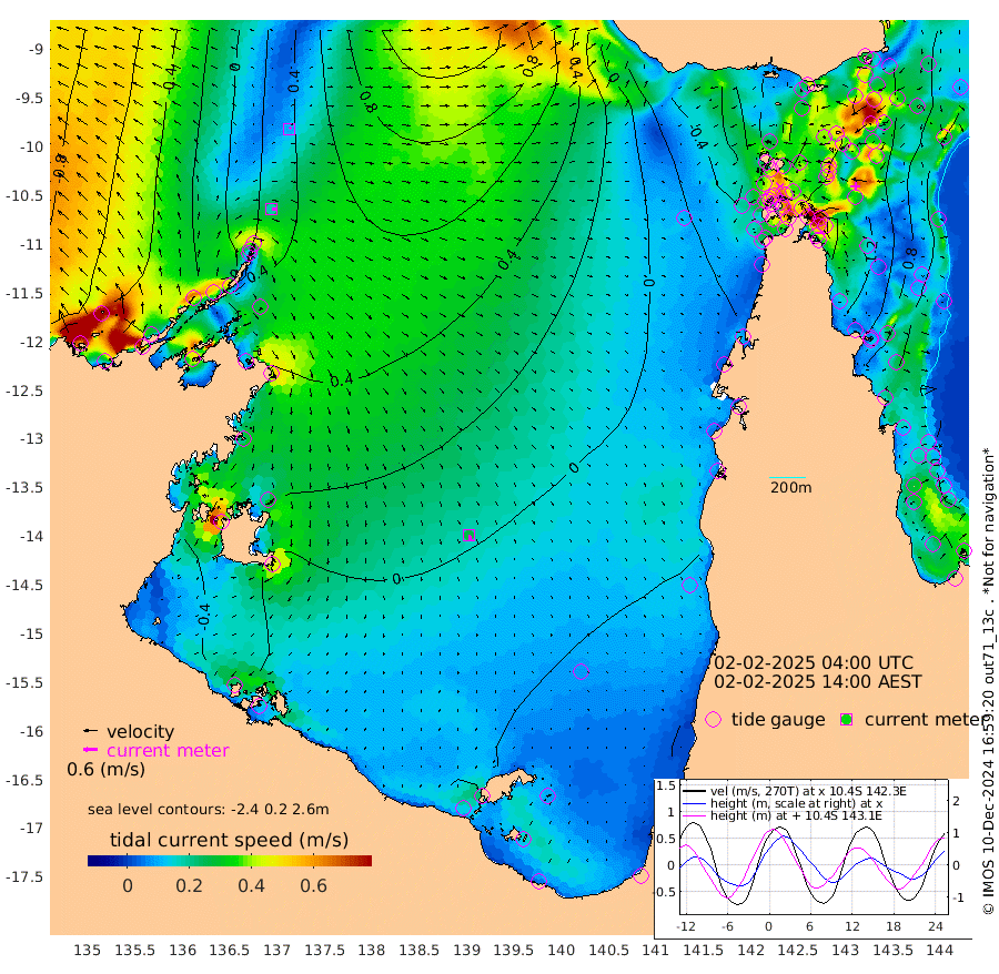18cm/s 90T +3cm/s rms + 7cm/s -42T. ARA-GOC87 57m 27cm/s 165T +3cm/s rms + 2cm/s -2T. ARA-GOC87 60m 10cm/s 60T +2cm/s rms + 3cm/s 61T. ARA-GOC87 47m 140cm Daru 132cm Bobo Island 65cm Meer Island Barge 88cm Bramble Cay 117cm Unnamed Cay 118cm Pearce Cay 111cm Stephens Island 110cm Merrie England Shoals 133cm Mutacomal Reef 105cm Darnley Island Barge 70cm East Cay 121cm Yorke Island Barge 123cm Rennel Island 120cm Aureed Island 126cm Dungeness Reef 134cm Zagai Island 136cm Yam Island 125cm Dauan Island 120cm Saibai Island 107cm Phipi Reef 146cm Warrior Reef - West 84cm Mabuiag Island Barge 121cm Half Way Island 127cm Coconut Island 132cm Dugong Islet 128cm Poll Island 131cm Kirkcaldie Reef 113cm Suarji Island 131cm Sue Islet 34cm Hawkesbury Island 103cm Alert Patches 114cm Twin Island 40cm Badu Island 120cm St Pauls (Moa Island) 60cm Kubin (Moa Island) 89cm Ince Point 72cm Thursday Island 77cm Nardana Patches 53cm Turtle Head 33cm Round Island 17cm Goods Island -11cm Booby Island -6cm White Rocks Area -17cm Carpentaria 105cm Papou Point -6cm Bampfield Head -10cm Crab Island 0cm Red Wallis Island 38cm Packe Island 136cm Harrington Reef 22cm Herald Camp 36cm Sharp Point 46cm Red Island Point 69cm Possession Island 114cm Alpha Rock 126cm Frederick Point 136cm Wyborn Reef Light 138cm Tetley Island 67cm Triangle Reef 135cm Turtle Head Island 66cm Maclennan Cay 38cm Raine Island 111cm Mcsweeny Reef 98cm Collette Reef 64cm Shadwell Reef 103cm Hannibal Island 87cm Round Point -18cm Vrilya Point 74cm Cape Grenville 74cm Hicks Island 81cm Sir Charles Hardy Island 25cm Harvey Island 59cm Kay Reef 49cm Rocky Island 38cm Chapman Island 42cm Ham Reef 50cm Jubilee Reef 46cm Night Island 41cm Unnamed Reef No. 3 49cm Morris Island 42cm 1st 3 Mile Opening 47cm Creech Reef 58cm Fife Island 46cm Eden Reef 48cm Stanley Island 56cm Normanby River -15cm Yabooma Island -1cm Hutchison River -21cm Elcho Island -22cm North West Crocodile Island 37cm Cape Wessel 8cm Stevens Island 86cm Guluwuru Island -10cm Hopeful Bay 15cm Auster Point 28cm Two Island Bay 55cm Cadell Strait 200cm Mallison Island 59cm Melville Bay (Gove Harbour) 67cm Truant Island 47cm Cape Arnhem 18cm Cape Grey -2cm Hawk Island -41cm Milner Bay (Groote Eylandt) -38cm Cape Beatrice -64cm West Island -76cm Centre Island -51cm Mornington Island -48cm West Wellesley Islands -68cm Bountiful Island -98cm Albert River Mouth -126cm Sweers Island -95cm Karumba -26cm Nassau River Offshore 0cm Christmas Creek -11cm Archer River 4cm Boyd Point -9cm Weipa (Humbug Point) -16cm Pennefather River -12cm Cullen Point