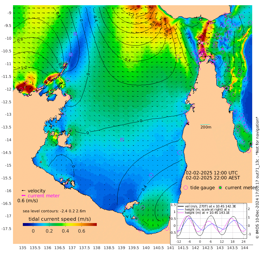 9cm/s 170T +3cm/s rms + 7cm/s -42T. ARA-GOC87 57m 15cm/s -69T +3cm/s rms + 2cm/s -2T. ARA-GOC87 60m 9cm/s 133T +2cm/s rms + 3cm/s 61T. ARA-GOC87 47m -46cm Daru -38cm Bobo Island 1cm Meer Island Barge -4cm Bramble Cay -30cm Unnamed Cay -16cm Pearce Cay -19cm Stephens Island -23cm Merrie England Shoals -43cm Mutacomal Reef -24cm Darnley Island Barge 5cm East Cay -39cm Yorke Island Barge -31cm Rennel Island -34cm Aureed Island -37cm Dungeness Reef -70cm Zagai Island -65cm Yam Island -56cm Dauan Island -79cm Saibai Island -33cm Phipi Reef -64cm Warrior Reef - West -57cm Mabuiag Island Barge -31cm Half Way Island -46cm Coconut Island -43cm Dugong Islet -52cm Poll Island -52cm Kirkcaldie Reef -60cm Suarji Island -71cm Sue Islet 1cm Hawkesbury Island -54cm Alert Patches -56cm Twin Island -2cm Badu Island -65cm St Pauls (Moa Island) -13cm Kubin (Moa Island) -45cm Ince Point -34cm Thursday Island -38cm Nardana Patches -10cm Turtle Head -9cm Round Island 16cm Goods Island 17cm Booby Island 21cm White Rocks Area -33cm Carpentaria -56cm Papou Point -8cm Bampfield Head 20cm Crab Island 15cm Red Wallis Island 8cm Packe Island -49cm Harrington Reef -1cm Herald Camp -28cm Sharp Point -9cm Red Island Point -36cm Possession Island -68cm Alpha Rock -55cm Frederick Point -53cm Wyborn Reef Light -58cm Tetley Island -6cm Triangle Reef -44cm Turtle Head Island -2cm Maclennan Cay 18cm Raine Island -28cm Mcsweeny Reef -22cm Collette Reef -3cm Shadwell Reef -19cm Hannibal Island 1cm Round Point 9cm Vrilya Point -5cm Cape Grenville 1cm Hicks Island -9cm Sir Charles Hardy Island -2cm Harvey Island 3cm Kay Reef 11cm Rocky Island 19cm Chapman Island 8cm Ham Reef 7cm Jubilee Reef 12cm Night Island 13cm Unnamed Reef No. 3 14cm Morris Island 13cm 1st 3 Mile Opening 11cm Creech Reef 15cm Fife Island 25cm Eden Reef 13cm Stanley Island 18cm Normanby River 129cm Yabooma Island 139cm Hutchison River 126cm Elcho Island 126cm North West Crocodile Island 30cm Cape Wessel 94cm Stevens Island -2cm Guluwuru Island 94cm Hopeful Bay 59cm Auster Point 57cm Two Island Bay 93cm Cadell Strait -102cm Mallison Island 16cm Melville Bay (Gove Harbour) 10cm Truant Island 0cm Cape Arnhem -2cm Cape Grey 11cm Hawk Island 11cm Milner Bay (Groote Eylandt) 16cm Cape Beatrice 1cm West Island 6cm Centre Island 51cm Mornington Island 47cm West Wellesley Islands 74cm Bountiful Island 120cm Albert River Mouth 117cm Sweers Island 120cm Karumba 66cm Nassau River Offshore 47cm Christmas Creek 38cm Archer River 9cm Boyd Point 33cm Weipa (Humbug Point) 18cm Pennefather River 8cm Cullen Point