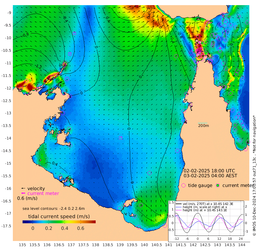13cm/s 18T +3cm/s rms + 7cm/s -42T. ARA-GOC87 57m 14cm/s 34T +3cm/s rms + 2cm/s -2T. ARA-GOC87 60m 13cm/s 11T +2cm/s rms + 3cm/s 61T. ARA-GOC87 47m 12cm Daru 8cm Bobo Island -22cm Meer Island Barge -21cm Bramble Cay -2cm Unnamed Cay -14cm Pearce Cay -10cm Stephens Island -4cm Merrie England Shoals 5cm Mutacomal Reef -2cm Darnley Island Barge -31cm East Cay 8cm Yorke Island Barge -6cm Rennel Island 6cm Aureed Island 1cm Dungeness Reef 27cm Zagai Island 7cm Yam Island -4cm Dauan Island 14cm Saibai Island 0cm Phipi Reef 15cm Warrior Reef - West -11cm Mabuiag Island Barge -4cm Half Way Island 11cm Coconut Island -1cm Dugong Islet 7cm Poll Island 4cm Kirkcaldie Reef 14cm Suarji Island 23cm Sue Islet -116cm Hawkesbury Island -1cm Alert Patches -2cm Twin Island -88cm Badu Island 6cm St Pauls (Moa Island) -78cm Kubin (Moa Island) -23cm Ince Point -38cm Thursday Island -34cm Nardana Patches -69cm Turtle Head -74cm Round Island -110cm Goods Island -118cm Booby Island -122cm White Rocks Area -60cm Carpentaria -5cm Papou Point -96cm Bampfield Head -97cm Crab Island -117cm Red Wallis Island -96cm Packe Island 8cm Harrington Reef -106cm Herald Camp 16cm Sharp Point -69cm Red Island Point -20cm Possession Island 11cm Alpha Rock 4cm Frederick Point 13cm Wyborn Reef Light 14cm Tetley Island -20cm Triangle Reef 4cm Turtle Head Island -28cm Maclennan Cay -37cm Raine Island -1cm Mcsweeny Reef -2cm Collette Reef -17cm Shadwell Reef -3cm Hannibal Island -26cm Round Point -79cm Vrilya Point -20cm Cape Grenville -27cm Hicks Island -32cm Sir Charles Hardy Island -6cm Harvey Island -28cm Kay Reef -33cm Rocky Island -41cm Chapman Island -35cm Ham Reef -32cm Jubilee Reef -27cm Night Island -38cm Unnamed Reef No. 3 -35cm Morris Island -33cm 1st 3 Mile Opening -34cm Creech Reef -32cm Fife Island -46cm Eden Reef -34cm Stanley Island -43cm Normanby River -156cm Yabooma Island -162cm Hutchison River -139cm Elcho Island -143cm North West Crocodile Island -56cm Cape Wessel -103cm Stevens Island -16cm Guluwuru Island -97cm Hopeful Bay -72cm Auster Point -79cm Two Island Bay -111cm Cadell Strait 101cm Mallison Island -20cm Melville Bay (Gove Harbour) -20cm Truant Island 3cm Cape Arnhem 21cm Cape Grey 25cm Hawk Island 49cm Milner Bay (Groote Eylandt) 39cm Cape Beatrice 70cm West Island 73cm Centre Island 43cm Mornington Island 40cm West Wellesley Islands 27cm Bountiful Island 22cm Albert River Mouth 61cm Sweers Island 18cm Karumba -9cm Nassau River Offshore -34cm Christmas Creek -56cm Archer River -54cm Boyd Point -76cm Weipa (Humbug Point) -46cm Pennefather River -76cm Cullen Point