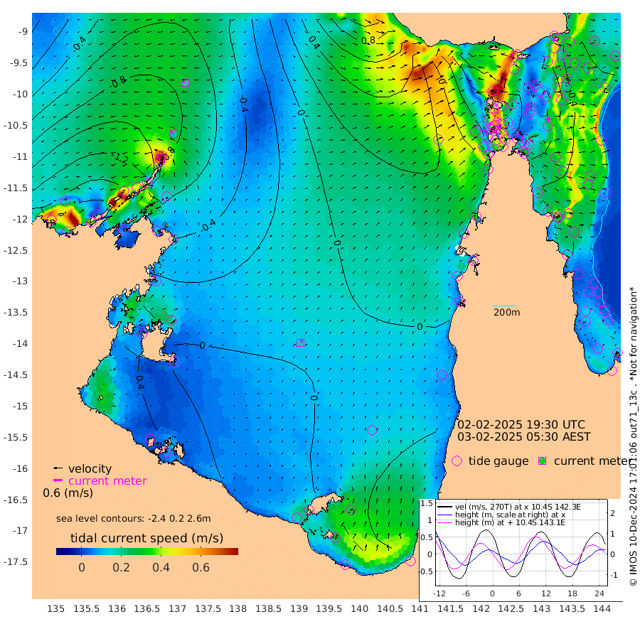 20cm/s -58T +3cm/s rms + 7cm/s -42T. ARA-GOC87 57m 17cm/s 32T +3cm/s rms + 2cm/s -2T. ARA-GOC87 60m 17cm/s -74T +2cm/s rms + 3cm/s 61T. ARA-GOC87 47m -51cm Daru -55cm Bobo Island -53cm Meer Island Barge -62cm Bramble Cay -53cm Unnamed Cay -71cm Pearce Cay -62cm Stephens Island -53cm Merrie England Shoals -48cm Mutacomal Reef -52cm Darnley Island Barge -63cm East Cay -46cm Yorke Island Barge -57cm Rennel Island -50cm Aureed Island -51cm Dungeness Reef -23cm Zagai Island -33cm Yam Island -36cm Dauan Island -10cm Saibai Island -39cm Phipi Reef -39cm Warrior Reef - West -9cm Mabuiag Island Barge -54cm Half Way Island -40cm Coconut Island -51cm Dugong Islet -38cm Poll Island -39cm Kirkcaldie Reef -17cm Suarji Island -19cm Sue Islet -54cm Hawkesbury Island -18cm Alert Patches -25cm Twin Island -46cm Badu Island -19cm St Pauls (Moa Island) -48cm Kubin (Moa Island) -23cm Ince Point -24cm Thursday Island -24cm Nardana Patches -41cm Turtle Head -31cm Round Island -50cm Goods Island -34cm Booby Island -43cm White Rocks Area 29cm Carpentaria -22cm Papou Point -12cm Bampfield Head -30cm Crab Island -39cm Red Wallis Island -52cm Packe Island -45cm Harrington Reef -39cm Herald Camp 7cm Sharp Point -39cm Red Island Point -16cm Possession Island -12cm Alpha Rock -33cm Frederick Point -42cm Wyborn Reef Light -38cm Tetley Island -47cm Triangle Reef -52cm Turtle Head Island -53cm Maclennan Cay -53cm Raine Island -51cm Mcsweeny Reef -47cm Collette Reef -45cm Shadwell Reef -52cm Hannibal Island -67cm Round Point -8cm Vrilya Point -51cm Cape Grenville -60cm Hicks Island -59cm Sir Charles Hardy Island -17cm Harvey Island -50cm Kay Reef -54cm Rocky Island -56cm Chapman Island -48cm Ham Reef -52cm Jubilee Reef -49cm Night Island -51cm Unnamed Reef No. 3 -57cm Morris Island -50cm 1st 3 Mile Opening -53cm Creech Reef -63cm Fife Island -68cm Eden Reef -54cm Stanley Island -68cm Normanby River -176cm Yabooma Island -200cm Hutchison River -163cm Elcho Island -162cm North West Crocodile Island -94cm Cape Wessel -143cm Stevens Island -87cm Guluwuru Island -126cm Hopeful Bay -107cm Auster Point -118cm Two Island Bay -184cm Cadell Strait -40cm Mallison Island -82cm Melville Bay (Gove Harbour) -84cm Truant Island -46cm Cape Arnhem -15cm Cape Grey -6cm Hawk Island 34cm Milner Bay (Groote Eylandt) 27cm Cape Beatrice 73cm West Island 80cm Centre Island 18cm Mornington Island 19cm West Wellesley Islands 3cm Bountiful Island -14cm Albert River Mouth 18cm Sweers Island -16cm Karumba -25cm Nassau River Offshore -35cm Christmas Creek -30cm Archer River -19cm Boyd Point -36cm Weipa (Humbug Point) -7cm Pennefather River -12cm Cullen Point