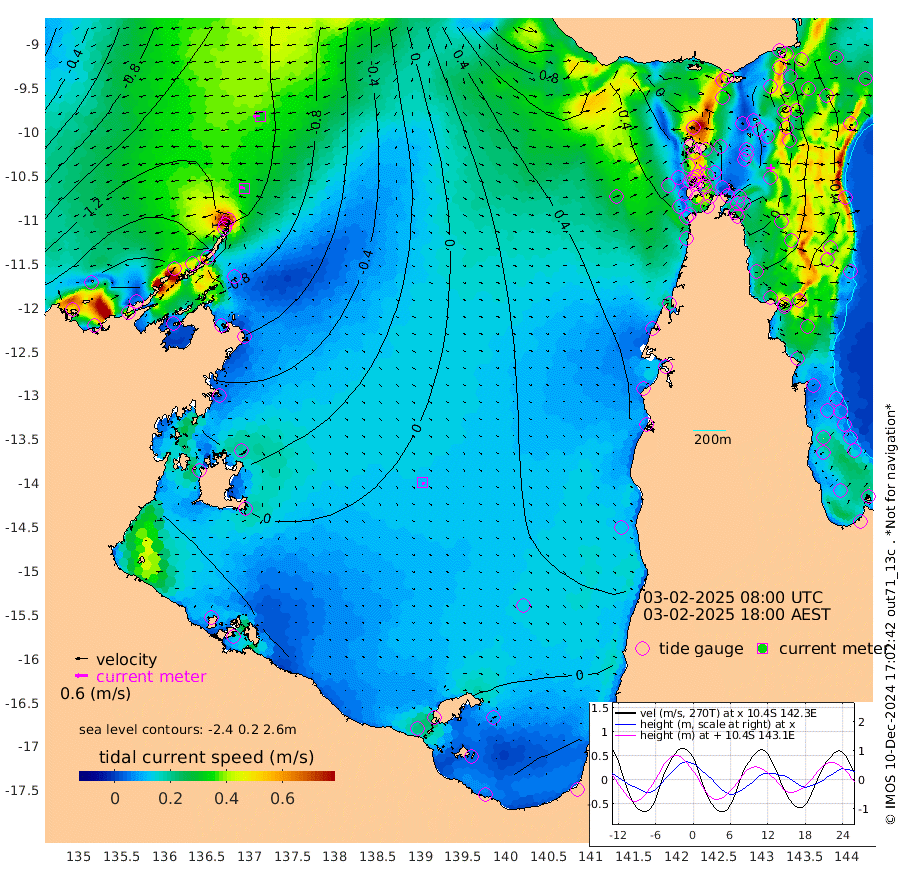 27cm/s -77T +3cm/s rms + 7cm/s -42T. ARA-GOC87 57m 11cm/s 151T +3cm/s rms + 2cm/s -2T. ARA-GOC87 60m 32cm/s -90T +2cm/s rms + 3cm/s 61T. ARA-GOC87 47m -20cm Daru -34cm Bobo Island -43cm Meer Island Barge -43cm Bramble Cay -32cm Unnamed Cay -47cm Pearce Cay -40cm Stephens Island -29cm Merrie England Shoals -15cm Mutacomal Reef -37cm Darnley Island Barge -44cm East Cay -29cm Yorke Island Barge -29cm Rennel Island -34cm Aureed Island -20cm Dungeness Reef 4cm Zagai Island 17cm Yam Island 19cm Dauan Island 32cm Saibai Island 9cm Phipi Reef 8cm Warrior Reef - West 27cm Mabuiag Island Barge -21cm Half Way Island -18cm Coconut Island -16cm Dugong Islet -4cm Poll Island 8cm Kirkcaldie Reef -4cm Suarji Island 7cm Sue Islet 27cm Hawkesbury Island 11cm Alert Patches 13cm Twin Island 17cm Badu Island 17cm St Pauls (Moa Island) 18cm Kubin (Moa Island) 21cm Ince Point 24cm Thursday Island 23cm Nardana Patches 17cm Turtle Head 15cm Round Island 15cm Goods Island 29cm Booby Island 18cm White Rocks Area 58cm Carpentaria 16cm Papou Point 8cm Bampfield Head 40cm Crab Island 38cm Red Wallis Island 28cm Packe Island -18cm Harrington Reef 36cm Herald Camp 20cm Sharp Point 29cm Red Island Point 7cm Possession Island 17cm Alpha Rock 0cm Frederick Point -22cm Wyborn Reef Light -15cm Tetley Island -32cm Triangle Reef -34cm Turtle Head Island -35cm Maclennan Cay -40cm Raine Island -34cm Mcsweeny Reef -32cm Collette Reef -34cm Shadwell Reef -38cm Hannibal Island -47cm Round Point 56cm Vrilya Point -34cm Cape Grenville -42cm Hicks Island -37cm Sir Charles Hardy Island -11cm Harvey Island -37cm Kay Reef -42cm Rocky Island -44cm Chapman Island -36cm Ham Reef -39cm Jubilee Reef -35cm Night Island -35cm Unnamed Reef No. 3 -45cm Morris Island -46cm 1st 3 Mile Opening -40cm Creech Reef -46cm Fife Island -56cm Eden Reef -40cm Stanley Island -49cm Normanby River -192cm Yabooma Island -230cm Hutchison River -192cm Elcho Island -177cm North West Crocodile Island -131cm Cape Wessel -175cm Stevens Island -127cm Guluwuru Island -162cm Hopeful Bay -152cm Auster Point -143cm Two Island Bay -191cm Cadell Strait -58cm Mallison Island -127cm Melville Bay (Gove Harbour) -133cm Truant Island -86cm Cape Arnhem -64cm Cape Grey -50cm Hawk Island -22cm Milner Bay (Groote Eylandt) -8cm Cape Beatrice 34cm West Island 37cm Centre Island 21cm Mornington Island 19cm West Wellesley Islands -10cm Bountiful Island -16cm Albert River Mouth -40cm Sweers Island -5cm Karumba 30cm Nassau River Offshore 37cm Christmas Creek 29cm Archer River 31cm Boyd Point 22cm Weipa (Humbug Point) 41cm Pennefather River 49cm Cullen Point