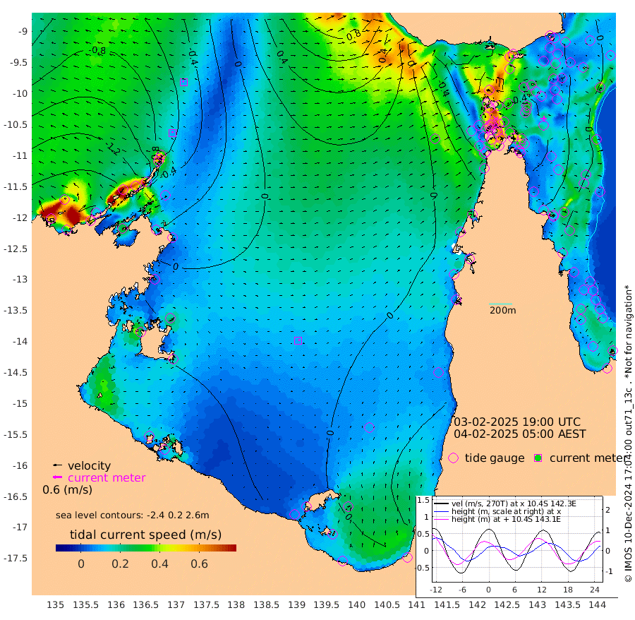 10cm/s -12T +3cm/s rms + 7cm/s -42T. ARA-GOC87 57m 10cm/s 65T +3cm/s rms + 2cm/s -2T. ARA-GOC87 60m 10cm/s -33T +2cm/s rms + 3cm/s 61T. ARA-GOC87 47m 18cm Daru 14cm Bobo Island -1cm Meer Island Barge -1cm Bramble Cay 14cm Unnamed Cay -1cm Pearce Cay 7cm Stephens Island 14cm Merrie England Shoals 16cm Mutacomal Reef 15cm Darnley Island Barge -9cm East Cay 20cm Yorke Island Barge 7cm Rennel Island 15cm Aureed Island 9cm Dungeness Reef 20cm Zagai Island 5cm Yam Island -15cm Dauan Island 3cm Saibai Island -8cm Phipi Reef 7cm Warrior Reef - West -13cm Mabuiag Island Barge 10cm Half Way Island 17cm Coconut Island 12cm Dugong Islet 9cm Poll Island 11cm Kirkcaldie Reef 13cm Suarji Island 24cm Sue Islet -87cm Hawkesbury Island 6cm Alert Patches 3cm Twin Island -68cm Badu Island 6cm St Pauls (Moa Island) -58cm Kubin (Moa Island) -14cm Ince Point -24cm Thursday Island -22cm Nardana Patches -48cm Turtle Head -52cm Round Island -77cm Goods Island -77cm Booby Island -84cm White Rocks Area -19cm Carpentaria -4cm Papou Point -56cm Bampfield Head -65cm Crab Island -79cm Red Wallis Island -67cm Packe Island 18cm Harrington Reef -72cm Herald Camp 13cm Sharp Point -51cm Red Island Point -10cm Possession Island 14cm Alpha Rock 10cm Frederick Point 19cm Wyborn Reef Light 18cm Tetley Island -4cm Triangle Reef 14cm Turtle Head Island -6cm Maclennan Cay -14cm Raine Island 13cm Mcsweeny Reef 13cm Collette Reef 3cm Shadwell Reef 15cm Hannibal Island -6cm Round Point -44cm Vrilya Point 3cm Cape Grenville -6cm Hicks Island -7cm Sir Charles Hardy Island 1cm Harvey Island -2cm Kay Reef -10cm Rocky Island -18cm Chapman Island -11cm Ham Reef -8cm Jubilee Reef -6cm Night Island -13cm Unnamed Reef No. 3 -10cm Morris Island -7cm 1st 3 Mile Opening -8cm Creech Reef -12cm Fife Island -16cm Eden Reef -7cm Stanley Island -16cm Normanby River -179cm Yabooma Island -188cm Hutchison River -162cm Elcho Island -167cm North West Crocodile Island -78cm Cape Wessel -131cm Stevens Island -36cm Guluwuru Island -120cm Hopeful Bay -94cm Auster Point -101cm Two Island Bay -143cm Cadell Strait 74cm Mallison Island -43cm Melville Bay (Gove Harbour) -43cm Truant Island -14cm Cape Arnhem 5cm Cape Grey 9cm Hawk Island 31cm Milner Bay (Groote Eylandt) 26cm Cape Beatrice 58cm West Island 63cm Centre Island 31cm Mornington Island 30cm West Wellesley Islands 10cm Bountiful Island -6cm Albert River Mouth 24cm Sweers Island -8cm Karumba -7cm Nassau River Offshore -19cm Christmas Creek -32cm Archer River -27cm Boyd Point -47cm Weipa (Humbug Point) -20cm Pennefather River -44cm Cullen Point