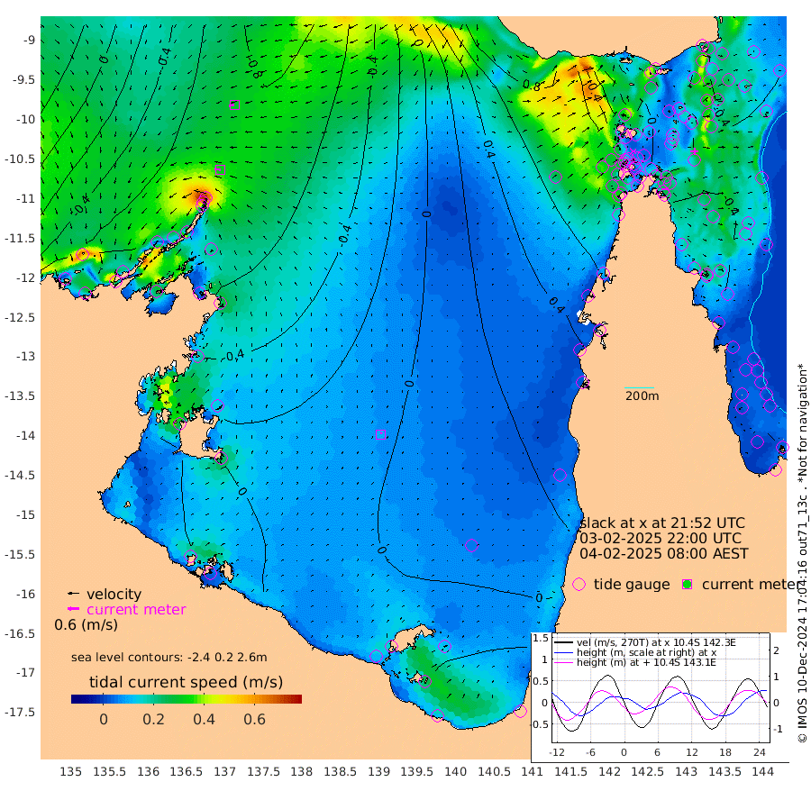 32cm/s -86T +3cm/s rms + 7cm/s -42T. ARA-GOC87 57m 9cm/s 21T +3cm/s rms + 2cm/s -2T. ARA-GOC87 60m 30cm/s -102T +2cm/s rms + 3cm/s 61T. ARA-GOC87 47m -52cm Daru -55cm Bobo Island -34cm Meer Island Barge -40cm Bramble Cay -38cm Unnamed Cay -53cm Pearce Cay -47cm Stephens Island -36cm Merrie England Shoals -36cm Mutacomal Reef -44cm Darnley Island Barge -36cm East Cay -45cm Yorke Island Barge -40cm Rennel Island -45cm Aureed Island -39cm Dungeness Reef -35cm Zagai Island -30cm Yam Island -31cm Dauan Island -19cm Saibai Island -31cm Phipi Reef -46cm Warrior Reef - West 16cm Mabuiag Island Barge -42cm Half Way Island -35cm Coconut Island -37cm Dugong Islet -29cm Poll Island -30cm Kirkcaldie Reef 0cm Suarji Island -23cm Sue Islet 58cm Hawkesbury Island 10cm Alert Patches -2cm Twin Island 41cm Badu Island -5cm St Pauls (Moa Island) 31cm Kubin (Moa Island) 16cm Ince Point 29cm Thursday Island 26cm Nardana Patches 36cm Turtle Head 55cm Round Island 61cm Goods Island 86cm Booby Island 83cm White Rocks Area 105cm Carpentaria -4cm Papou Point 106cm Bampfield Head 62cm Crab Island 76cm Red Wallis Island 44cm Packe Island -35cm Harrington Reef 69cm Herald Camp -2cm Sharp Point 29cm Red Island Point 26cm Possession Island 0cm Alpha Rock -19cm Frederick Point -35cm Wyborn Reef Light -32cm Tetley Island -26cm Triangle Reef -38cm Turtle Head Island -26cm Maclennan Cay -23cm Raine Island -39cm Mcsweeny Reef -34cm Collette Reef -26cm Shadwell Reef -39cm Hannibal Island -39cm Round Point 69cm Vrilya Point -25cm Cape Grenville -35cm Hicks Island -29cm Sir Charles Hardy Island -11cm Harvey Island -20cm Kay Reef -24cm Rocky Island -20cm Chapman Island -19cm Ham Reef -25cm Jubilee Reef -25cm Night Island -19cm Unnamed Reef No. 3 -25cm Morris Island -18cm 1st 3 Mile Opening -23cm Creech Reef -40cm Fife Island -31cm Eden Reef -21cm Stanley Island -31cm Normanby River -81cm Yabooma Island -107cm Hutchison River -83cm Elcho Island -81cm North West Crocodile Island -77cm Cape Wessel -93cm Stevens Island -111cm Guluwuru Island -74cm Hopeful Bay -74cm Auster Point -90cm Two Island Bay -153cm Cadell Strait -186cm Mallison Island -93cm Melville Bay (Gove Harbour) -97cm Truant Island -68cm Cape Arnhem -38cm Cape Grey -27cm Hawk Island 3cm Milner Bay (Groote Eylandt) 4cm Cape Beatrice 38cm West Island 45cm Centre Island -10cm Mornington Island -2cm West Wellesley Islands -7cm Bountiful Island -32cm Albert River Mouth -19cm Sweers Island -31cm Karumba -20cm Nassau River Offshore -10cm Christmas Creek 20cm Archer River 33cm Boyd Point 34cm Weipa (Humbug Point) 39cm Pennefather River 61cm Cullen Point
