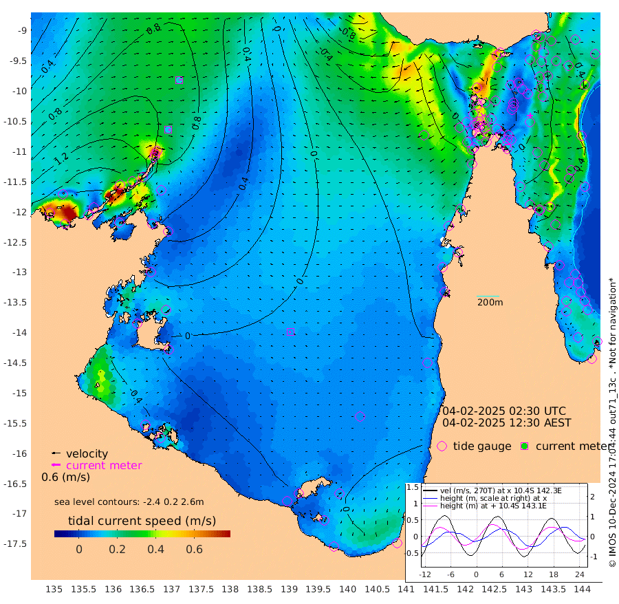 13cm/s 106T +3cm/s rms + 7cm/s -42T. ARA-GOC87 57m 8cm/s -130T +3cm/s rms + 2cm/s -2T. ARA-GOC87 60m 16cm/s 86T +2cm/s rms + 3cm/s 61T. ARA-GOC87 47m 33cm Daru 40cm Bobo Island 38cm Meer Island Barge 41cm Bramble Cay 35cm Unnamed Cay 48cm Pearce Cay 40cm Stephens Island 26cm Merrie England Shoals 27cm Mutacomal Reef 36cm Darnley Island Barge 45cm East Cay 34cm Yorke Island Barge 39cm Rennel Island 38cm Aureed Island 35cm Dungeness Reef 28cm Zagai Island 29cm Yam Island 45cm Dauan Island 32cm Saibai Island 34cm Phipi Reef 37cm Warrior Reef - West 24cm Mabuiag Island Barge 28cm Half Way Island 28cm Coconut Island 31cm Dugong Islet 28cm Poll Island 19cm Kirkcaldie Reef 29cm Suarji Island 20cm Sue Islet 44cm Hawkesbury Island 17cm Alert Patches 20cm Twin Island 38cm Badu Island 20cm St Pauls (Moa Island) 39cm Kubin (Moa Island) 20cm Ince Point 18cm Thursday Island 20cm Nardana Patches 30cm Turtle Head 35cm Round Island 37cm Goods Island 21cm Booby Island 31cm White Rocks Area -21cm Carpentaria 23cm Papou Point 37cm Bampfield Head 3cm Crab Island 19cm Red Wallis Island 28cm Packe Island 28cm Harrington Reef 38cm Herald Camp -7cm Sharp Point 23cm Red Island Point 23cm Possession Island 15cm Alpha Rock 25cm Frederick Point 32cm Wyborn Reef Light 30cm Tetley Island 36cm Triangle Reef 36cm Turtle Head Island 39cm Maclennan Cay 37cm Raine Island 34cm Mcsweeny Reef 31cm Collette Reef 31cm Shadwell Reef 32cm Hannibal Island 43cm Round Point -23cm Vrilya Point 31cm Cape Grenville 43cm Hicks Island 50cm Sir Charles Hardy Island 11cm Harvey Island 33cm Kay Reef 41cm Rocky Island 43cm Chapman Island 39cm Ham Reef 38cm Jubilee Reef 30cm Night Island 36cm Unnamed Reef No. 3 40cm Morris Island 38cm 1st 3 Mile Opening 36cm Creech Reef 43cm Fife Island 48cm Eden Reef 34cm Stanley Island 46cm Normanby River 193cm Yabooma Island 222cm Hutchison River 182cm Elcho Island 175cm North West Crocodile Island 127cm Cape Wessel 160cm Stevens Island 118cm Guluwuru Island 147cm Hopeful Bay 137cm Auster Point 140cm Two Island Bay 188cm Cadell Strait 46cm Mallison Island 111cm Melville Bay (Gove Harbour) 117cm Truant Island 70cm Cape Arnhem 42cm Cape Grey 24cm Hawk Island -17cm Milner Bay (Groote Eylandt) -21cm Cape Beatrice -69cm West Island -78cm Centre Island -46cm Mornington Island -43cm West Wellesley Islands -13cm Bountiful Island -22cm Albert River Mouth -32cm Sweers Island -26cm Karumba -29cm Nassau River Offshore -16cm Christmas Creek -8cm Archer River 0cm Boyd Point 11cm Weipa (Humbug Point) -32cm Pennefather River -8cm Cullen Point