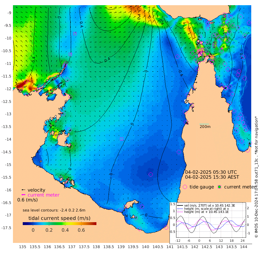 16cm/s 56T +3cm/s rms + 7cm/s -42T. ARA-GOC87 57m 13cm/s 168T +3cm/s rms + 2cm/s -2T. ARA-GOC87 60m 16cm/s 34T +2cm/s rms + 3cm/s 61T. ARA-GOC87 47m 70cm Daru 69cm Bobo Island 40cm Meer Island Barge 47cm Bramble Cay 58cm Unnamed Cay 56cm Pearce Cay 59cm Stephens Island 51cm Merrie England Shoals 59cm Mutacomal Reef 61cm Darnley Island Barge 42cm East Cay 66cm Yorke Island Barge 57cm Rennel Island 60cm Aureed Island 54cm Dungeness Reef 61cm Zagai Island 60cm Yam Island 46cm Dauan Island 54cm Saibai Island 34cm Phipi Reef 68cm Warrior Reef - West 10cm Mabuiag Island Barge 57cm Half Way Island 52cm Coconut Island 61cm Dugong Islet 49cm Poll Island 54cm Kirkcaldie Reef 28cm Suarji Island 58cm Sue Islet -48cm Hawkesbury Island 14cm Alert Patches 26cm Twin Island -46cm Badu Island 30cm St Pauls (Moa Island) -22cm Kubin (Moa Island) 4cm Ince Point -13cm Thursday Island -8cm Nardana Patches -31cm Turtle Head -39cm Round Island -63cm Goods Island -85cm Booby Island -85cm White Rocks Area -69cm Carpentaria 29cm Papou Point -79cm Bampfield Head -70cm Crab Island -76cm Red Wallis Island -44cm Packe Island 58cm Harrington Reef -45cm Herald Camp 14cm Sharp Point -22cm Red Island Point -4cm Possession Island 35cm Alpha Rock 43cm Frederick Point 59cm Wyborn Reef Light 58cm Tetley Island 33cm Triangle Reef 55cm Turtle Head Island 37cm Maclennan Cay 21cm Raine Island 54cm Mcsweeny Reef 49cm Collette Reef 34cm Shadwell Reef 53cm Hannibal Island 42cm Round Point -71cm Vrilya Point 39cm Cape Grenville 42cm Hicks Island 49cm Sir Charles Hardy Island 15cm Harvey Island 32cm Kay Reef 29cm Rocky Island 20cm Chapman Island 27cm Ham Reef 30cm Jubilee Reef 25cm Night Island 23cm Unnamed Reef No. 3 28cm Morris Island 21cm 1st 3 Mile Opening 27cm Creech Reef 35cm Fife Island 30cm Eden Reef 28cm Stanley Island 35cm Normanby River -19cm Yabooma Island -8cm Hutchison River -19cm Elcho Island -18cm North West Crocodile Island 34cm Cape Wessel 3cm Stevens Island 79cm Guluwuru Island -5cm Hopeful Bay 12cm Auster Point 30cm Two Island Bay 49cm Cadell Strait 187cm Mallison Island 53cm Melville Bay (Gove Harbour) 57cm Truant Island 43cm Cape Arnhem 26cm Cape Grey 13cm Hawk Island -10cm Milner Bay (Groote Eylandt) -10cm Cape Beatrice -24cm West Island -32cm Centre Island -8cm Mornington Island -10cm West Wellesley Islands -14cm Bountiful Island -28cm Albert River Mouth -41cm Sweers Island -26cm Karumba -10cm Nassau River Offshore -7cm Christmas Creek -34cm Archer River -29cm Boyd Point -41cm Weipa (Humbug Point) -53cm Pennefather River -55cm Cullen Point
