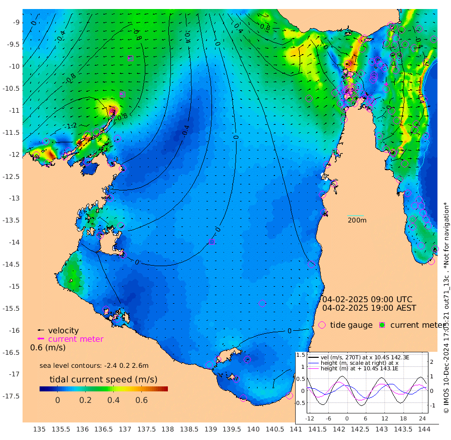 23cm/s -73T +3cm/s rms + 7cm/s -42T. ARA-GOC87 57m 5cm/s 88T +3cm/s rms + 2cm/s -2T. ARA-GOC87 60m 24cm/s -89T +2cm/s rms + 3cm/s 61T. ARA-GOC87 47m -25cm Daru -34cm Bobo Island -40cm Meer Island Barge -37cm Bramble Cay -28cm Unnamed Cay -43cm Pearce Cay -36cm Stephens Island -21cm Merrie England Shoals -14cm Mutacomal Reef -36cm Darnley Island Barge -39cm East Cay -30cm Yorke Island Barge -28cm Rennel Island -36cm Aureed Island -26cm Dungeness Reef -16cm Zagai Island 0cm Yam Island -19cm Dauan Island -4cm Saibai Island -22cm Phipi Reef -18cm Warrior Reef - West 3cm Mabuiag Island Barge -19cm Half Way Island -23cm Coconut Island -17cm Dugong Islet -13cm Poll Island 0cm Kirkcaldie Reef -20cm Suarji Island -5cm Sue Islet 12cm Hawkesbury Island -3cm Alert Patches -1cm Twin Island -4cm Badu Island -1cm St Pauls (Moa Island) 0cm Kubin (Moa Island) 3cm Ince Point 7cm Thursday Island 5cm Nardana Patches -2cm Turtle Head 0cm Round Island -2cm Goods Island 13cm Booby Island 7cm White Rocks Area 41cm Carpentaria 3cm Papou Point -9cm Bampfield Head 25cm Crab Island 21cm Red Wallis Island 10cm Packe Island -18cm Harrington Reef 15cm Herald Camp 13cm Sharp Point 16cm Red Island Point -5cm Possession Island 6cm Alpha Rock -9cm Frederick Point -23cm Wyborn Reef Light -18cm Tetley Island -34cm Triangle Reef -30cm Turtle Head Island -34cm Maclennan Cay -39cm Raine Island -32cm Mcsweeny Reef -30cm Collette Reef -33cm Shadwell Reef -33cm Hannibal Island -39cm Round Point 43cm Vrilya Point -28cm Cape Grenville -38cm Hicks Island -38cm Sir Charles Hardy Island -9cm Harvey Island -30cm Kay Reef -39cm Rocky Island -41cm Chapman Island -34cm Ham Reef -36cm Jubilee Reef -33cm Night Island -33cm Unnamed Reef No. 3 -40cm Morris Island -44cm 1st 3 Mile Opening -37cm Creech Reef -45cm Fife Island -49cm Eden Reef -34cm Stanley Island -39cm Normanby River -151cm Yabooma Island -189cm Hutchison River -154cm Elcho Island -138cm North West Crocodile Island -110cm Cape Wessel -139cm Stevens Island -119cm Guluwuru Island -129cm Hopeful Bay -124cm Auster Point -115cm Two Island Bay -162cm Cadell Strait -78cm Mallison Island -116cm Melville Bay (Gove Harbour) -122cm Truant Island -82cm Cape Arnhem -57cm Cape Grey -42cm Hawk Island -9cm Milner Bay (Groote Eylandt) 2cm Cape Beatrice 44cm West Island 47cm Centre Island 20cm Mornington Island 20cm West Wellesley Islands -8cm Bountiful Island -8cm Albert River Mouth -23cm Sweers Island 2cm Karumba 21cm Nassau River Offshore 20cm Christmas Creek 14cm Archer River 12cm Boyd Point 4cm Weipa (Humbug Point) 31cm Pennefather River 32cm Cullen Point