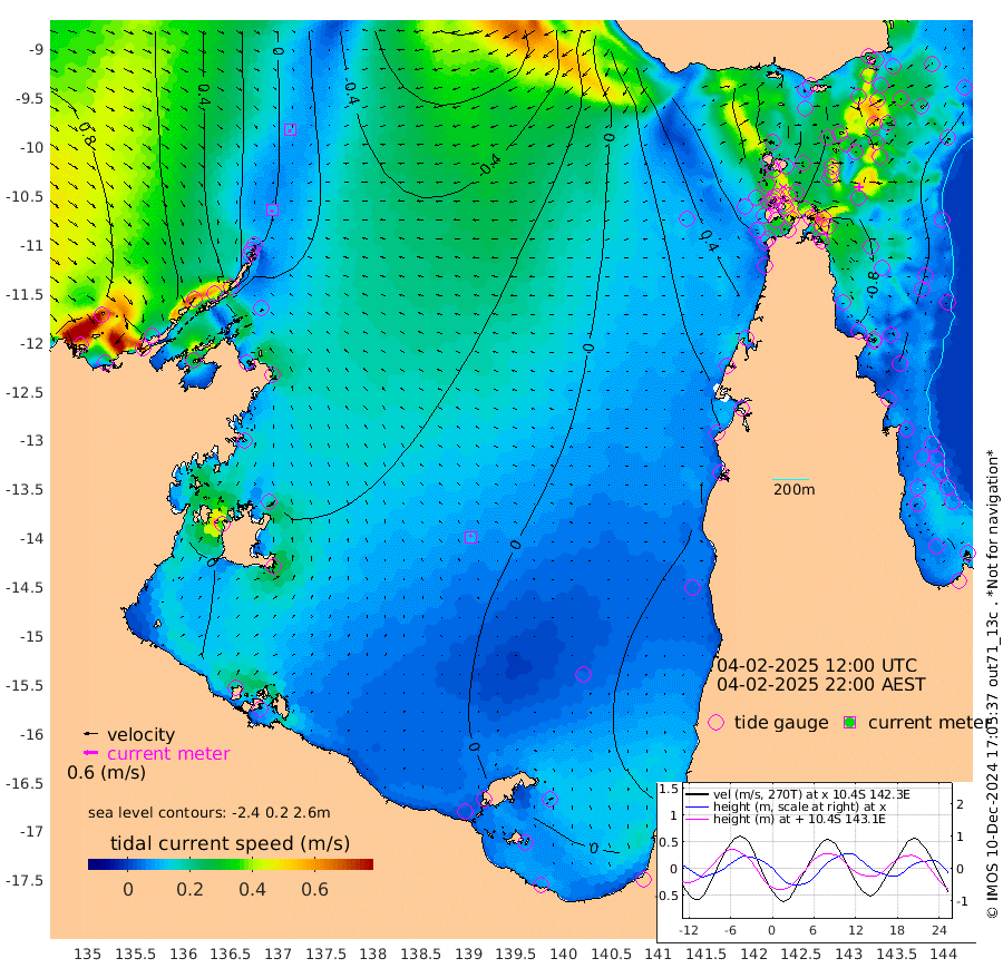12cm/s -148T +3cm/s rms + 7cm/s -42T. ARA-GOC87 57m 11cm/s -27T +3cm/s rms + 2cm/s -2T. ARA-GOC87 60m 13cm/s -169T +2cm/s rms + 3cm/s 61T. ARA-GOC87 47m -74cm Daru -75cm Bobo Island -55cm Meer Island Barge -58cm Bramble Cay -71cm Unnamed Cay -62cm Pearce Cay -70cm Stephens Island -64cm Merrie England Shoals -65cm Mutacomal Reef -75cm Darnley Island Barge -53cm East Cay -78cm Yorke Island Barge -65cm Rennel Island -72cm Aureed Island -60cm Dungeness Reef -62cm Zagai Island -50cm Yam Island -32cm Dauan Island -43cm Saibai Island -28cm Phipi Reef -59cm Warrior Reef - West -7cm Mabuiag Island Barge -62cm Half Way Island -62cm Coconut Island -66cm Dugong Islet -51cm Poll Island -52cm Kirkcaldie Reef -46cm Suarji Island -63cm Sue Islet 62cm Hawkesbury Island -26cm Alert Patches -30cm Twin Island 52cm Badu Island -32cm St Pauls (Moa Island) 30cm Kubin (Moa Island) -6cm Ince Point 11cm Thursday Island 6cm Nardana Patches 28cm Turtle Head 33cm Round Island 61cm Goods Island 78cm Booby Island 79cm White Rocks Area 45cm Carpentaria -24cm Papou Point 45cm Bampfield Head 76cm Crab Island 79cm Red Wallis Island 52cm Packe Island -67cm Harrington Reef 46cm Herald Camp -12cm Sharp Point 36cm Red Island Point -9cm Possession Island -40cm Alpha Rock -47cm Frederick Point -69cm Wyborn Reef Light -65cm Tetley Island -45cm Triangle Reef -66cm Turtle Head Island -50cm Maclennan Cay -34cm Raine Island -68cm Mcsweeny Reef -65cm Collette Reef -51cm Shadwell Reef -70cm Hannibal Island -54cm Round Point 74cm Vrilya Point -55cm Cape Grenville -54cm Hicks Island -63cm Sir Charles Hardy Island -19cm Harvey Island -49cm Kay Reef -45cm Rocky Island -35cm Chapman Island -41cm Ham Reef -44cm Jubilee Reef -38cm Night Island -36cm Unnamed Reef No. 3 -45cm Morris Island -43cm 1st 3 Mile Opening -44cm Creech Reef -45cm Fife Island -48cm Eden Reef -45cm Stanley Island -47cm Normanby River 67cm Yabooma Island 53cm Hutchison River 59cm Elcho Island 67cm North West Crocodile Island -10cm Cape Wessel 37cm Stevens Island -64cm Guluwuru Island 35cm Hopeful Bay 10cm Auster Point 7cm Two Island Bay 13cm Cadell Strait -164cm Mallison Island -42cm Melville Bay (Gove Harbour) -47cm Truant Island -42cm Cape Arnhem -35cm Cape Grey -23cm Hawk Island -6cm Milner Bay (Groote Eylandt) -2cm Cape Beatrice 2cm West Island 6cm Centre Island 1cm Mornington Island 1cm West Wellesley Islands 2cm Bountiful Island 34cm Albert River Mouth 24cm Sweers Island 37cm Karumba 22cm Nassau River Offshore 18cm Christmas Creek 36cm Archer River 24cm Boyd Point 39cm Weipa (Humbug Point) 52cm Pennefather River 56cm Cullen Point
