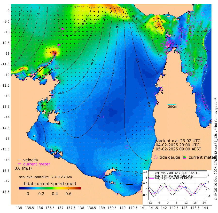 35cm/s -88T +3cm/s rms + 7cm/s -42T. ARA-GOC87 57m 2cm/s 35T +3cm/s rms + 2cm/s -2T. ARA-GOC87 60m 35cm/s -101T +2cm/s rms + 3cm/s 61T. ARA-GOC87 47m -9cm Daru -18cm Bobo Island -17cm Meer Island Barge -14cm Bramble Cay -2cm Unnamed Cay -15cm Pearce Cay -14cm Stephens Island -1cm Merrie England Shoals 7cm Mutacomal Reef -17cm Darnley Island Barge -16cm East Cay -12cm Yorke Island Barge 0cm Rennel Island -9cm Aureed Island 6cm Dungeness Reef 5cm Zagai Island 15cm Yam Island 15cm Dauan Island 17cm Saibai Island 20cm Phipi Reef 2cm Warrior Reef - West 51cm Mabuiag Island Barge -4cm Half Way Island 7cm Coconut Island 6cm Dugong Islet 16cm Poll Island 14cm Kirkcaldie Reef 48cm Suarji Island 15cm Sue Islet 93cm Hawkesbury Island 57cm Alert Patches 43cm Twin Island 79cm Badu Island 42cm St Pauls (Moa Island) 70cm Kubin (Moa Island) 58cm Ince Point 69cm Thursday Island 67cm Nardana Patches 78cm Turtle Head 89cm Round Island 96cm Goods Island 113cm Booby Island 115cm White Rocks Area 110cm Carpentaria 34cm Papou Point 132cm Bampfield Head 83cm Crab Island 105cm Red Wallis Island 83cm Packe Island 10cm Harrington Reef 102cm Herald Camp 10cm Sharp Point 62cm Red Island Point 64cm Possession Island 39cm Alpha Rock 26cm Frederick Point 7cm Wyborn Reef Light 11cm Tetley Island -6cm Triangle Reef 4cm Turtle Head Island -7cm Maclennan Cay -10cm Raine Island -5cm Mcsweeny Reef -5cm Collette Reef -7cm Shadwell Reef -8cm Hannibal Island -10cm Round Point 81cm Vrilya Point -2cm Cape Grenville -13cm Hicks Island -7cm Sir Charles Hardy Island -4cm Harvey Island -3cm Kay Reef -9cm Rocky Island -6cm Chapman Island -8cm Ham Reef -11cm Jubilee Reef -10cm Night Island -7cm Unnamed Reef No. 3 -10cm Morris Island -3cm 1st 3 Mile Opening -9cm Creech Reef -22cm Fife Island -17cm Eden Reef -7cm Stanley Island -15cm Normanby River -74cm Yabooma Island -97cm Hutchison River -79cm Elcho Island -76cm North West Crocodile Island -82cm Cape Wessel -91cm Stevens Island -113cm Guluwuru Island -75cm Hopeful Bay -75cm Auster Point -93cm Two Island Bay -148cm Cadell Strait -204cm Mallison Island -93cm Melville Bay (Gove Harbour) -98cm Truant Island -69cm Cape Arnhem -41cm Cape Grey -28cm Hawk Island -5cm Milner Bay (Groote Eylandt) 0cm Cape Beatrice 30cm West Island 35cm Centre Island -1cm Mornington Island 9cm West Wellesley Islands 6cm Bountiful Island -20cm Albert River Mouth -15cm Sweers Island -17cm Karumba 0cm Nassau River Offshore 13cm Christmas Creek 37cm Archer River 48cm Boyd Point 53cm Weipa (Humbug Point) 49cm Pennefather River 75cm Cullen Point