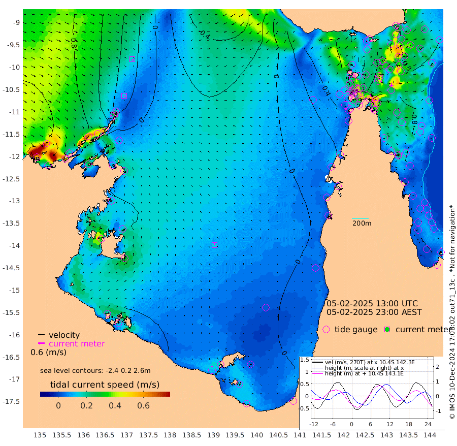 12cm/s 158T +3cm/s rms + 7cm/s -42T. ARA-GOC87 57m 14cm/s -9T +3cm/s rms + 2cm/s -2T. ARA-GOC87 60m 15cm/s 147T +2cm/s rms + 3cm/s 61T. ARA-GOC87 47m -71cm Daru -72cm Bobo Island -66cm Meer Island Barge -68cm Bramble Cay -76cm Unnamed Cay -64cm Pearce Cay -76cm Stephens Island -72cm Merrie England Shoals -67cm Mutacomal Reef -82cm Darnley Island Barge -66cm East Cay -79cm Yorke Island Barge -68cm Rennel Island -73cm Aureed Island -59cm Dungeness Reef -48cm Zagai Island -40cm Yam Island -16cm Dauan Island -26cm Saibai Island -19cm Phipi Reef -47cm Warrior Reef - West 8cm Mabuiag Island Barge -65cm Half Way Island -58cm Coconut Island -67cm Dugong Islet -44cm Poll Island -49cm Kirkcaldie Reef -35cm Suarji Island -55cm Sue Islet 60cm Hawkesbury Island -19cm Alert Patches -21cm Twin Island 57cm Badu Island -19cm St Pauls (Moa Island) 32cm Kubin (Moa Island) 1cm Ince Point 16cm Thursday Island 11cm Nardana Patches 28cm Turtle Head 32cm Round Island 54cm Goods Island 69cm Booby Island 71cm White Rocks Area 37cm Carpentaria -13cm Papou Point 40cm Bampfield Head 67cm Crab Island 69cm Red Wallis Island 45cm Packe Island -66cm Harrington Reef 36cm Herald Camp -8cm Sharp Point 35cm Red Island Point -4cm Possession Island -32cm Alpha Rock -40cm Frederick Point -63cm Wyborn Reef Light -58cm Tetley Island -53cm Triangle Reef -61cm Turtle Head Island -61cm Maclennan Cay -47cm Raine Island -71cm Mcsweeny Reef -71cm Collette Reef -61cm Shadwell Reef -78cm Hannibal Island -64cm Round Point 64cm Vrilya Point -68cm Cape Grenville -66cm Hicks Island -77cm Sir Charles Hardy Island -22cm Harvey Island -66cm Kay Reef -59cm Rocky Island -50cm Chapman Island -55cm Ham Reef -58cm Jubilee Reef -52cm Night Island -52cm Unnamed Reef No. 3 -60cm Morris Island -57cm 1st 3 Mile Opening -59cm Creech Reef -57cm Fife Island -67cm Eden Reef -63cm Stanley Island -65cm Normanby River 100cm Yabooma Island 92cm Hutchison River 91cm Elcho Island 97cm North West Crocodile Island 23cm Cape Wessel 74cm Stevens Island -31cm Guluwuru Island 64cm Hopeful Bay 43cm Auster Point 41cm Two Island Bay 55cm Cadell Strait -130cm Mallison Island -11cm Melville Bay (Gove Harbour) -12cm Truant Island -19cm Cape Arnhem -19cm Cape Grey -14cm Hawk Island -3cm Milner Bay (Groote Eylandt) -5cm Cape Beatrice -10cm West Island -8cm Centre Island -23cm Mornington Island -25cm West Wellesley Islands -24cm Bountiful Island 6cm Albert River Mouth 3cm Sweers Island 7cm Karumba -8cm Nassau River Offshore -10cm Christmas Creek 14cm Archer River 9cm Boyd Point 20cm Weipa (Humbug Point) 40cm Pennefather River 44cm Cullen Point