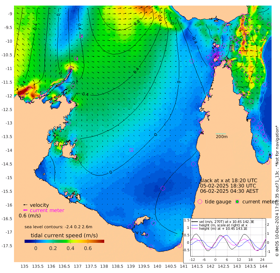 30cm/s 101T +3cm/s rms + 7cm/s -42T. ARA-GOC87 57m 13cm/s 150T +3cm/s rms + 2cm/s -2T. ARA-GOC87 60m 24cm/s 91T +2cm/s rms + 3cm/s 61T. ARA-GOC87 47m 37cm Daru 46cm Bobo Island 60cm Meer Island Barge 54cm Bramble Cay 45cm Unnamed Cay 48cm Pearce Cay 55cm Stephens Island 47cm Merrie England Shoals 26cm Mutacomal Reef 63cm Darnley Island Barge 55cm East Cay 51cm Yorke Island Barge 34cm Rennel Island 46cm Aureed Island 24cm Dungeness Reef 5cm Zagai Island -13cm Yam Island -30cm Dauan Island -26cm Saibai Island -24cm Phipi Reef -2cm Warrior Reef - West -47cm Mabuiag Island Barge 38cm Half Way Island 27cm Coconut Island 28cm Dugong Islet 5cm Poll Island 8cm Kirkcaldie Reef -19cm Suarji Island 9cm Sue Islet -78cm Hawkesbury Island -21cm Alert Patches -19cm Twin Island -61cm Badu Island -24cm St Pauls (Moa Island) -54cm Kubin (Moa Island) -35cm Ince Point -43cm Thursday Island -42cm Nardana Patches -48cm Turtle Head -63cm Round Island -60cm Goods Island -65cm Booby Island -74cm White Rocks Area -36cm Carpentaria -24cm Papou Point -62cm Bampfield Head -53cm Crab Island -69cm Red Wallis Island -58cm Packe Island 28cm Harrington Reef -76cm Herald Camp -10cm Sharp Point -52cm Red Island Point -33cm Possession Island -16cm Alpha Rock 1cm Frederick Point 27cm Wyborn Reef Light 19cm Tetley Island 42cm Triangle Reef 38cm Turtle Head Island 47cm Maclennan Cay 50cm Raine Island 48cm Mcsweeny Reef 50cm Collette Reef 52cm Shadwell Reef 58cm Hannibal Island 52cm Round Point -39cm Vrilya Point 50cm Cape Grenville 52cm Hicks Island 52cm Sir Charles Hardy Island 17cm Harvey Island 53cm Kay Reef 51cm Rocky Island 48cm Chapman Island 49cm Ham Reef 54cm Jubilee Reef 50cm Night Island 50cm Unnamed Reef No. 3 56cm Morris Island 56cm 1st 3 Mile Opening 56cm Creech Reef 58cm Fife Island 69cm Eden Reef 57cm Stanley Island 57cm Normanby River -35cm Yabooma Island -12cm Hutchison River -19cm Elcho Island -33cm North West Crocodile Island 25cm Cape Wessel -1cm Stevens Island 79cm Guluwuru Island -4cm Hopeful Bay 14cm Auster Point 16cm Two Island Bay 37cm Cadell Strait 199cm Mallison Island 57cm Melville Bay (Gove Harbour) 62cm Truant Island 51cm Cape Arnhem 30cm Cape Grey 16cm Hawk Island -5cm Milner Bay (Groote Eylandt) -11cm Cape Beatrice -28cm West Island -28cm Centre Island -18cm Mornington Island -22cm West Wellesley Islands -39cm Bountiful Island -48cm Albert River Mouth -39cm Sweers Island -53cm Karumba -19cm Nassau River Offshore -11cm Christmas Creek -13cm Archer River -13cm Boyd Point -23cm Weipa (Humbug Point) -11cm Pennefather River -41cm Cullen Point