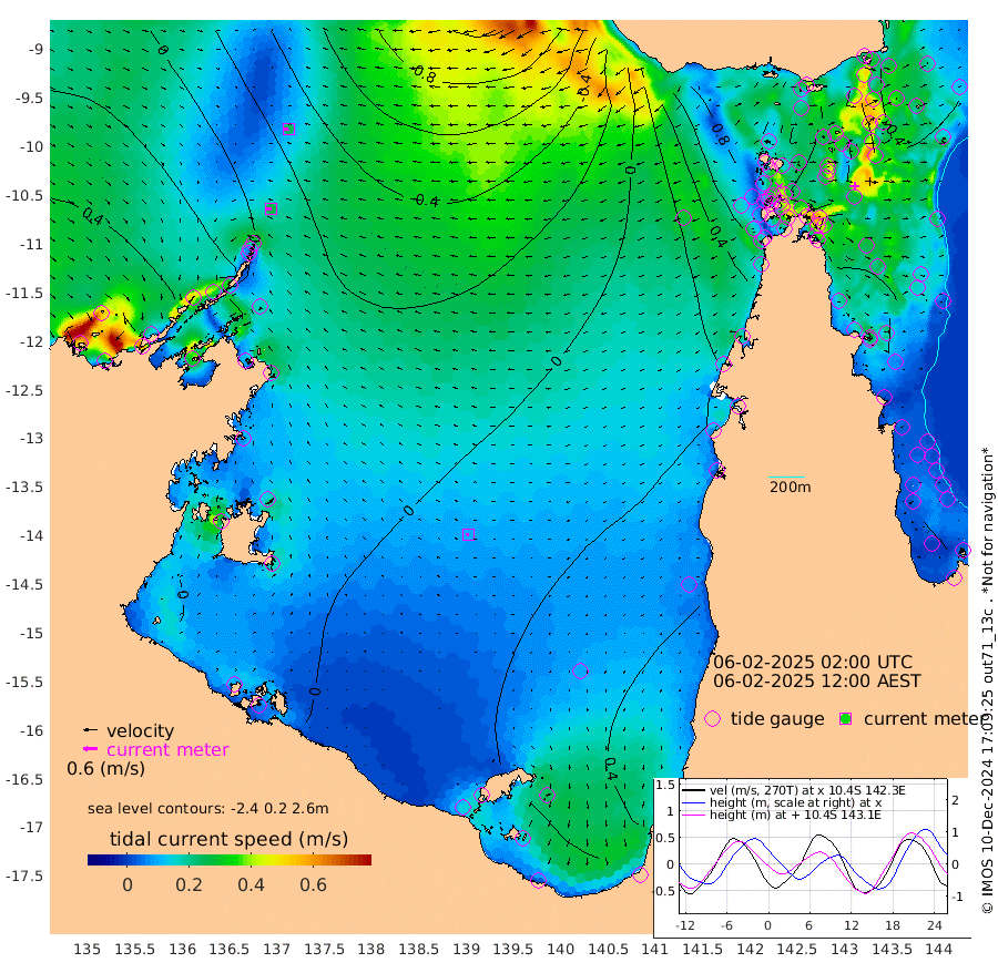 27cm/s -91T +3cm/s rms + 7cm/s -42T. ARA-GOC87 57m 10cm/s -110T +3cm/s rms + 2cm/s -2T. ARA-GOC87 60m 24cm/s -97T +2cm/s rms + 3cm/s 61T. ARA-GOC87 47m -13cm Daru -22cm Bobo Island -30cm Meer Island Barge -30cm Bramble Cay -24cm Unnamed Cay -21cm Pearce Cay -30cm Stephens Island -34cm Merrie England Shoals -14cm Mutacomal Reef -35cm Darnley Island Barge -27cm East Cay -25cm Yorke Island Barge -11cm Rennel Island -16cm Aureed Island 5cm Dungeness Reef 28cm Zagai Island 33cm Yam Island 88cm Dauan Island 70cm Saibai Island 80cm Phipi Reef 42cm Warrior Reef - West 77cm Mabuiag Island Barge -25cm Half Way Island -2cm Coconut Island -12cm Dugong Islet 17cm Poll Island 5cm Kirkcaldie Reef 58cm Suarji Island 11cm Sue Islet 103cm Hawkesbury Island 51cm Alert Patches 41cm Twin Island 104cm Badu Island 51cm St Pauls (Moa Island) 87cm Kubin (Moa Island) 62cm Ince Point 70cm Thursday Island 70cm Nardana Patches 89cm Turtle Head 98cm Round Island 103cm Goods Island 102cm Booby Island 107cm White Rocks Area 53cm Carpentaria 40cm Papou Point 116cm Bampfield Head 73cm Crab Island 96cm Red Wallis Island 89cm Packe Island -12cm Harrington Reef 109cm Herald Camp 9cm Sharp Point 67cm Red Island Point 62cm Possession Island 29cm Alpha Rock 19cm Frederick Point -7cm Wyborn Reef Light 0cm Tetley Island -12cm Triangle Reef -19cm Turtle Head Island -19cm Maclennan Cay -17cm Raine Island -23cm Mcsweeny Reef -25cm Collette Reef -22cm Shadwell Reef -33cm Hannibal Island -27cm Round Point 45cm Vrilya Point -29cm Cape Grenville -24cm Hicks Island -16cm Sir Charles Hardy Island -10cm Harvey Island -30cm Kay Reef -19cm Rocky Island -14cm Chapman Island -19cm Ham Reef -23cm Jubilee Reef -22cm Night Island -20cm Unnamed Reef No. 3 -23cm Morris Island -17cm 1st 3 Mile Opening -23cm Creech Reef -24cm Fife Island -32cm Eden Reef -29cm Stanley Island -34cm Normanby River 63cm Yabooma Island 65cm Hutchison River 54cm Elcho Island 56cm North West Crocodile Island -1cm Cape Wessel 25cm Stevens Island -32cm Guluwuru Island 30cm Hopeful Bay 14cm Auster Point 2cm Two Island Bay 1cm Cadell Strait -159cm Mallison Island -12cm Melville Bay (Gove Harbour) -15cm Truant Island -15cm Cape Arnhem -8cm Cape Grey -2cm Hawk Island -7cm Milner Bay (Groote Eylandt) -2cm Cape Beatrice -7cm West Island -9cm Centre Island 13cm Mornington Island 17cm West Wellesley Islands 50cm Bountiful Island 47cm Albert River Mouth 38cm Sweers Island 48cm Karumba 24cm Nassau River Offshore 30cm Christmas Creek 37cm Archer River 43cm Boyd Point 60cm Weipa (Humbug Point) 19cm Pennefather River 57cm Cullen Point