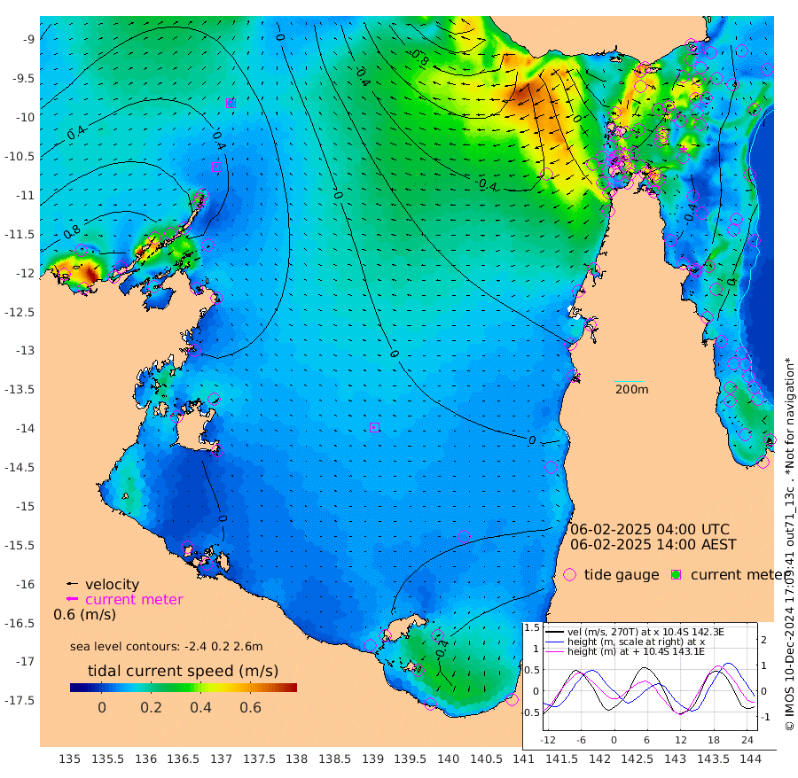 7cm/s -52T +3cm/s rms + 7cm/s -42T. ARA-GOC87 57m 12cm/s -104T +3cm/s rms + 2cm/s -2T. ARA-GOC87 60m 7cm/s -10T +2cm/s rms + 3cm/s 61T. ARA-GOC87 47m -24cm Daru -23cm Bobo Island -10cm Meer Island Barge -20cm Bramble Cay -31cm Unnamed Cay -24cm Pearce Cay -26cm Stephens Island -43cm Merrie England Shoals -37cm Mutacomal Reef -23cm Darnley Island Barge -9cm East Cay -24cm Yorke Island Barge -25cm Rennel Island -21cm Aureed Island -19cm Dungeness Reef 2cm Zagai Island -3cm Yam Island 50cm Dauan Island 39cm Saibai Island 38cm Phipi Reef 16cm Warrior Reef - West 12cm Mabuiag Island Barge -38cm Half Way Island -28cm Coconut Island -34cm Dugong Islet -20cm Poll Island -31cm Kirkcaldie Reef -4cm Suarji Island -21cm Sue Islet 2cm Hawkesbury Island -23cm Alert Patches -23cm Twin Island 10cm Badu Island -15cm St Pauls (Moa Island) 4cm Kubin (Moa Island) -13cm Ince Point -15cm Thursday Island -12cm Nardana Patches -1cm Turtle Head 8cm Round Island 2cm Goods Island -11cm Booby Island -9cm White Rocks Area -44cm Carpentaria -14cm Papou Point 2cm Bampfield Head -17cm Crab Island -13cm Red Wallis Island -5cm Packe Island -42cm Harrington Reef 15cm Herald Camp -9cm Sharp Point -8cm Red Island Point -10cm Possession Island -25cm Alpha Rock -28cm Frederick Point -32cm Wyborn Reef Light -30cm Tetley Island -6cm Triangle Reef -45cm Turtle Head Island -9cm Maclennan Cay -2cm Raine Island -27cm Mcsweeny Reef -25cm Collette Reef -12cm Shadwell Reef -31cm Hannibal Island -22cm Round Point -44cm Vrilya Point -25cm Cape Grenville -11cm Hicks Island -1cm Sir Charles Hardy Island -6cm Harvey Island -20cm Kay Reef -3cm Rocky Island 1cm Chapman Island -1cm Ham Reef -6cm Jubilee Reef -9cm Night Island -5cm Unnamed Reef No. 3 -7cm Morris Island -5cm 1st 3 Mile Opening -8cm Creech Reef -1cm Fife Island -6cm Eden Reef -14cm Stanley Island -12cm Normanby River 114cm Yabooma Island 134cm Hutchison River 112cm Elcho Island 109cm North West Crocodile Island 66cm Cape Wessel 88cm Stevens Island 64cm Guluwuru Island 88cm Hopeful Bay 72cm Auster Point 74cm Two Island Bay 105cm Cadell Strait 16cm Mallison Island 65cm Melville Bay (Gove Harbour) 64cm Truant Island 43cm Cape Arnhem 30cm Cape Grey 28cm Hawk Island 5cm Milner Bay (Groote Eylandt) 6cm Cape Beatrice -21cm West Island -26cm Centre Island 24cm Mornington Island 20cm West Wellesley Islands 65cm Bountiful Island 77cm Albert River Mouth 69cm Sweers Island 73cm Karumba 23cm Nassau River Offshore 17cm Christmas Creek 1cm Archer River -2cm Boyd Point 12cm Weipa (Humbug Point) -41cm Pennefather River -17cm Cullen Point