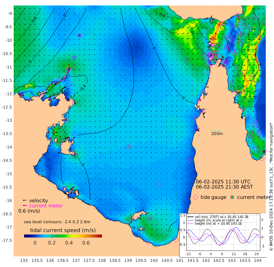 8cm/s -62T +3cm/s rms + 7cm/s -42T. ARA-GOC87 57m 20cm/s 11T +3cm/s rms + 2cm/s -2T. ARA-GOC87 60m 5cm/s -95T +2cm/s rms + 3cm/s 61T. ARA-GOC87 47m -20cm Daru -26cm Bobo Island -52cm Meer Island Barge -39cm Bramble Cay -25cm Unnamed Cay -31cm Pearce Cay -35cm Stephens Island -18cm Merrie England Shoals -6cm Mutacomal Reef -43cm Darnley Island Barge -49cm East Cay -32cm Yorke Island Barge -22cm Rennel Island -32cm Aureed Island -19cm Dungeness Reef -16cm Zagai Island -1cm Yam Island -34cm Dauan Island -26cm Saibai Island -30cm Phipi Reef -24cm Warrior Reef - West 3cm Mabuiag Island Barge -13cm Half Way Island -14cm Coconut Island -11cm Dugong Islet -3cm Poll Island 2cm Kirkcaldie Reef -7cm Suarji Island -5cm Sue Islet 10cm Hawkesbury Island 5cm Alert Patches 8cm Twin Island -4cm Badu Island 8cm St Pauls (Moa Island) 0cm Kubin (Moa Island) 8cm Ince Point 10cm Thursday Island 8cm Nardana Patches -5cm Turtle Head 0cm Round Island -8cm Goods Island 1cm Booby Island 8cm White Rocks Area 11cm Carpentaria 11cm Papou Point -15cm Bampfield Head 10cm Crab Island 9cm Red Wallis Island 2cm Packe Island -5cm Harrington Reef -4cm Herald Camp 11cm Sharp Point 13cm Red Island Point 4cm Possession Island 12cm Alpha Rock 1cm Frederick Point -9cm Wyborn Reef Light -5cm Tetley Island -42cm Triangle Reef -8cm Turtle Head Island -46cm Maclennan Cay -53cm Raine Island -30cm Mcsweeny Reef -33cm Collette Reef -46cm Shadwell Reef -35cm Hannibal Island -38cm Round Point 23cm Vrilya Point -36cm Cape Grenville -46cm Hicks Island -58cm Sir Charles Hardy Island -12cm Harvey Island -43cm Kay Reef -54cm Rocky Island -56cm Chapman Island -54cm Ham Reef -53cm Jubilee Reef -46cm Night Island -52cm Unnamed Reef No. 3 -55cm Morris Island -58cm 1st 3 Mile Opening -54cm Creech Reef -56cm Fife Island -67cm Eden Reef -51cm Stanley Island -50cm Normanby River -32cm Yabooma Island -62cm Hutchison River -42cm Elcho Island -28cm North West Crocodile Island -41cm Cape Wessel -32cm Stevens Island -81cm Guluwuru Island -36cm Hopeful Bay -38cm Auster Point -34cm Two Island Bay -65cm Cadell Strait -118cm Mallison Island -67cm Melville Bay (Gove Harbour) -69cm Truant Island -53cm Cape Arnhem -30cm Cape Grey -18cm Hawk Island 17cm Milner Bay (Groote Eylandt) 17cm Cape Beatrice 48cm West Island 50cm Centre Island 3cm Mornington Island 5cm West Wellesley Islands -13cm Bountiful Island -2cm Albert River Mouth 4cm Sweers Island 3cm Karumba -10cm Nassau River Offshore -24cm Christmas Creek -21cm Archer River -23cm Boyd Point -30cm Weipa (Humbug Point) 10cm Pennefather River 4cm Cullen Point