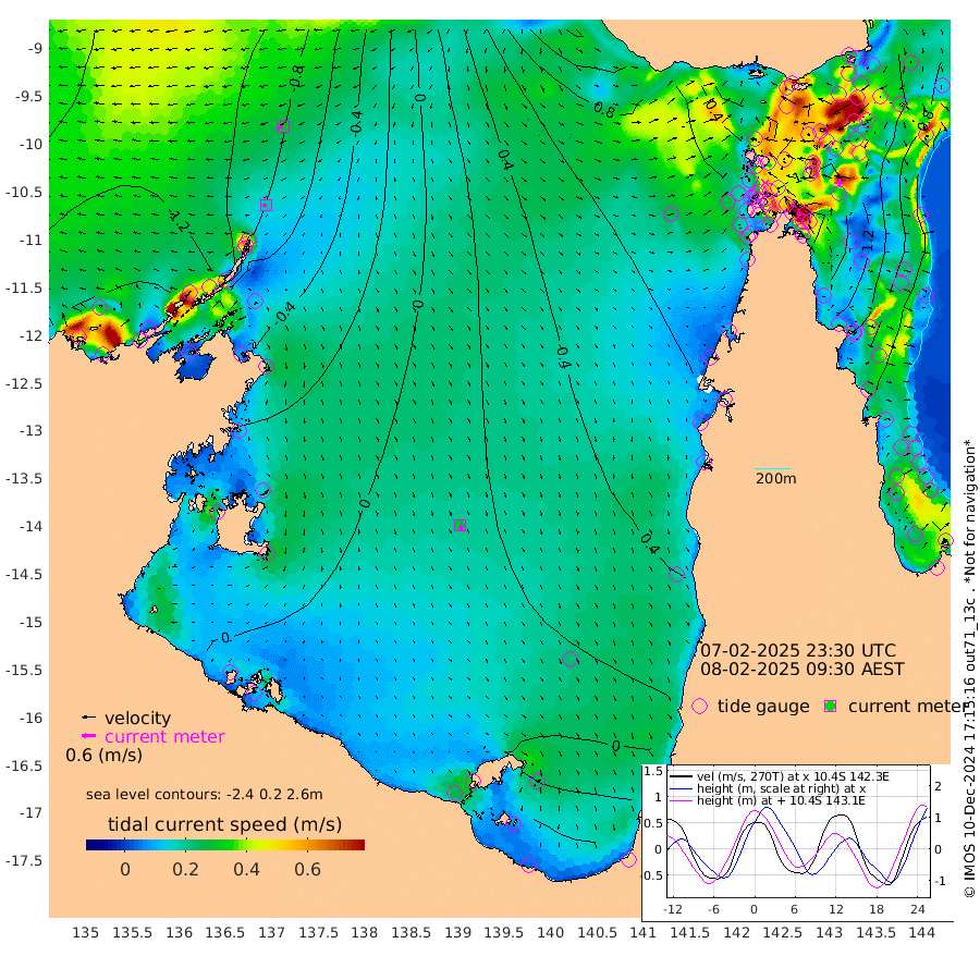 19cm/s -102T +3cm/s rms + 7cm/s -42T. ARA-GOC87 57m 27cm/s 165T +3cm/s rms + 2cm/s -2T. ARA-GOC87 60m 29cm/s -104T +2cm/s rms + 3cm/s 61T. ARA-GOC87 47m 146cm Daru 134cm Bobo Island 78cm Meer Island Barge 105cm Bramble Cay 141cm Unnamed Cay 137cm Pearce Cay 129cm Stephens Island 143cm Merrie England Shoals 156cm Mutacomal Reef 117cm Darnley Island Barge 85cm East Cay 130cm Yorke Island Barge 145cm Rennel Island 135cm Aureed Island 149cm Dungeness Reef 121cm Zagai Island 131cm Yam Island 91cm Dauan Island 81cm Saibai Island 106cm Phipi Reef 125cm Warrior Reef - West 97cm Mabuiag Island Barge 147cm Half Way Island 149cm Coconut Island 159cm Dugong Islet 147cm Poll Island 156cm Kirkcaldie Reef 155cm Suarji Island 140cm Sue Islet 107cm Hawkesbury Island 159cm Alert Patches 153cm Twin Island 100cm Badu Island 149cm St Pauls (Moa Island) 113cm Kubin (Moa Island) 138cm Ince Point 133cm Thursday Island 133cm Nardana Patches 126cm Turtle Head 104cm Round Island 110cm Goods Island 103cm Booby Island 109cm White Rocks Area 94cm Carpentaria 125cm Papou Point 110cm Bampfield Head 78cm Crab Island 104cm Red Wallis Island 119cm Packe Island 171cm Harrington Reef 102cm Herald Camp 41cm Sharp Point 103cm Red Island Point 128cm Possession Island 141cm Alpha Rock 157cm Frederick Point 153cm Wyborn Reef Light 152cm Tetley Island 81cm Triangle Reef 163cm Turtle Head Island 86cm Maclennan Cay 57cm Raine Island 132cm Mcsweeny Reef 120cm Collette Reef 83cm Shadwell Reef 128cm Hannibal Island 111cm Round Point 80cm Vrilya Point 107cm Cape Grenville 91cm Hicks Island 93cm Sir Charles Hardy Island 32cm Harvey Island 90cm Kay Reef 68cm Rocky Island 60cm Chapman Island 58cm Ham Reef 66cm Jubilee Reef 68cm Night Island 64cm Unnamed Reef No. 3 73cm Morris Island 71cm 1st 3 Mile Opening 72cm Creech Reef 67cm Fife Island 70cm Eden Reef 77cm Stanley Island 78cm Normanby River -148cm Yabooma Island -161cm Hutchison River -154cm Elcho Island -152cm North West Crocodile Island -100cm Cape Wessel -138cm Stevens Island -78cm Guluwuru Island -134cm Hopeful Bay -107cm Auster Point -119cm Two Island Bay -151cm Cadell Strait -75cm Mallison Island -78cm Melville Bay (Gove Harbour) -79cm Truant Island -51cm Cape Arnhem -39cm Cape Grey -37cm Hawk Island -41cm Milner Bay (Groote Eylandt) -26cm Cape Beatrice -6cm West Island -6cm Centre Island -10cm Mornington Island 1cm West Wellesley Islands -30cm Bountiful Island -81cm Albert River Mouth -94cm Sweers Island -70cm Karumba 18cm Nassau River Offshore 48cm Christmas Creek 53cm Archer River 64cm Boyd Point 59cm Weipa (Humbug Point) 64cm Pennefather River 68cm Cullen Point