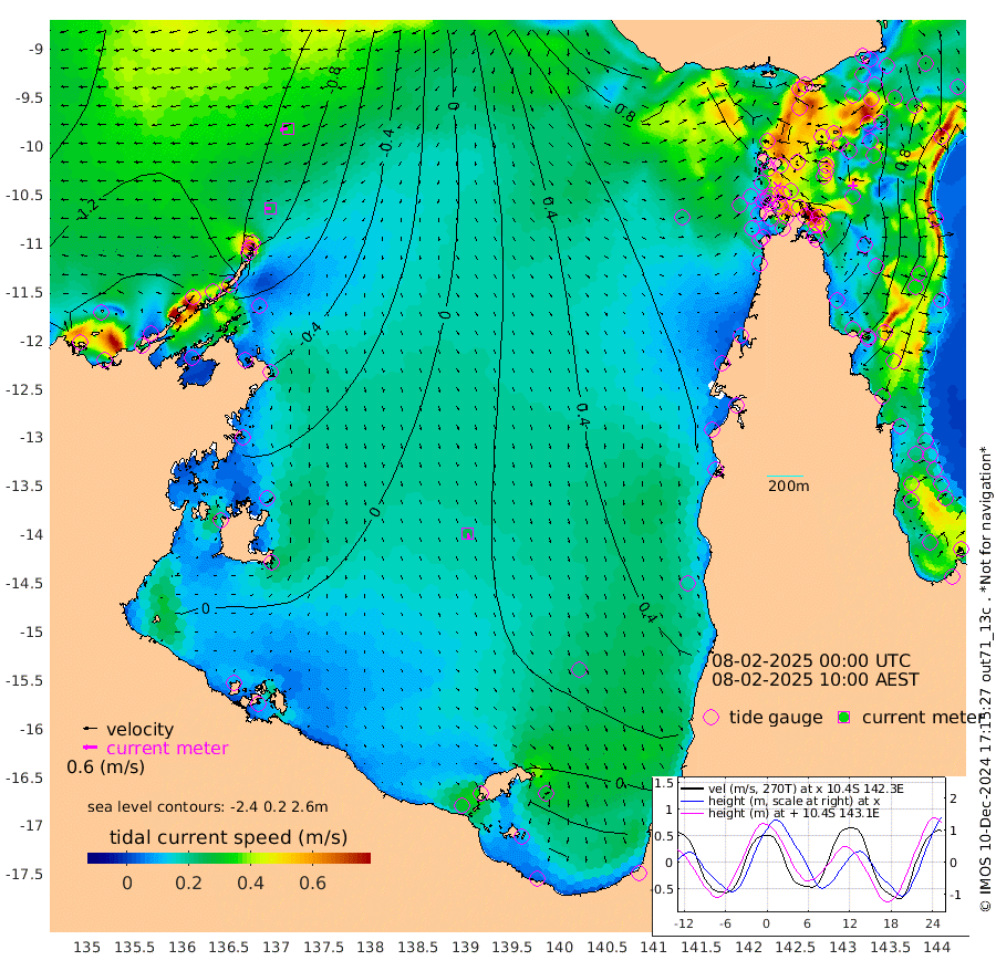 25cm/s -97T +3cm/s rms + 7cm/s -42T. ARA-GOC87 57m 26cm/s 168T +3cm/s rms + 2cm/s -2T. ARA-GOC87 60m 35cm/s -102T +2cm/s rms + 3cm/s 61T. ARA-GOC87 47m 137cm Daru 121cm Bobo Island 59cm Meer Island Barge 85cm Bramble Cay 125cm Unnamed Cay 121cm Pearce Cay 111cm Stephens Island 125cm Merrie England Shoals 146cm Mutacomal Reef 97cm Darnley Island Barge 65cm East Cay 116cm Yorke Island Barge 134cm Rennel Island 123cm Aureed Island 145cm Dungeness Reef 128cm Zagai Island 140cm Yam Island 115cm Dauan Island 102cm Saibai Island 127cm Phipi Reef 136cm Warrior Reef - West 118cm Mabuiag Island Barge 133cm Half Way Island 143cm Coconut Island 149cm Dugong Islet 149cm Poll Island 155cm Kirkcaldie Reef 167cm Suarji Island 141cm Sue Islet 125cm Hawkesbury Island 170cm Alert Patches 162cm Twin Island 120cm Badu Island 162cm St Pauls (Moa Island) 129cm Kubin (Moa Island) 151cm Ince Point 148cm Thursday Island 148cm Nardana Patches 142cm Turtle Head 121cm Round Island 125cm Goods Island 119cm Booby Island 126cm White Rocks Area 101cm Carpentaria 135cm Papou Point 126cm Bampfield Head 92cm Crab Island 119cm Red Wallis Island 134cm Packe Island 162cm Harrington Reef 120cm Herald Camp 46cm Sharp Point 116cm Red Island Point 139cm Possession Island 147cm Alpha Rock 158cm Frederick Point 144cm Wyborn Reef Light 147cm Tetley Island 67cm Triangle Reef 152cm Turtle Head Island 69cm Maclennan Cay 40cm Raine Island 117cm Mcsweeny Reef 104cm Collette Reef 66cm Shadwell Reef 108cm Hannibal Island 91cm Round Point 89cm Vrilya Point 87cm Cape Grenville 72cm Hicks Island 75cm Sir Charles Hardy Island 26cm Harvey Island 68cm Kay Reef 50cm Rocky Island 42cm Chapman Island 40cm Ham Reef 47cm Jubilee Reef 51cm Night Island 45cm Unnamed Reef No. 3 53cm Morris Island 53cm 1st 3 Mile Opening 53cm Creech Reef 48cm Fife Island 44cm Eden Reef 56cm Stanley Island 54cm Normanby River -151cm Yabooma Island -166cm Hutchison River -158cm Elcho Island -153cm North West Crocodile Island -111cm Cape Wessel -146cm Stevens Island -96cm Guluwuru Island -141cm Hopeful Bay -116cm Auster Point -130cm Two Island Bay -165cm Cadell Strait -118cm Mallison Island -91cm Melville Bay (Gove Harbour) -93cm Truant Island -61cm Cape Arnhem -44cm Cape Grey -39cm Hawk Island -38cm Milner Bay (Groote Eylandt) -22cm Cape Beatrice 2cm West Island 1cm Centre Island 0cm Mornington Island 11cm West Wellesley Islands -15cm Bountiful Island -62cm Albert River Mouth -76cm Sweers Island -50cm Karumba 27cm Nassau River Offshore 54cm Christmas Creek 58cm Archer River 70cm Boyd Point 67cm Weipa (Humbug Point) 68cm Pennefather River 78cm Cullen Point