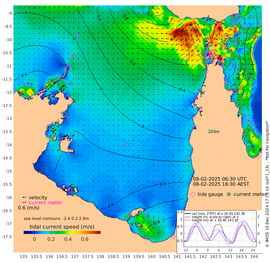 16cm/s -44T +3cm/s rms + 7cm/s -42T. ARA-GOC87 57m 15cm/s -82T +3cm/s rms + 2cm/s -2T. ARA-GOC87 60m 15cm/s -23T +2cm/s rms + 3cm/s 61T. ARA-GOC87 47m -73cm Daru -67cm Bobo Island -15cm Meer Island Barge -35cm Bramble Cay -63cm Unnamed Cay -67cm Pearce Cay -54cm Stephens Island -67cm Merrie England Shoals -82cm Mutacomal Reef -43cm Darnley Island Barge -16cm East Cay -59cm Yorke Island Barge -70cm Rennel Island -63cm Aureed Island -76cm Dungeness Reef -68cm Zagai Island -75cm Yam Island -38cm Dauan Island -37cm Saibai Island -38cm Phipi Reef -59cm Warrior Reef - West -72cm Mabuiag Island Barge -78cm Half Way Island -84cm Coconut Island -85cm Dugong Islet -89cm Poll Island -91cm Kirkcaldie Reef -90cm Suarji Island -83cm Sue Islet -91cm Hawkesbury Island -106cm Alert Patches -105cm Twin Island -82cm Badu Island -104cm St Pauls (Moa Island) -85cm Kubin (Moa Island) -97cm Ince Point -99cm Thursday Island -97cm Nardana Patches -84cm Turtle Head -75cm Round Island -80cm Goods Island -87cm Booby Island -91cm White Rocks Area -92cm Carpentaria -92cm Papou Point -85cm Bampfield Head -72cm Crab Island -87cm Red Wallis Island -84cm Packe Island -101cm Harrington Reef -64cm Herald Camp -28cm Sharp Point -78cm Red Island Point -89cm Possession Island -95cm Alpha Rock -101cm Frederick Point -90cm Wyborn Reef Light -94cm Tetley Island -23cm Triangle Reef -109cm Turtle Head Island -20cm Maclennan Cay 0cm Raine Island -61cm Mcsweeny Reef -47cm Collette Reef -18cm Shadwell Reef -50cm Hannibal Island -40cm Round Point -84cm Vrilya Point -33cm Cape Grenville -22cm Hicks Island -11cm Sir Charles Hardy Island -9cm Harvey Island -19cm Kay Reef -3cm Rocky Island 3cm Chapman Island 2cm Ham Reef -5cm Jubilee Reef -8cm Night Island -2cm Unnamed Reef No. 3 -6cm Morris Island -6cm 1st 3 Mile Opening -6cm Creech Reef -4cm Fife Island 5cm Eden Reef -8cm Stanley Island -8cm Normanby River 42cm Yabooma Island 55cm Hutchison River 51cm Elcho Island 49cm North West Crocodile Island 19cm Cape Wessel 31cm Stevens Island 31cm Guluwuru Island 44cm Hopeful Bay 20cm Auster Point 24cm Two Island Bay 43cm Cadell Strait 49cm Mallison Island 29cm Melville Bay (Gove Harbour) 23cm Truant Island 21cm Cape Arnhem 22cm Cape Grey 31cm Hawk Island 29cm Milner Bay (Groote Eylandt) 34cm Cape Beatrice 27cm West Island 28cm Centre Island 87cm Mornington Island 80cm West Wellesley Islands 126cm Bountiful Island 162cm Albert River Mouth 156cm Sweers Island 154cm Karumba 69cm Nassau River Offshore 41cm Christmas Creek 1cm Archer River -20cm Boyd Point -7cm Weipa (Humbug Point) -56cm Pennefather River -52cm Cullen Point