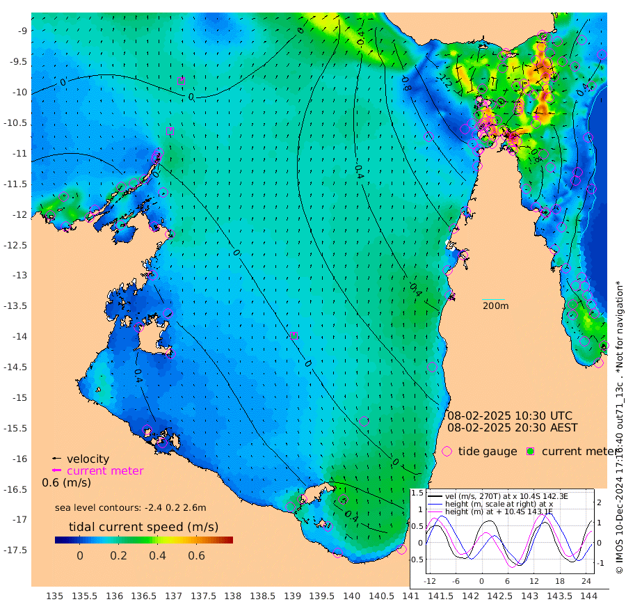 19cm/s 17T +3cm/s rms + 7cm/s -42T. ARA-GOC87 57m 22cm/s -4T +3cm/s rms + 2cm/s -2T. ARA-GOC87 60m 22cm/s 27T +2cm/s rms + 3cm/s 61T. ARA-GOC87 47m 42cm Daru 51cm Bobo Island 30cm Meer Island Barge 48cm Bramble Cay 55cm Unnamed Cay 47cm Pearce Cay 53cm Stephens Island 64cm Merrie England Shoals 54cm Mutacomal Reef 48cm Darnley Island Barge 37cm East Cay 45cm Yorke Island Barge 44cm Rennel Island 43cm Aureed Island 24cm Dungeness Reef -11cm Zagai Island -8cm Yam Island -95cm Dauan Island -79cm Saibai Island -72cm Phipi Reef -25cm Warrior Reef - West -85cm Mabuiag Island Barge 52cm Half Way Island 28cm Coconut Island 44cm Dugong Islet 11cm Poll Island 19cm Kirkcaldie Reef -22cm Suarji Island 8cm Sue Islet -142cm Hawkesbury Island -38cm Alert Patches -24cm Twin Island -150cm Badu Island -37cm St Pauls (Moa Island) -109cm Kubin (Moa Island) -63cm Ince Point -80cm Thursday Island -78cm Nardana Patches -111cm Turtle Head -112cm Round Island -147cm Goods Island -165cm Booby Island -147cm White Rocks Area -130cm Carpentaria -29cm Papou Point -159cm Bampfield Head -138cm Crab Island -150cm Red Wallis Island -119cm Packe Island 50cm Harrington Reef -135cm Herald Camp -2cm Sharp Point -88cm Red Island Point -54cm Possession Island -5cm Alpha Rock 5cm Frederick Point 41cm Wyborn Reef Light 33cm Tetley Island 14cm Triangle Reef 42cm Turtle Head Island 24cm Maclennan Cay 8cm Raine Island 45cm Mcsweeny Reef 43cm Collette Reef 23cm Shadwell Reef 55cm Hannibal Island 47cm Round Point -124cm Vrilya Point 46cm Cape Grenville 36cm Hicks Island 25cm Sir Charles Hardy Island 14cm Harvey Island 39cm Kay Reef 21cm Rocky Island 11cm Chapman Island 12cm Ham Reef 17cm Jubilee Reef 21cm Night Island 14cm Unnamed Reef No. 3 23cm Morris Island 9cm 1st 3 Mile Opening 18cm Creech Reef 24cm Fife Island 27cm Eden Reef 29cm Stanley Island 44cm Normanby River -20cm Yabooma Island -28cm Hutchison River -21cm Elcho Island -15cm North West Crocodile Island 8cm Cape Wessel 1cm Stevens Island 10cm Guluwuru Island 0cm Hopeful Bay 2cm Auster Point 9cm Two Island Bay -4cm Cadell Strait 55cm Mallison Island 6cm Melville Bay (Gove Harbour) 5cm Truant Island 6cm Cape Arnhem 23cm Cape Grey 33cm Hawk Island 58cm Milner Bay (Groote Eylandt) 55cm Cape Beatrice 78cm West Island 80cm Centre Island 67cm Mornington Island 70cm West Wellesley Islands 66cm Bountiful Island 83cm Albert River Mouth 105cm Sweers Island 79cm Karumba 20cm Nassau River Offshore -24cm Christmas Creek -69cm Archer River -87cm Boyd Point -100cm Weipa (Humbug Point) -84cm Pennefather River -115cm Cullen Point
