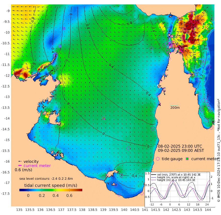 10cm/s 155T +3cm/s rms + 7cm/s -42T. ARA-GOC87 57m 33cm/s 164T +3cm/s rms + 2cm/s -2T. ARA-GOC87 60m 10cm/s -144T +2cm/s rms + 3cm/s 61T. ARA-GOC87 47m 166cm Daru 168cm Bobo Island 128cm Meer Island Barge 154cm Bramble Cay 175cm Unnamed Cay 179cm Pearce Cay 173cm Stephens Island 182cm Merrie England Shoals 177cm Mutacomal Reef 162cm Darnley Island Barge 138cm East Cay 164cm Yorke Island Barge 173cm Rennel Island 166cm Aureed Island 160cm Dungeness Reef 107cm Zagai Island 114cm Yam Island 49cm Dauan Island 44cm Saibai Island 65cm Phipi Reef 108cm Warrior Reef - West 56cm Mabuiag Island Barge 176cm Half Way Island 162cm Coconut Island 179cm Dugong Islet 144cm Poll Island 155cm Kirkcaldie Reef 125cm Suarji Island 135cm Sue Islet 83cm Hawkesbury Island 133cm Alert Patches 133cm Twin Island 67cm Badu Island 118cm St Pauls (Moa Island) 87cm Kubin (Moa Island) 108cm Ince Point 101cm Thursday Island 100cm Nardana Patches 96cm Turtle Head 71cm Round Island 84cm Goods Island 74cm Booby Island 81cm White Rocks Area 70cm Carpentaria 104cm Papou Point 80cm Bampfield Head 54cm Crab Island 77cm Red Wallis Island 94cm Packe Island 189cm Harrington Reef 70cm Herald Camp 25cm Sharp Point 81cm Red Island Point 101cm Possession Island 124cm Alpha Rock 153cm Frederick Point 171cm Wyborn Reef Light 163cm Tetley Island 117cm Triangle Reef 191cm Turtle Head Island 129cm Maclennan Cay 102cm Raine Island 167cm Mcsweeny Reef 157cm Collette Reef 123cm Shadwell Reef 172cm Hannibal Island 161cm Round Point 59cm Vrilya Point 151cm Cape Grenville 138cm Hicks Island 142cm Sir Charles Hardy Island 46cm Harvey Island 140cm Kay Reef 116cm Rocky Island 110cm Chapman Island 106cm Ham Reef 114cm Jubilee Reef 110cm Night Island 112cm Unnamed Reef No. 3 124cm Morris Island 115cm 1st 3 Mile Opening 121cm Creech Reef 119cm Fife Island 134cm Eden Reef 129cm Stanley Island 139cm Normanby River -81cm Yabooma Island -76cm Hutchison River -86cm Elcho Island -89cm North West Crocodile Island -30cm Cape Wessel -66cm Stevens Island 2cm Guluwuru Island -68cm Hopeful Bay -41cm Auster Point -46cm Two Island Bay -50cm Cadell Strait 52cm Mallison Island -13cm Melville Bay (Gove Harbour) -8cm Truant Island -7cm Cape Arnhem -18cm Cape Grey -28cm Hawk Island -57cm Milner Bay (Groote Eylandt) -47cm Cape Beatrice -53cm West Island -56cm Centre Island -52cm Mornington Island -42cm West Wellesley Islands -80cm Bountiful Island -139cm Albert River Mouth -153cm Sweers Island -128cm Karumba -11cm Nassau River Offshore 29cm Christmas Creek 44cm Archer River 54cm Boyd Point 47cm Weipa (Humbug Point) 52cm Pennefather River 47cm Cullen Point
