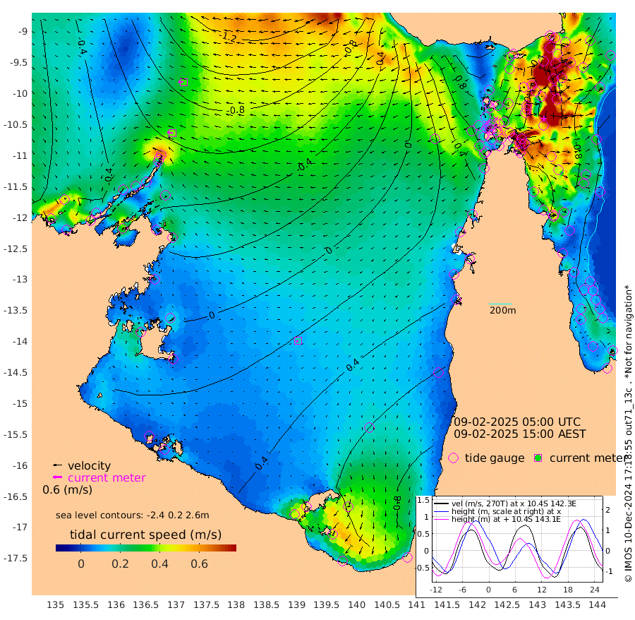 38cm/s -82T +3cm/s rms + 7cm/s -42T. ARA-GOC87 57m 16cm/s -126T +3cm/s rms + 2cm/s -2T. ARA-GOC87 60m 36cm/s -87T +2cm/s rms + 3cm/s 61T. ARA-GOC87 47m -75cm Daru -91cm Bobo Island -71cm Meer Island Barge -91cm Bramble Cay -95cm Unnamed Cay -99cm Pearce Cay -98cm Stephens Island -107cm Merrie England Shoals -89cm Mutacomal Reef -91cm Darnley Island Barge -77cm East Cay -85cm Yorke Island Barge -84cm Rennel Island -82cm Aureed Island -58cm Dungeness Reef -9cm Zagai Island -8cm Yam Island 87cm Dauan Island 72cm Saibai Island 76cm Phipi Reef 13cm Warrior Reef - West 50cm Mabuiag Island Barge -94cm Half Way Island -69cm Coconut Island -84cm Dugong Islet -45cm Poll Island -50cm Kirkcaldie Reef -4cm Suarji Island -39cm Sue Islet 48cm Hawkesbury Island -9cm Alert Patches -20cm Twin Island 66cm Badu Island -2cm St Pauls (Moa Island) 37cm Kubin (Moa Island) 12cm Ince Point 20cm Thursday Island 22cm Nardana Patches 43cm Turtle Head 47cm Round Island 55cm Goods Island 59cm Booby Island 47cm White Rocks Area 25cm Carpentaria -10cm Papou Point 50cm Bampfield Head 54cm Crab Island 53cm Red Wallis Island 42cm Packe Island -95cm Harrington Reef 68cm Herald Camp 5cm Sharp Point 31cm Red Island Point 5cm Possession Island -30cm Alpha Rock -49cm Frederick Point -87cm Wyborn Reef Light -78cm Tetley Island -55cm Triangle Reef -109cm Turtle Head Island -64cm Maclennan Cay -48cm Raine Island -89cm Mcsweeny Reef -83cm Collette Reef -60cm Shadwell Reef -98cm Hannibal Island -96cm Round Point 33cm Vrilya Point -86cm Cape Grenville -75cm Hicks Island -64cm Sir Charles Hardy Island -26cm Harvey Island -81cm Kay Reef -58cm Rocky Island -53cm Chapman Island -52cm Ham Reef -59cm Jubilee Reef -57cm Night Island -56cm Unnamed Reef No. 3 -65cm Morris Island -53cm 1st 3 Mile Opening -60cm Creech Reef -64cm Fife Island -76cm Eden Reef -71cm Stanley Island -87cm Normanby River -50cm Yabooma Island -56cm Hutchison River -46cm Elcho Island -40cm North West Crocodile Island -81cm Cape Wessel -73cm Stevens Island -79cm Guluwuru Island -58cm Hopeful Bay -74cm Auster Point -80cm Two Island Bay -84cm Cadell Strait -136cm Mallison Island -63cm Melville Bay (Gove Harbour) -75cm Truant Island -44cm Cape Arnhem -25cm Cape Grey -10cm Hawk Island 1cm Milner Bay (Groote Eylandt) 15cm Cape Beatrice 28cm West Island 29cm Centre Island 83cm Mornington Island 77cm West Wellesley Islands 116cm Bountiful Island 141cm Albert River Mouth 120cm Sweers Island 143cm Karumba 87cm Nassau River Offshore 79cm Christmas Creek 58cm Archer River 49cm Boyd Point 68cm Weipa (Humbug Point) 24cm Pennefather River 50cm Cullen Point