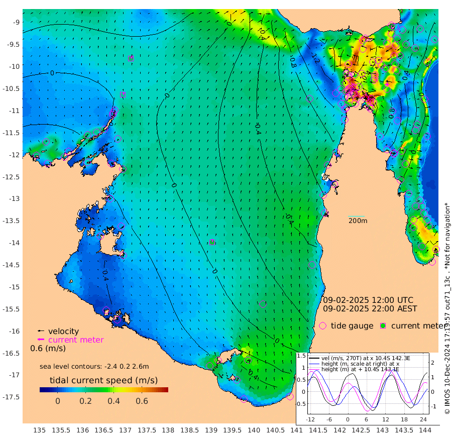 19cm/s 30T +3cm/s rms + 7cm/s -42T. ARA-GOC87 57m 29cm/s 1T +3cm/s rms + 2cm/s -2T. ARA-GOC87 60m 23cm/s 39T +2cm/s rms + 3cm/s 61T. ARA-GOC87 47m 56cm Daru 62cm Bobo Island 11cm Meer Island Barge 35cm Bramble Cay 55cm Unnamed Cay 53cm Pearce Cay 50cm Stephens Island 61cm Merrie England Shoals 65cm Mutacomal Reef 40cm Darnley Island Barge 17cm East Cay 48cm Yorke Island Barge 52cm Rennel Island 53cm Aureed Island 42cm Dungeness Reef 21cm Zagai Island 21cm Yam Island -60cm Dauan Island -50cm Saibai Island -39cm Phipi Reef 7cm Warrior Reef - West -52cm Mabuiag Island Barge 59cm Half Way Island 49cm Coconut Island 57cm Dugong Islet 39cm Poll Island 40cm Kirkcaldie Reef 19cm Suarji Island 32cm Sue Islet -132cm Hawkesbury Island -3cm Alert Patches 10cm Twin Island -128cm Badu Island 4cm St Pauls (Moa Island) -88cm Kubin (Moa Island) -31cm Ince Point -51cm Thursday Island -47cm Nardana Patches -89cm Turtle Head -95cm Round Island -136cm Goods Island -159cm Booby Island -135cm White Rocks Area -130cm Carpentaria 3cm Papou Point -151cm Bampfield Head -135cm Crab Island -142cm Red Wallis Island -105cm Packe Island 71cm Harrington Reef -132cm Herald Camp 10cm Sharp Point -74cm Red Island Point -26cm Possession Island 24cm Alpha Rock 34cm Frederick Point 61cm Wyborn Reef Light 56cm Tetley Island 4cm Triangle Reef 61cm Turtle Head Island 8cm Maclennan Cay -14cm Raine Island 47cm Mcsweeny Reef 39cm Collette Reef 7cm Shadwell Reef 47cm Hannibal Island 36cm Round Point -124cm Vrilya Point 30cm Cape Grenville 20cm Hicks Island 2cm Sir Charles Hardy Island 10cm Harvey Island 15cm Kay Reef -3cm Rocky Island -14cm Chapman Island -14cm Ham Reef -7cm Jubilee Reef 2cm Night Island -12cm Unnamed Reef No. 3 -1cm Morris Island -13cm 1st 3 Mile Opening -6cm Creech Reef 4cm Fife Island -6cm Eden Reef 2cm Stanley Island 15cm Normanby River -7cm Yabooma Island -15cm Hutchison River -10cm Elcho Island -5cm North West Crocodile Island 17cm Cape Wessel 15cm Stevens Island 11cm Guluwuru Island 6cm Hopeful Bay 14cm Auster Point 17cm Two Island Bay 5cm Cadell Strait 25cm Mallison Island 14cm Melville Bay (Gove Harbour) 14cm Truant Island 13cm Cape Arnhem 30cm Cape Grey 39cm Hawk Island 68cm Milner Bay (Groote Eylandt) 61cm Cape Beatrice 86cm West Island 86cm Centre Island 61cm Mornington Island 65cm West Wellesley Islands 58cm Bountiful Island 78cm Albert River Mouth 108cm Sweers Island 72cm Karumba 7cm Nassau River Offshore -42cm Christmas Creek -85cm Archer River -98cm Boyd Point -113cm Weipa (Humbug Point) -87cm Pennefather River -120cm Cullen Point