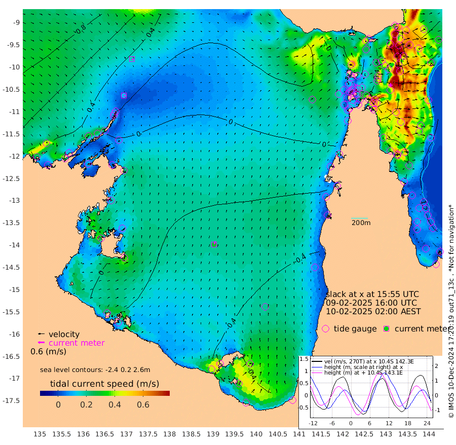 11cm/s 108T +3cm/s rms + 7cm/s -42T. ARA-GOC87 57m 29cm/s 16T +3cm/s rms + 2cm/s -2T. ARA-GOC87 60m 16cm/s 112T +2cm/s rms + 3cm/s 61T. ARA-GOC87 47m -115cm Daru -121cm Bobo Island -121cm Meer Island Barge -137cm Bramble Cay -135cm Unnamed Cay -135cm Pearce Cay -139cm Stephens Island -142cm Merrie England Shoals -123cm Mutacomal Reef -134cm Darnley Island Barge -134cm East Cay -121cm Yorke Island Barge -126cm Rennel Island -122cm Aureed Island -105cm Dungeness Reef -47cm Zagai Island -51cm Yam Island -6cm Dauan Island 0cm Saibai Island -33cm Phipi Reef -57cm Warrior Reef - West 17cm Mabuiag Island Barge -122cm Half Way Island -99cm Coconut Island -117cm Dugong Islet -74cm Poll Island -86cm Kirkcaldie Reef -50cm Suarji Island -65cm Sue Islet 8cm Hawkesbury Island -42cm Alert Patches -44cm Twin Island 16cm Badu Island -26cm St Pauls (Moa Island) -4cm Kubin (Moa Island) -20cm Ince Point -10cm Thursday Island -11cm Nardana Patches -17cm Turtle Head 5cm Round Island -4cm Goods Island 17cm Booby Island 7cm White Rocks Area 35cm Carpentaria -23cm Papou Point 18cm Bampfield Head 20cm Crab Island 11cm Red Wallis Island -15cm Packe Island -116cm Harrington Reef 0cm Herald Camp -2cm Sharp Point -11cm Red Island Point -20cm Possession Island -44cm Alpha Rock -72cm Frederick Point -103cm Wyborn Reef Light -91cm Tetley Island -102cm Triangle Reef -105cm Turtle Head Island -118cm Maclennan Cay -107cm Raine Island -126cm Mcsweeny Reef -127cm Collette Reef -114cm Shadwell Reef -142cm Hannibal Island -141cm Round Point 27cm Vrilya Point -135cm Cape Grenville -129cm Hicks Island -138cm Sir Charles Hardy Island -41cm Harvey Island -135cm Kay Reef -121cm Rocky Island -119cm Chapman Island -112cm Ham Reef -115cm Jubilee Reef -110cm Night Island -117cm Unnamed Reef No. 3 -126cm Morris Island -113cm 1st 3 Mile Opening -121cm Creech Reef -124cm Fife Island -146cm Eden Reef -131cm Stanley Island -144cm Normanby River 48cm Yabooma Island 36cm Hutchison River 46cm Elcho Island 48cm North West Crocodile Island 29cm Cape Wessel 46cm Stevens Island -9cm Guluwuru Island 35cm Hopeful Bay 36cm Auster Point 41cm Two Island Bay 24cm Cadell Strait -66cm Mallison Island 3cm Melville Bay (Gove Harbour) 8cm Truant Island 1cm Cape Arnhem 3cm Cape Grey -2cm Hawk Island 21cm Milner Bay (Groote Eylandt) 1cm Cape Beatrice 7cm West Island 8cm Centre Island -62cm Mornington Island -67cm West Wellesley Islands -74cm Bountiful Island -59cm Albert River Mouth -38cm Sweers Island -63cm Karumba -84cm Nassau River Offshore -87cm Christmas Creek -52cm Archer River -31cm Boyd Point -39cm Weipa (Humbug Point) 0cm Pennefather River 11cm Cullen Point
