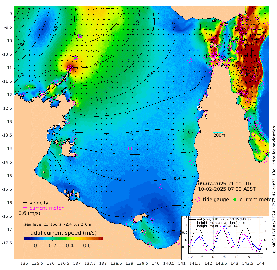 37cm/s 120T +3cm/s rms + 7cm/s -42T. ARA-GOC87 57m 20cm/s 157T +3cm/s rms + 2cm/s -2T. ARA-GOC87 60m 32cm/s 118T +2cm/s rms + 3cm/s 61T. ARA-GOC87 47m 21cm Daru 41cm Bobo Island 97cm Meer Island Barge 92cm Bramble Cay 62cm Unnamed Cay 65cm Pearce Cay 74cm Stephens Island 72cm Merrie England Shoals 31cm Mutacomal Reef 78cm Darnley Island Barge 102cm East Cay 50cm Yorke Island Barge 43cm Rennel Island 41cm Aureed Island 9cm Dungeness Reef -45cm Zagai Island -46cm Yam Island -82cm Dauan Island -73cm Saibai Island -84cm Phipi Reef -54cm Warrior Reef - West -55cm Mabuiag Island Barge 44cm Half Way Island 14cm Coconut Island 27cm Dugong Islet -16cm Poll Island -10cm Kirkcaldie Reef -55cm Suarji Island -17cm Sue Islet 36cm Hawkesbury Island -32cm Alert Patches -30cm Twin Island 7cm Badu Island -54cm St Pauls (Moa Island) 5cm Kubin (Moa Island) -30cm Ince Point -20cm Thursday Island -25cm Nardana Patches -1cm Turtle Head 5cm Round Island 38cm Goods Island 51cm Booby Island 44cm White Rocks Area 55cm Carpentaria -35cm Papou Point 56cm Bampfield Head 36cm Crab Island 43cm Red Wallis Island 21cm Packe Island 21cm Harrington Reef 22cm Herald Camp -34cm Sharp Point 2cm Red Island Point -20cm Possession Island -26cm Alpha Rock -9cm Frederick Point 26cm Wyborn Reef Light 13cm Tetley Island 75cm Triangle Reef 45cm Turtle Head Island 87cm Maclennan Cay 99cm Raine Island 60cm Mcsweeny Reef 68cm Collette Reef 85cm Shadwell Reef 81cm Hannibal Island 97cm Round Point 44cm Vrilya Point 92cm Cape Grenville 92cm Hicks Island 101cm Sir Charles Hardy Island 26cm Harvey Island 110cm Kay Reef 102cm Rocky Island 111cm Chapman Island 107cm Ham Reef 104cm Jubilee Reef 89cm Night Island 108cm Unnamed Reef No. 3 109cm Morris Island 102cm 1st 3 Mile Opening 106cm Creech Reef 101cm Fife Island 137cm Eden Reef 114cm Stanley Island 124cm Normanby River 112cm Yabooma Island 136cm Hutchison River 112cm Elcho Island 96cm North West Crocodile Island 104cm Cape Wessel 109cm Stevens Island 111cm Guluwuru Island 105cm Hopeful Bay 102cm Auster Point 104cm Two Island Bay 136cm Cadell Strait 179cm Mallison Island 88cm Melville Bay (Gove Harbour) 99cm Truant Island 56cm Cape Arnhem 13cm Cape Grey -10cm Hawk Island -60cm Milner Bay (Groote Eylandt) -67cm Cape Beatrice -116cm West Island -117cm Centre Island -124cm Mornington Island -121cm West Wellesley Islands -142cm Bountiful Island -179cm Albert River Mouth -188cm Sweers Island -179cm Karumba -78cm Nassau River Offshore -31cm Christmas Creek 21cm Archer River 31cm Boyd Point 34cm Weipa (Humbug Point) 34cm Pennefather River 34cm Cullen Point