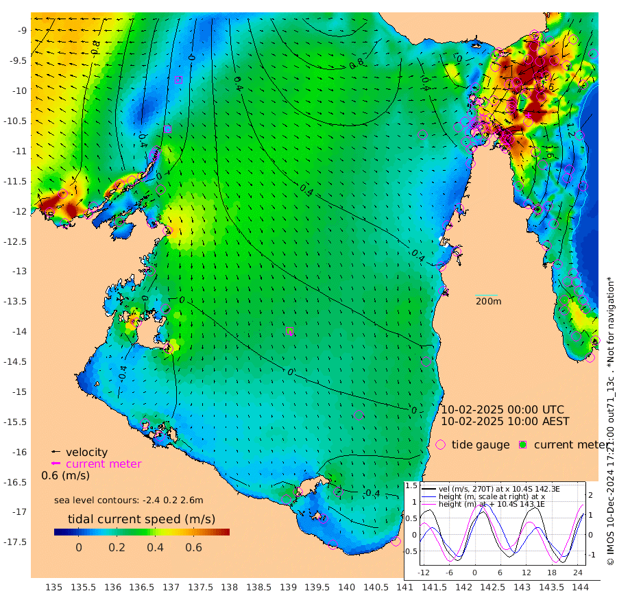 11cm/s 155T +3cm/s rms + 7cm/s -42T. ARA-GOC87 57m 37cm/s 166T +3cm/s rms + 2cm/s -2T. ARA-GOC87 60m 10cm/s -139T +2cm/s rms + 3cm/s 61T. ARA-GOC87 47m 190cm Daru 189cm Bobo Island 126cm Meer Island Barge 159cm Bramble Cay 188cm Unnamed Cay 198cm Pearce Cay 184cm Stephens Island 191cm Merrie England Shoals 198cm Mutacomal Reef 169cm Darnley Island Barge 139cm East Cay 179cm Yorke Island Barge 192cm Rennel Island 185cm Aureed Island 186cm Dungeness Reef 141cm Zagai Island 149cm Yam Island 93cm Dauan Island 83cm Saibai Island 105cm Phipi Reef 147cm Warrior Reef - West 90cm Mabuiag Island Barge 193cm Half Way Island 187cm Coconut Island 201cm Dugong Islet 175cm Poll Island 183cm Kirkcaldie Reef 161cm Suarji Island 163cm Sue Islet 108cm Hawkesbury Island 164cm Alert Patches 166cm Twin Island 94cm Badu Island 156cm St Pauls (Moa Island) 116cm Kubin (Moa Island) 139cm Ince Point 130cm Thursday Island 130cm Nardana Patches 122cm Turtle Head 95cm Round Island 103cm Goods Island 86cm Booby Island 96cm White Rocks Area 68cm Carpentaria 137cm Papou Point 92cm Bampfield Head 63cm Crab Island 92cm Red Wallis Island 117cm Packe Island 215cm Harrington Reef 91cm Herald Camp 36cm Sharp Point 105cm Red Island Point 128cm Possession Island 153cm Alpha Rock 184cm Frederick Point 195cm Wyborn Reef Light 191cm Tetley Island 122cm Triangle Reef 214cm Turtle Head Island 130cm Maclennan Cay 97cm Raine Island 180cm Mcsweeny Reef 165cm Collette Reef 122cm Shadwell Reef 178cm Hannibal Island 167cm Round Point 61cm Vrilya Point 152cm Cape Grenville 141cm Hicks Island 143cm Sir Charles Hardy Island 47cm Harvey Island 135cm Kay Reef 112cm Rocky Island 105cm Chapman Island 101cm Ham Reef 110cm Jubilee Reef 107cm Night Island 107cm Unnamed Reef No. 3 119cm Morris Island 108cm 1st 3 Mile Opening 115cm Creech Reef 119cm Fife Island 124cm Eden Reef 121cm Stanley Island 134cm Normanby River -65cm Yabooma Island -59cm Hutchison River -74cm Elcho Island -75cm North West Crocodile Island -19cm Cape Wessel -54cm Stevens Island 10cm Guluwuru Island -59cm Hopeful Bay -31cm Auster Point -35cm Two Island Bay -31cm Cadell Strait 45cm Mallison Island -4cm Melville Bay (Gove Harbour) 2cm Truant Island -1cm Cape Arnhem -17cm Cape Grey -28cm Hawk Island -65cm Milner Bay (Groote Eylandt) -53cm Cape Beatrice -65cm West Island -70cm Centre Island -58cm Mornington Island -49cm West Wellesley Islands -84cm Bountiful Island -146cm Albert River Mouth -164cm Sweers Island -132cm Karumba -11cm Nassau River Offshore 31cm Christmas Creek 44cm Archer River 57cm Boyd Point 49cm Weipa (Humbug Point) 50cm Pennefather River 51cm Cullen Point
