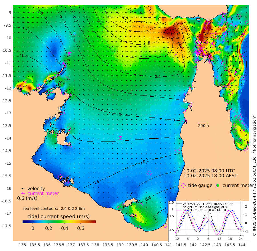 19cm/s -60T +3cm/s rms + 7cm/s -42T. ARA-GOC87 57m 18cm/s -75T +3cm/s rms + 2cm/s -2T. ARA-GOC87 60m 14cm/s -46T +2cm/s rms + 3cm/s 61T. ARA-GOC87 47m -90cm Daru -84cm Bobo Island -12cm Meer Island Barge -31cm Bramble Cay -67cm Unnamed Cay -76cm Pearce Cay -59cm Stephens Island -62cm Merrie England Shoals -90cm Mutacomal Reef -49cm Darnley Island Barge -12cm East Cay -72cm Yorke Island Barge -80cm Rennel Island -79cm Aureed Island -93cm Dungeness Reef -104cm Zagai Island -107cm Yam Island -82cm Dauan Island -81cm Saibai Island -68cm Phipi Reef -98cm Warrior Reef - West -99cm Mabuiag Island Barge -86cm Half Way Island -101cm Coconut Island -98cm Dugong Islet -111cm Poll Island -107cm Kirkcaldie Reef -120cm Suarji Island -109cm Sue Islet -89cm Hawkesbury Island -124cm Alert Patches -126cm Twin Island -84cm Badu Island -134cm St Pauls (Moa Island) -96cm Kubin (Moa Island) -115cm Ince Point -111cm Thursday Island -111cm Nardana Patches -89cm Turtle Head -83cm Round Island -72cm Goods Island -71cm Booby Island -75cm White Rocks Area -82cm Carpentaria -117cm Papou Point -85cm Bampfield Head -55cm Crab Island -73cm Red Wallis Island -82cm Packe Island -116cm Harrington Reef -68cm Herald Camp -37cm Sharp Point -78cm Red Island Point -106cm Possession Island -117cm Alpha Rock -121cm Frederick Point -107cm Wyborn Reef Light -114cm Tetley Island -26cm Triangle Reef -123cm Turtle Head Island -19cm Maclennan Cay 10cm Raine Island -67cm Mcsweeny Reef -49cm Collette Reef -14cm Shadwell Reef -49cm Hannibal Island -35cm Round Point -61cm Vrilya Point -27cm Cape Grenville -20cm Hicks Island -13cm Sir Charles Hardy Island -9cm Harvey Island -7cm Kay Reef 5cm Rocky Island 13cm Chapman Island 10cm Ham Reef 3cm Jubilee Reef -1cm Night Island 9cm Unnamed Reef No. 3 4cm Morris Island 2cm 1st 3 Mile Opening 2cm Creech Reef 0cm Fife Island 18cm Eden Reef 5cm Stanley Island 4cm Normanby River 30cm Yabooma Island 36cm Hutchison River 40cm Elcho Island 40cm North West Crocodile Island -12cm Cape Wessel 15cm Stevens Island -7cm Guluwuru Island 31cm Hopeful Bay -3cm Auster Point -5cm Two Island Bay 12cm Cadell Strait 3cm Mallison Island -3cm Melville Bay (Gove Harbour) -15cm Truant Island -6cm Cape Arnhem 7cm Cape Grey 22cm Hawk Island 33cm Milner Bay (Groote Eylandt) 43cm Cape Beatrice 45cm West Island 50cm Centre Island 112cm Mornington Island 107cm West Wellesley Islands 152cm Bountiful Island 200cm Albert River Mouth 192cm Sweers Island 191cm Karumba 98cm Nassau River Offshore 64cm Christmas Creek 26cm Archer River -9cm Boyd Point 10cm Weipa (Humbug Point) -31cm Pennefather River -39cm Cullen Point